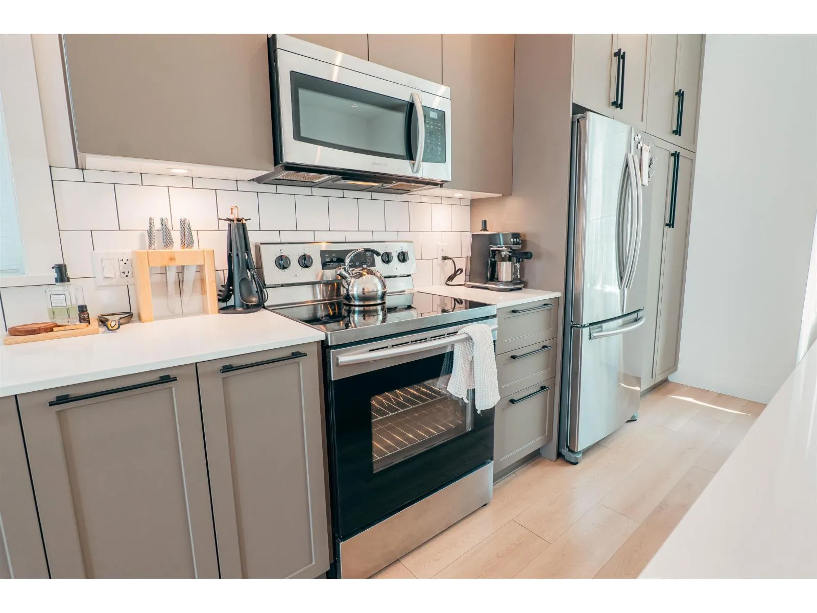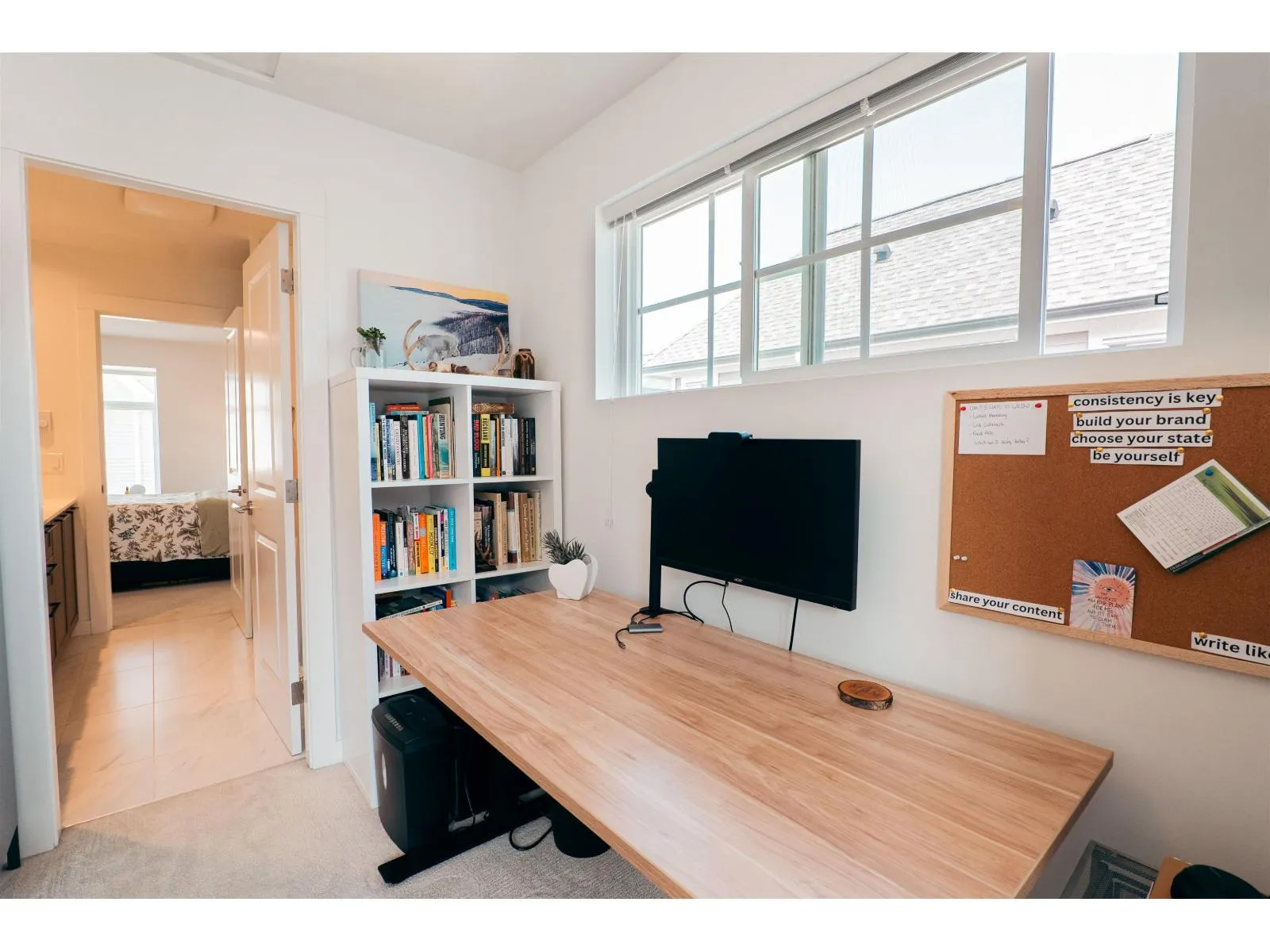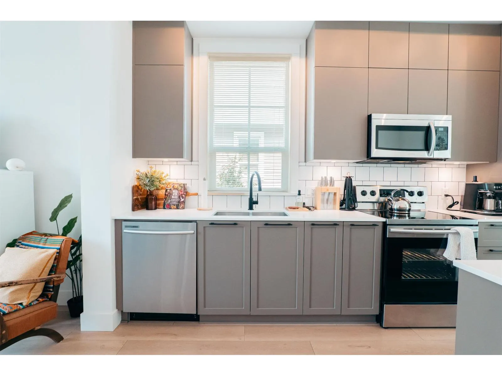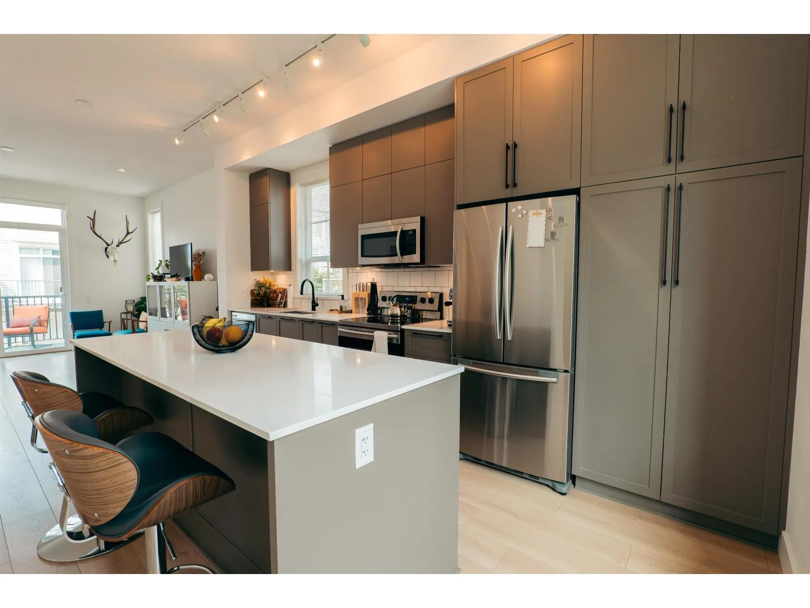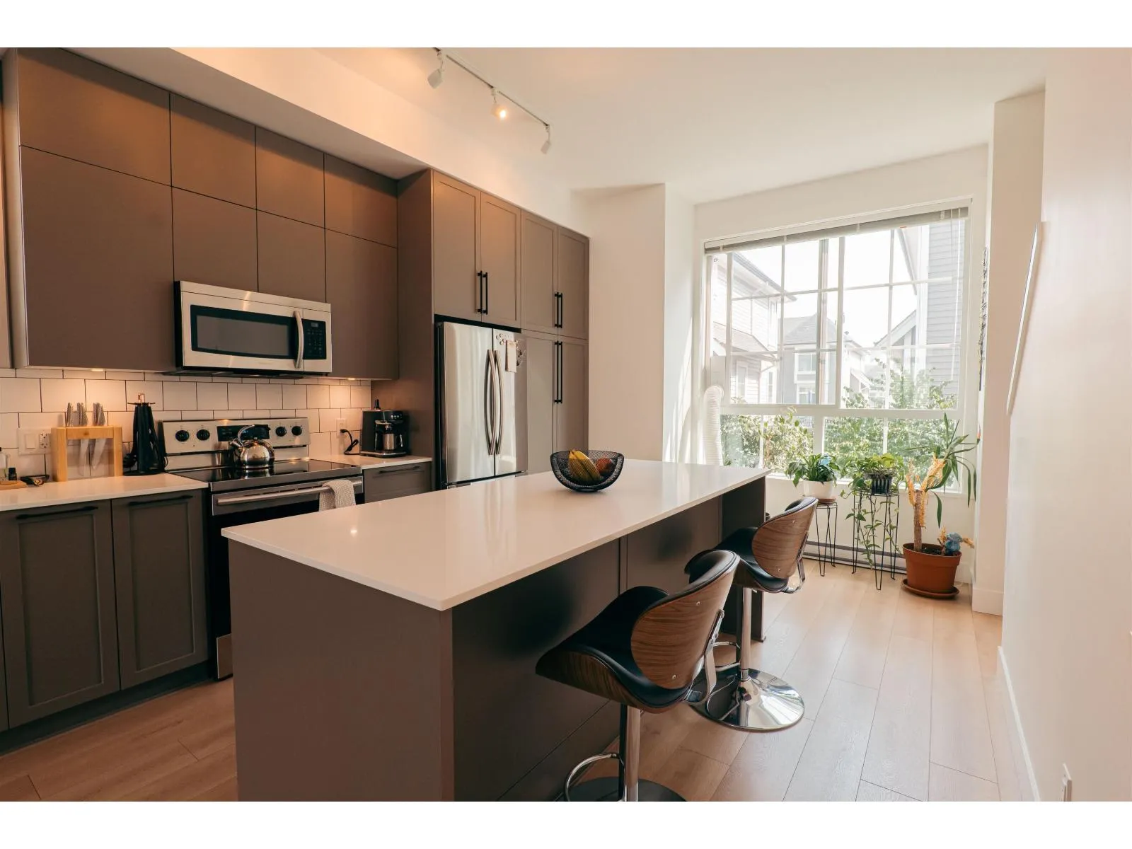 A bright 3-storey, two-bedroom, two-bath townhome designed for modern living. (1,284 sqft via Strata Plan + 414 sqft garage) Unit 13 at Gardner by Mosaic, the entry level offers a versatile den ideal for a home office. Upstairs, soaring 10-foot main-floor ceilings, oversized windows, and light finishes make theopen living space feel airy and inviting. The kitchen impresses with sleek grey cabinetry, quartz counters, stainless steel appliances, and an oversizedisland for casual meals or entertaining. Two spacious bedrooms share a stylish Jack-and-Jill bathroom. Side-by-side double garage and full-lengthdriveway - 4 PARKING SPOTS. Pet-friendly Gardner Park, with easy access to Highstreet shops and Highway 1, combines comfort, convenience, and one of the best values in the complex. (id:27476)
