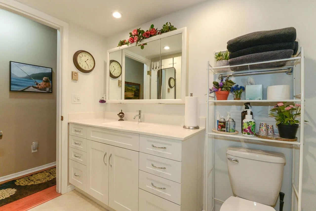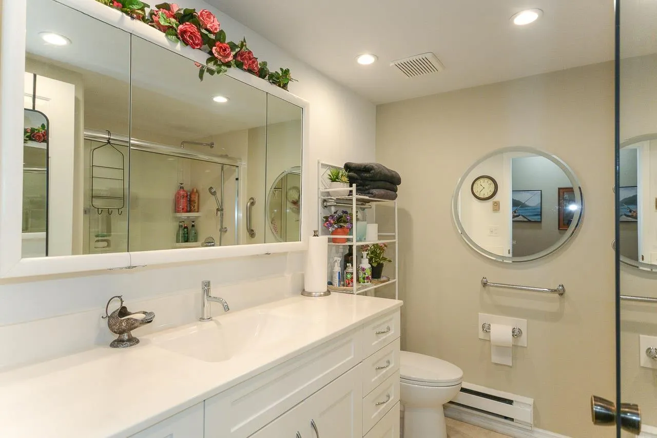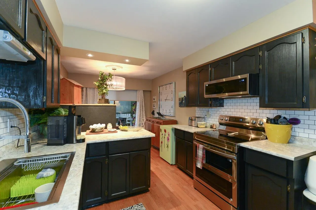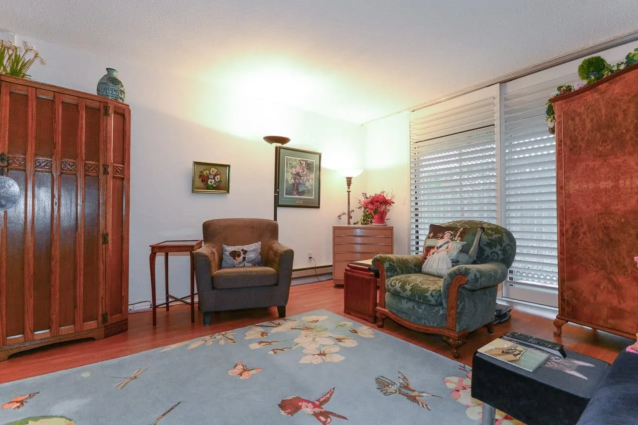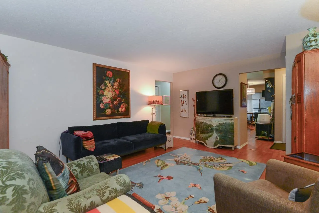 Immaculate 2-bedroom ground-floor apartment in a quiet 55+ community offering exceptional space and comfort. The home features a beautifully updated kitchen with new appliances, modern cabinetry, and a spacious, functional layout, along with in-suite washer and dryer. The cozy yet generous living room easily accommodates larger furniture. Two well-sized bedrooms and a large bathroom with a walk-in shower. Enjoy two private balconies (north and south facing) and access to a rear green space. Amenities include a community garden, pool table room, meeting/party room, and workshop. Centrally located in Abbotsford close to shopping, parks, transit, and daily essentials. Strata fee includes heat and hydro. (id:27476)