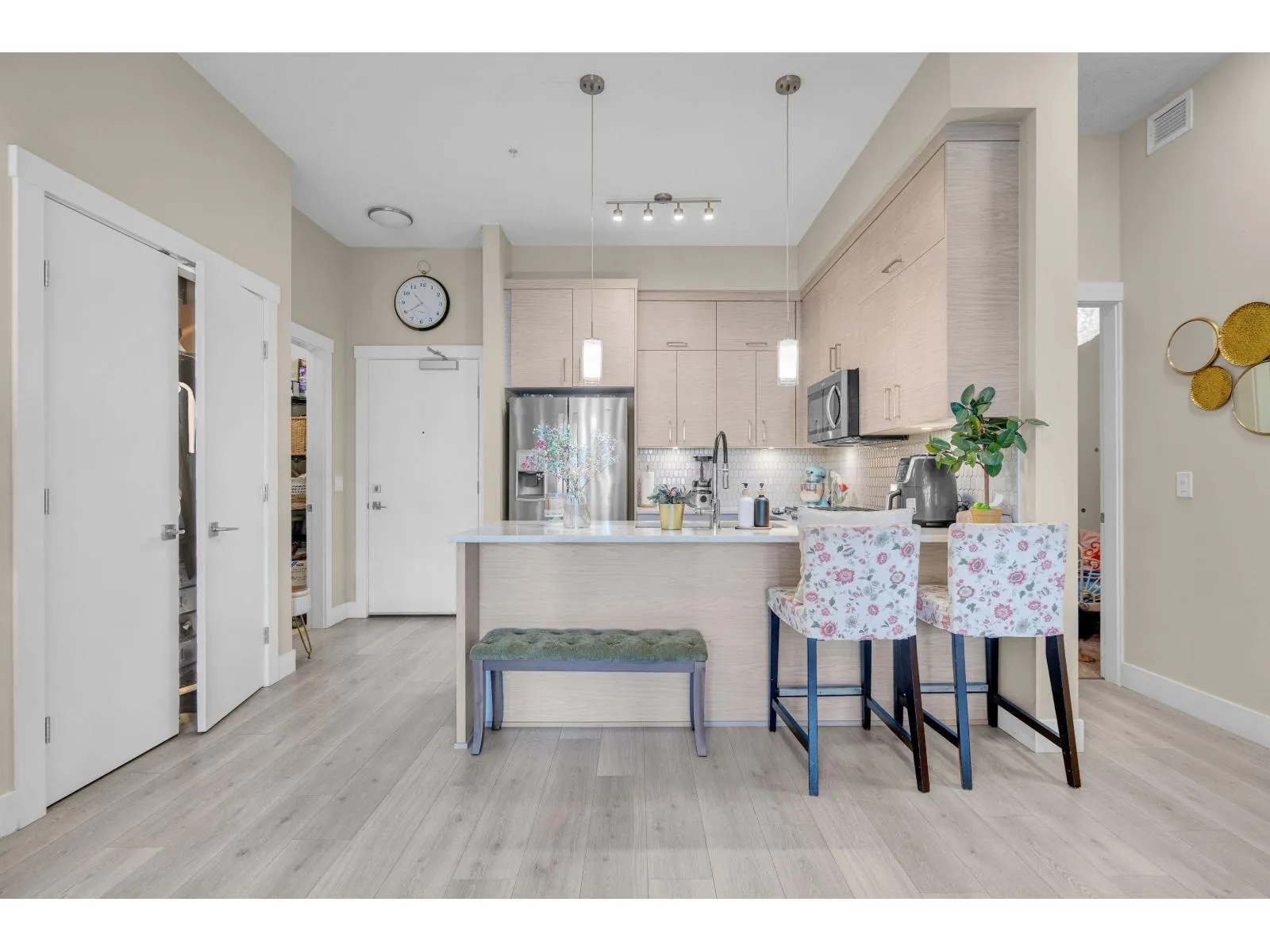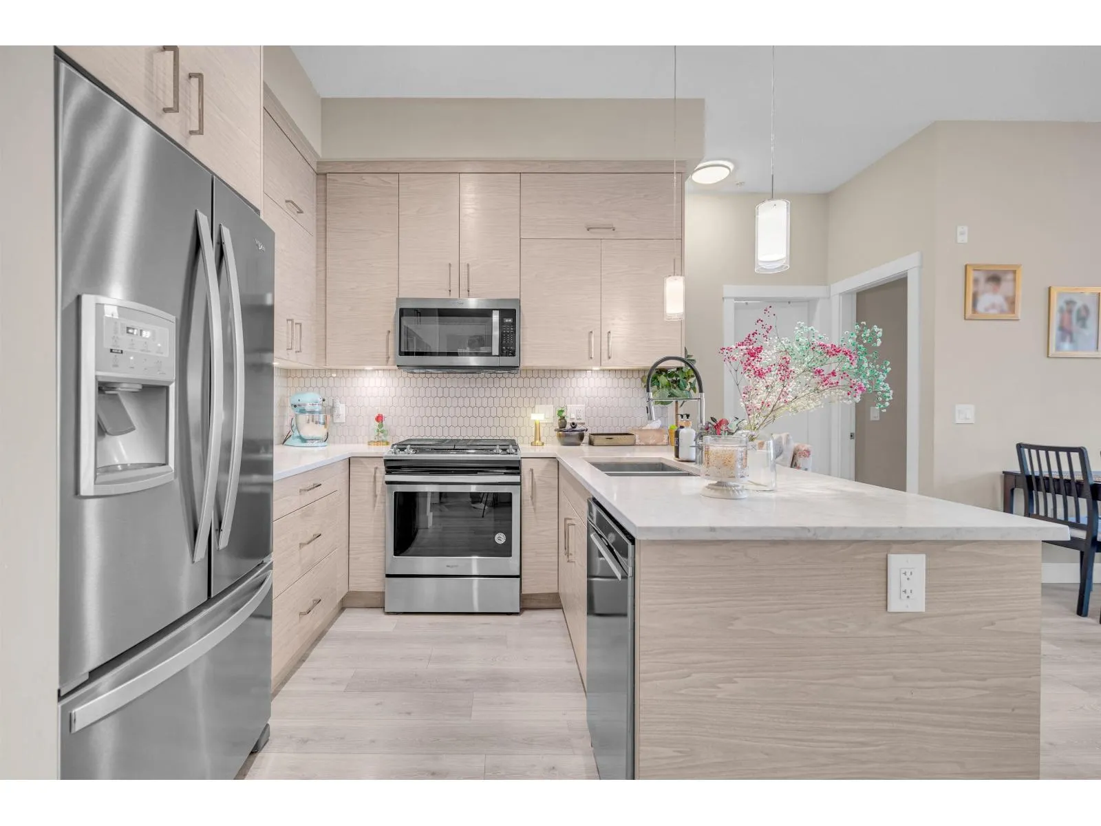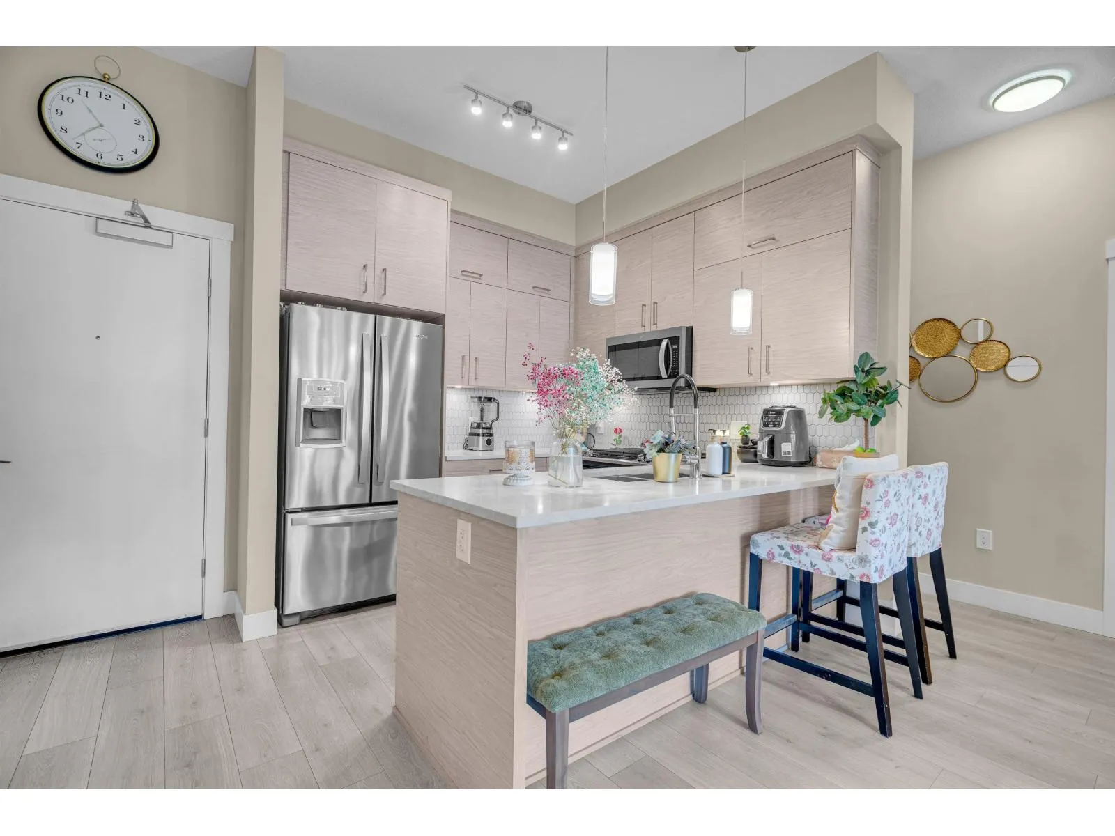 Welcome to the Onyx at Mahogany, an elegant new development built steps away from Mill Lake in Abbotsford. Built by Quantum Properties the Onyx features an amazing living experience. Feel right at home from the moment you walk into this modern building featuring a private gym, a beautiful sitting garden and more. The 2 bedroom + DEN inside unit features 10 ft ceilings, Stone countertops in the Kitchen and Bathrooms, stainless steel appliances, beautiful cabinetry and TONS OF STORAGE. You will love the bonus den which can be used to suit your needs or Room. Enjoy outdoor entertaining on your 91 s.q ft balcony. This unit includes AIR CONDITIONING, 2 PARKING STALLS, IN-SUITE LAUNDRY AND MORE! Walking distance to Mill Lake, easy access to all schools, amenities, hwy #1 and commercial centres. (id:27476)