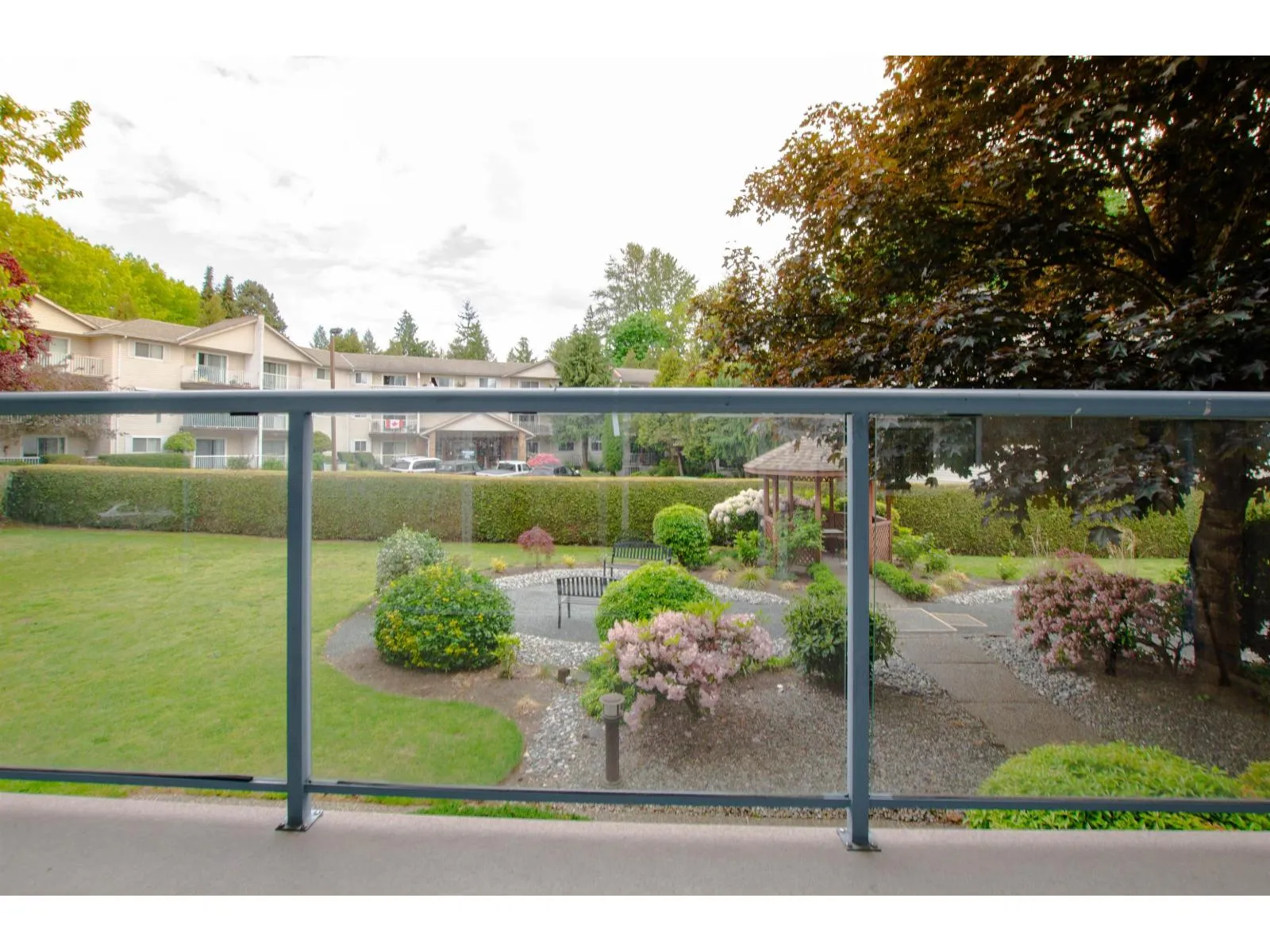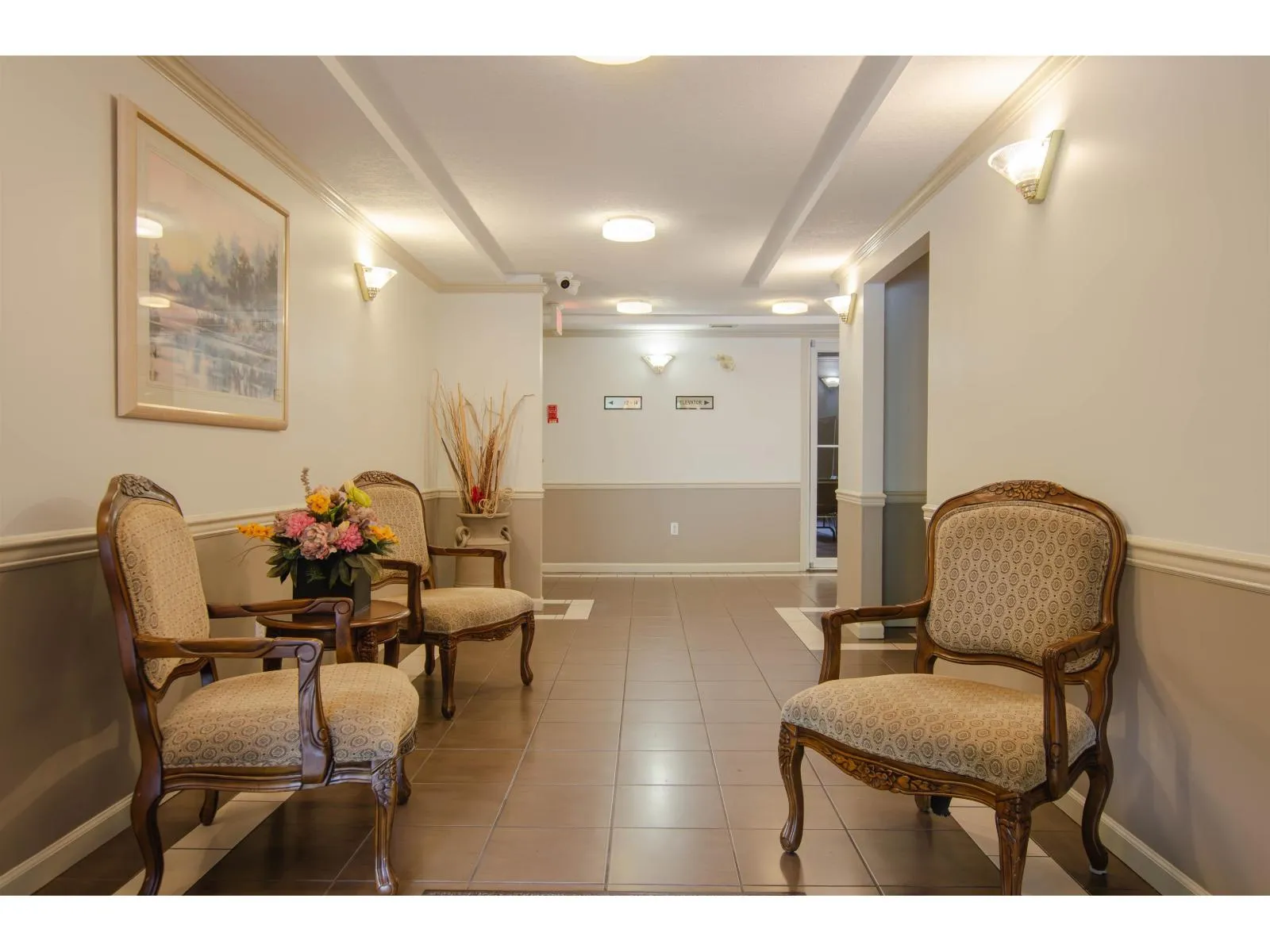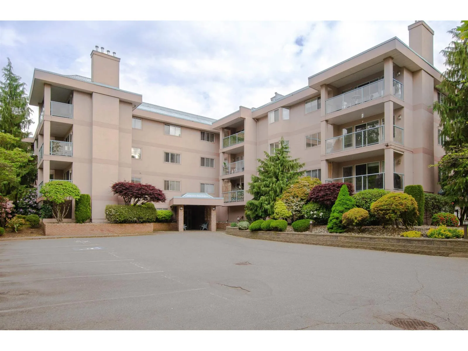 Welcome to Tiffany Park, a well-managed 55+ community offering comfort, peace, and convenience. This bright corner unit, located on the quiet side of the building, provides a serene living experience. Situated on the first floor, the open-concept layout is filled with natural light from large windows. Enjoy cozy evenings by the gas fireplace and appreciate the recent updates, including new flooring, fresh paint, updated bathroom cabinets, and granite kitchen countertops. Centrally located close to shopping, amenities, and easy transit access. Strata fees include gas, electricity, heat, and hot water, making this an exceptional value. Easy to show--an inviting home that truly feels right from the moment you enter. (id:27476)