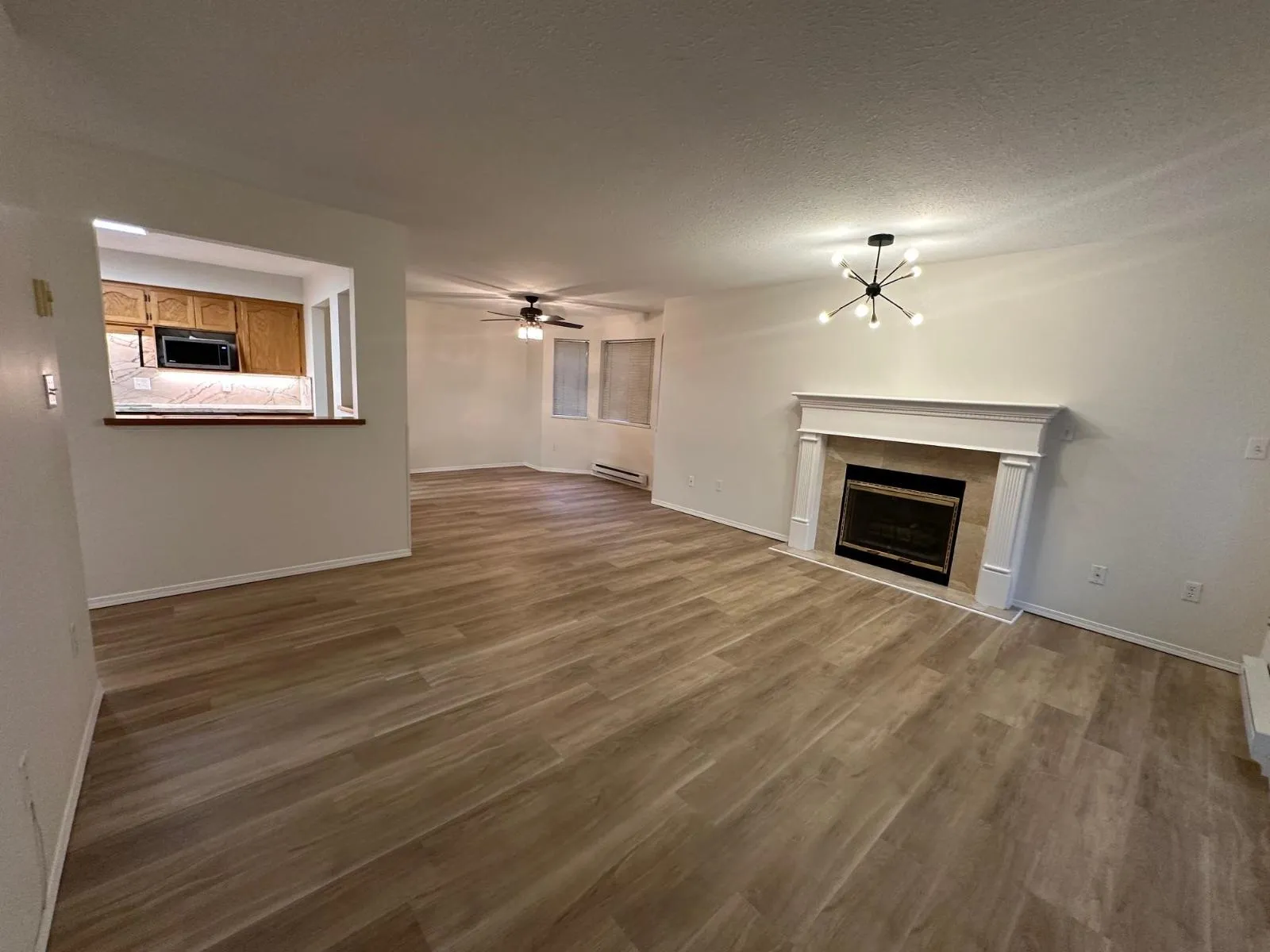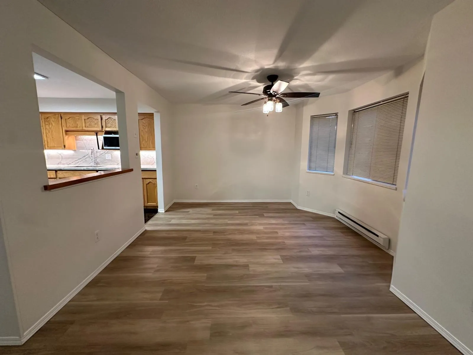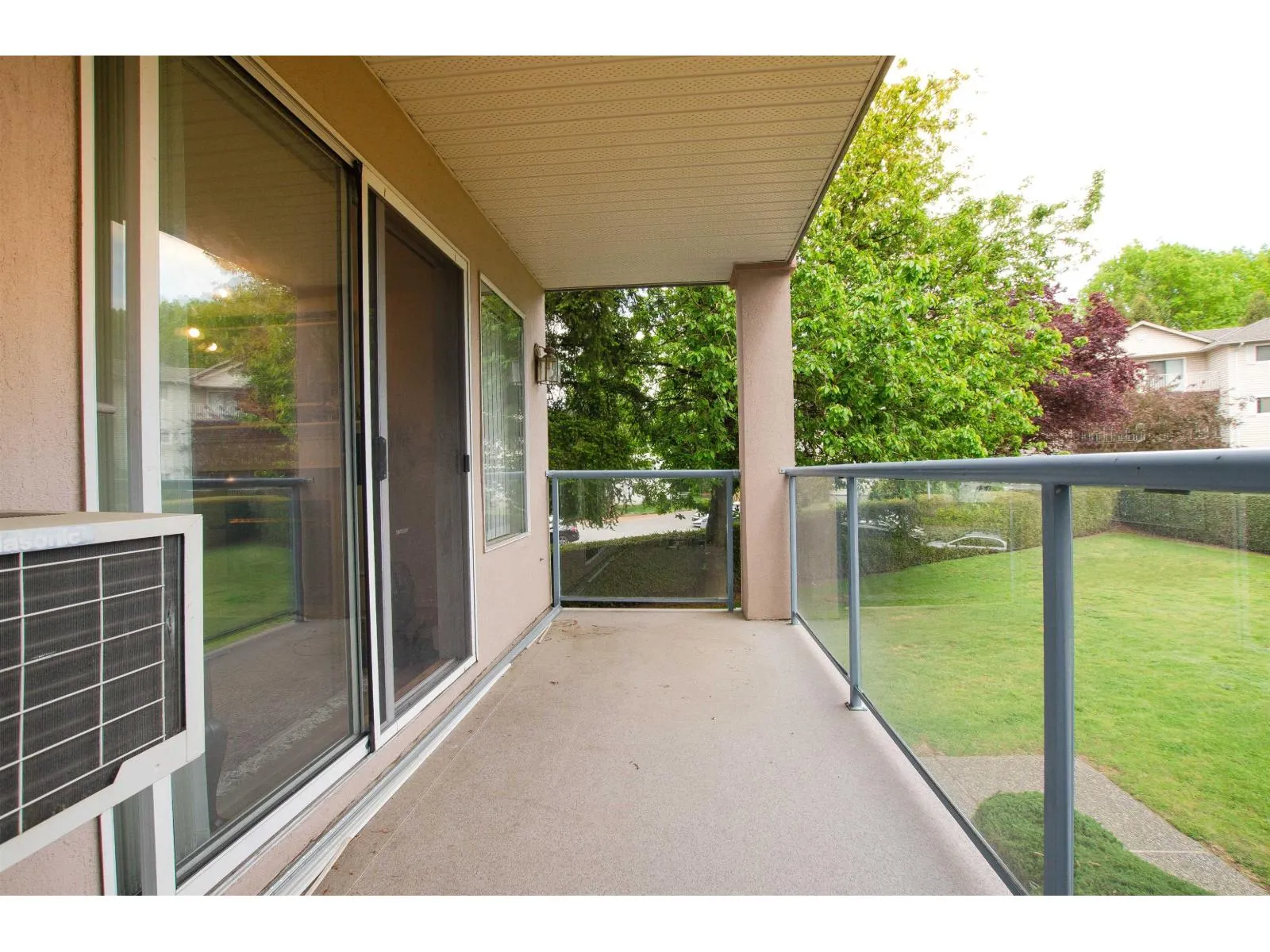 Welcome to Tiffany Park, a well-managed 55+ community offering comfort, peace, and convenience. This bright corner unit, located on the quiet side of the building, provides a serene living experience. Situated on the first floor, the open-concept layout is filled with natural light from large windows. Enjoy cozy evenings by the gas fireplace and appreciate the recent updates, including new flooring, fresh paint, updated bathroom cabinets, and granite kitchen countertops. Centrally located close to shopping, amenities, and easy transit access. Strata fees include gas, electricity, heat, and hot water, making this an exceptional value. Easy to show--an inviting home that truly feels right from the moment you enter. (id:27476)
