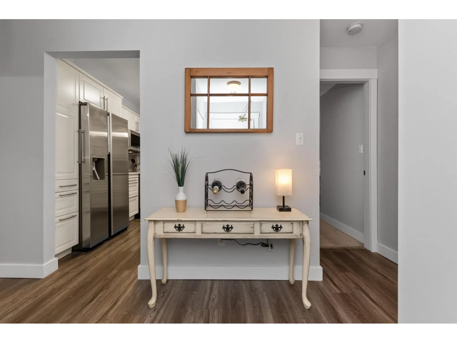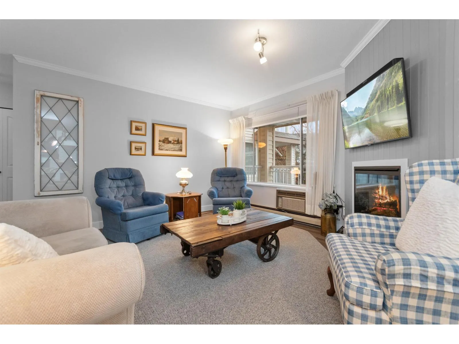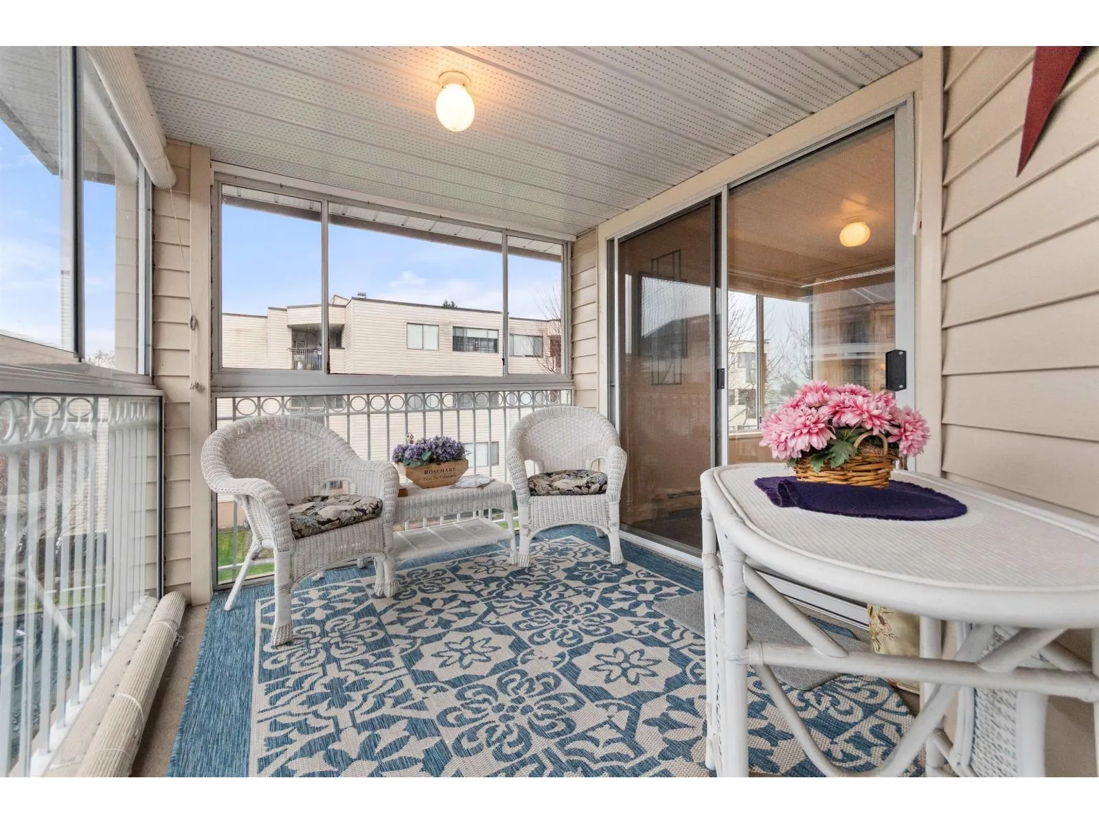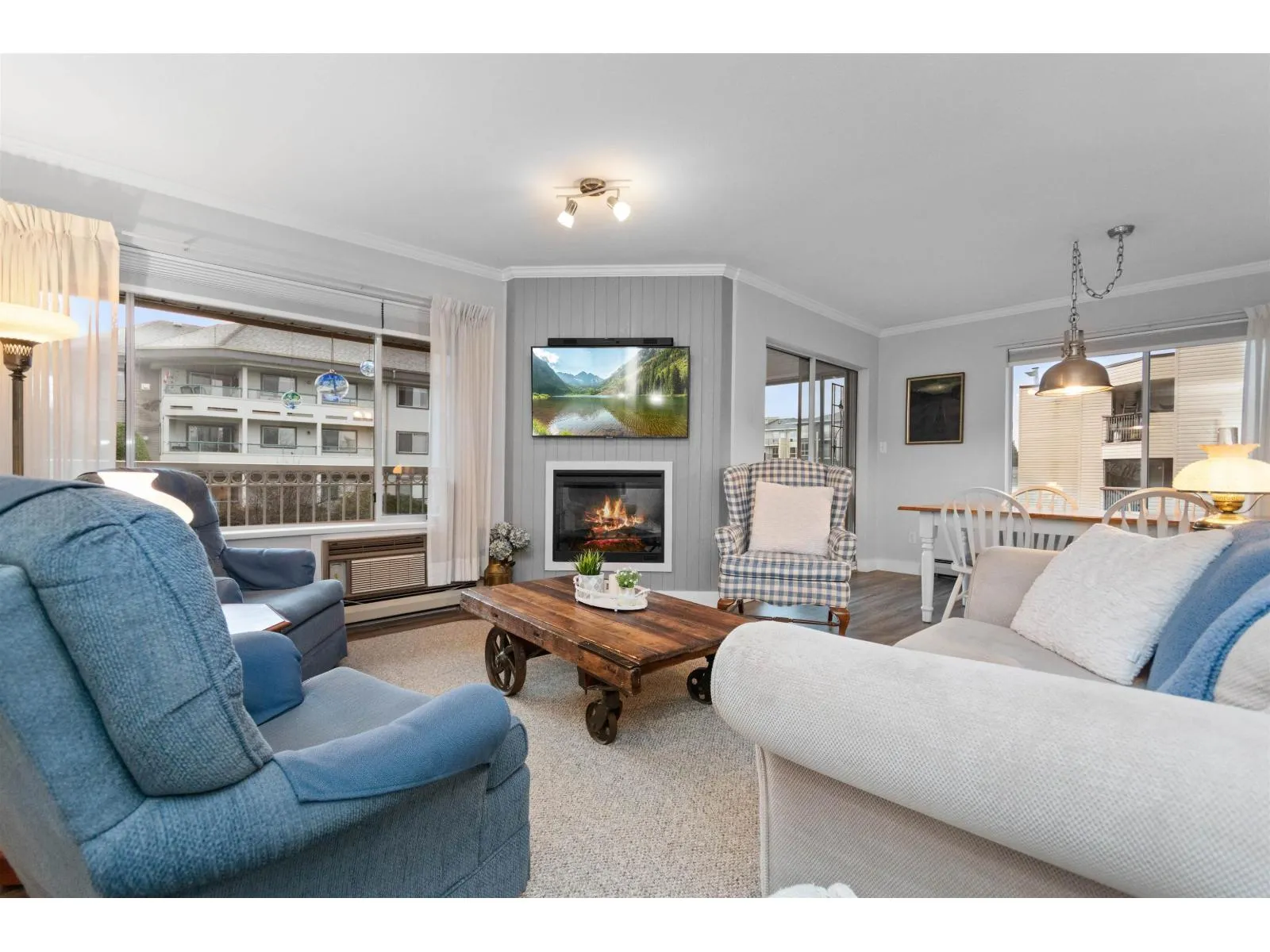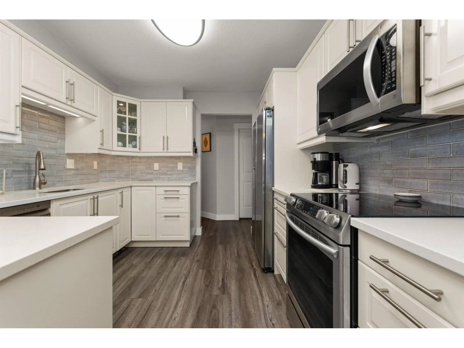 Rarely available home in the 55+ community of Lakewood Gardens. Fantastic central location just steps away from shopping and Mill LakePark. You'll love this UPDATED spacious 1283sf, 2 bed / 2 bath CORNER UNIT. This home boasts amazing kitchen & bathroom renos. The kitchen has ample cabinetry, generous counter space & newer appliances. Open-concept living & dining area w/ cozy fireplace. Large windows fill the space with natural light. Enjoy the added benefit of a partially enclosed covered balcony. Included storage unit located next to the suite for ease of use. In-suite laundry & large space for pantry. Well managed building with secured entry & elevator access. Amenities include a guest suite, gym & a community lounge. 1 underground parking spot. Hot water heat & gas incl in strata fee. (id:27476)