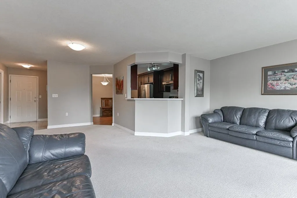 Welcome to Horizon Place. This 55+ community is centrally located just minutes to Mill Lake and Seven Oaks Shopping. This complex offers secure parking, common library, a guest suite, woodworking workshop, and a large amenities room equipped with plenty of tables, seating and a kitchenette! Unit features a oversized balcony and spacious layout with functional kitchen with passthrough into the large livingroom, 2 good sized bedrooms, and an additional storage area. Lots of natural light. Many updates over the years including kitchen counters, cabinets with built in desk, updated bathrooms and flooring. Great location, well run self managed strata that recently did exterior and interior painting, and roof work. (id:27476)