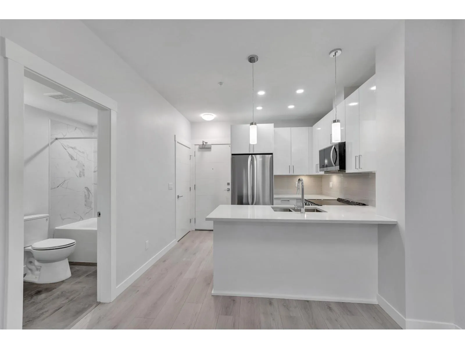 Move in Ready! Introducing Jacob. This stunning new development is only a short drive from historic downtown Abbotsford, schools, parks and trendy local businesses. The high-quality finishes and modern design contain sleek cabinets, stainless steel appliances, and laminate flooring. The building features an expansive courtyard called the Gathering Place. Nestled in a suburban neighbourhood, Jacob caters to young families as well as first-time home buyers, as this up-and-coming area develops and grows. Includes 1 parking, 1 storage and upgraded laminate in bedroom. Please reach out to our sales team for more information and appointment availability. (id:27476)