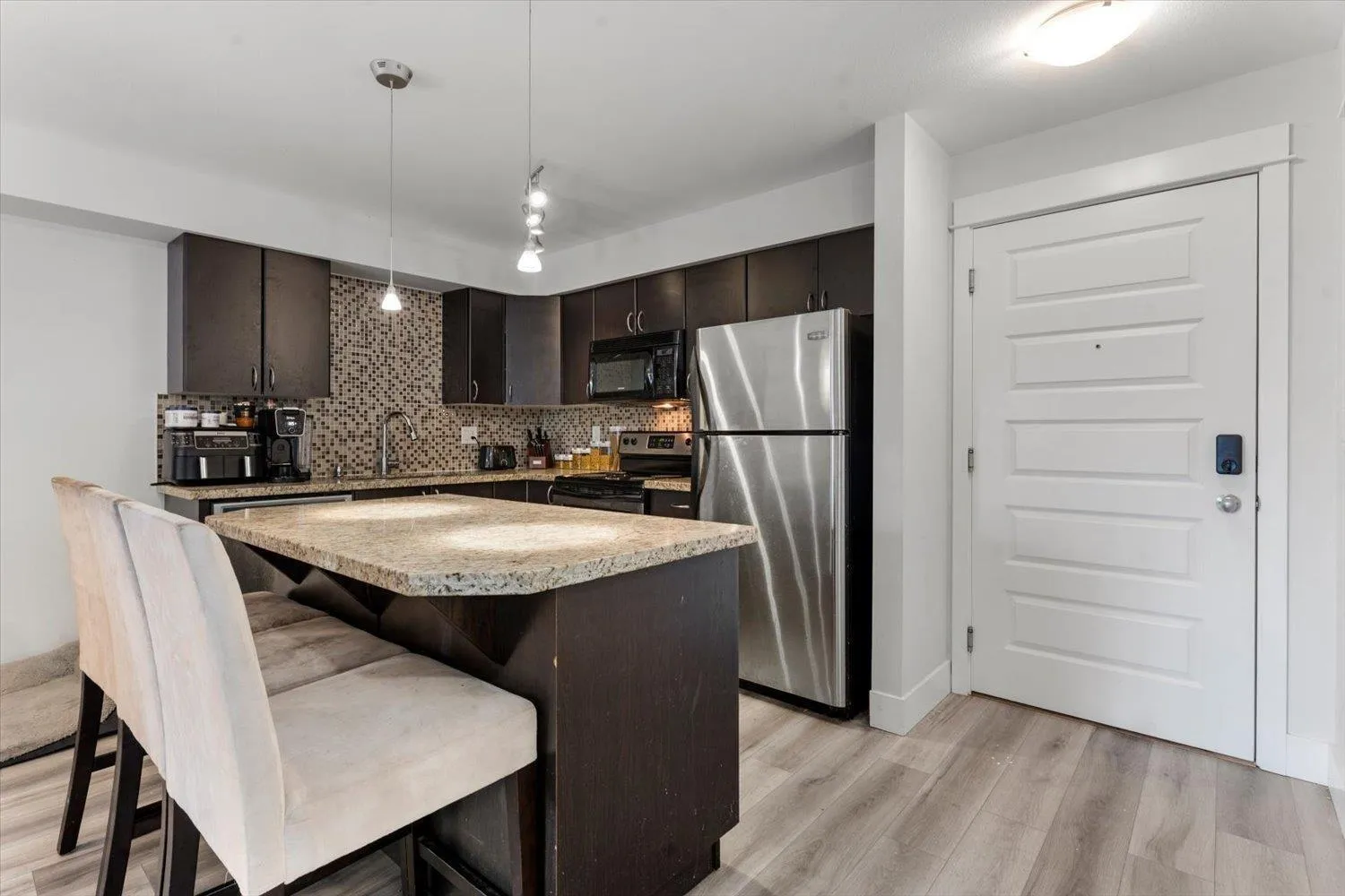2-bedroom, 2-bathroom open-concept corner unit with fireplace, granite countertops, s/s appliances, and an island in the kitchen. Both bedrooms are spacious and have south-facing windows. Private covered deck to enjoy BBQ's. 2 underground parking spaces. Pets considered upon rental owner approval. Utilities not included. Great central location. Offered by Pathway Executives Realty Inc. Property Management. Serena Laye Personal Real Estate Corporation. (id:27476)