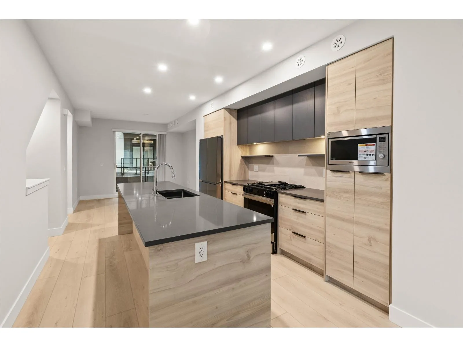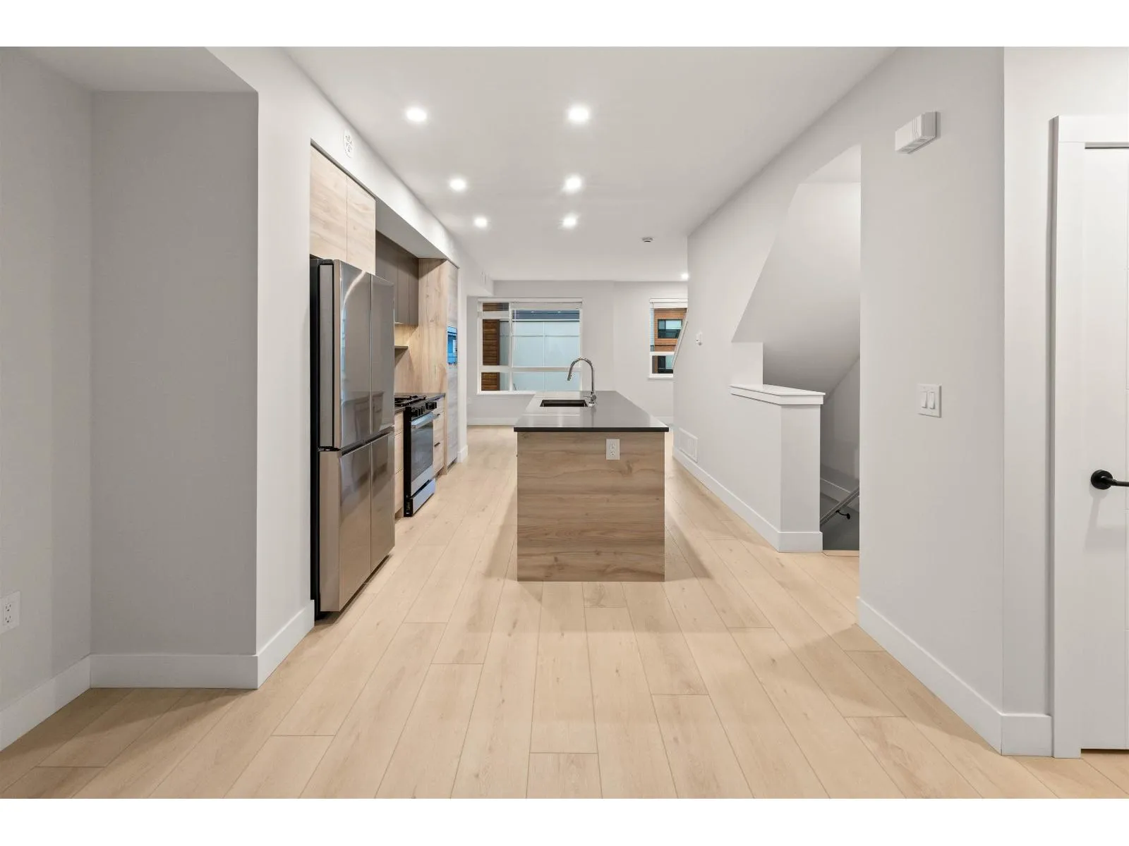 Welcome to Highstreet Village 2! This modern 3 storey townhome offers 3 bedrooms and 3 bathrooms while being designed for comfort and functionality. The open-concept main floor features a powder room and access to a balcony, perfect for everyday living and entertaining. Additional features include a tandem garage, forced-air heating, central A/C, and gas hookup. Interior highlights include 9' ceilings, vinyl plank flooring, and a well-appointed kitchen with quartz countertops, wood grain cabinetry, and stainless steel appliances. The primary bedroom features a walk-in closet and spa-inspired ensuite. 2 other spacious bedrooms . Residents enjoy access to a shared lounge and meeting spaces. Located in West Abbotsford this home is part of a vibrant 12-acre master-planned community. (id:27476)