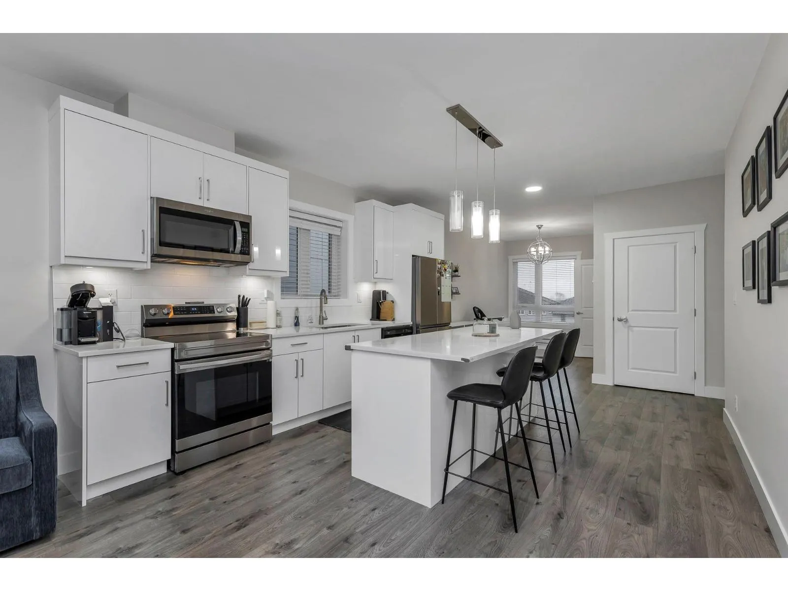 TOWNHOUSES IN MOST DESIRED NEIGHBOURHOOD Welcome to Rockhill Properties! This executive 3 bed, 3 bath townhouse offers over 1,600 sq ft of open-concept living with stunning mountain or city views. Main floor features chef's kitchen with large island, quartz counters, S/S appliances and patio access with 2 piece bathroom. Upper level includes 3 spacious bedrooms, primary with ensuite & walk-in closet, plus front-load laundry. Double car garage, security rough-in. Walking distance to all to: Harry Sayers Elementary, Reimer Middle School, Rick Hansen Secondary, Summit Ice and fitness center, Gurdwara, and parks. (id:27476)
