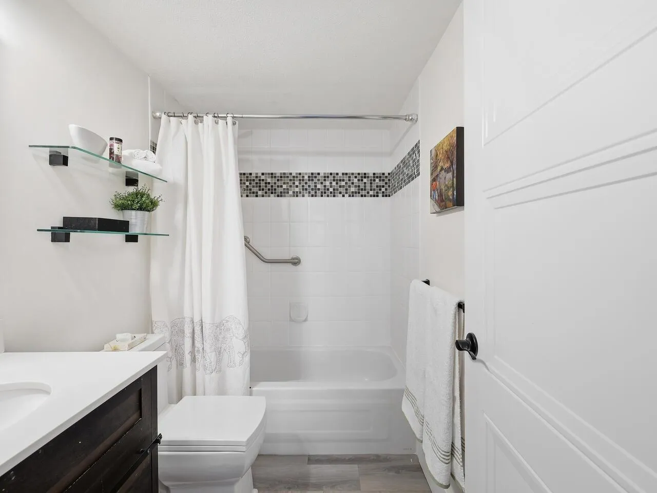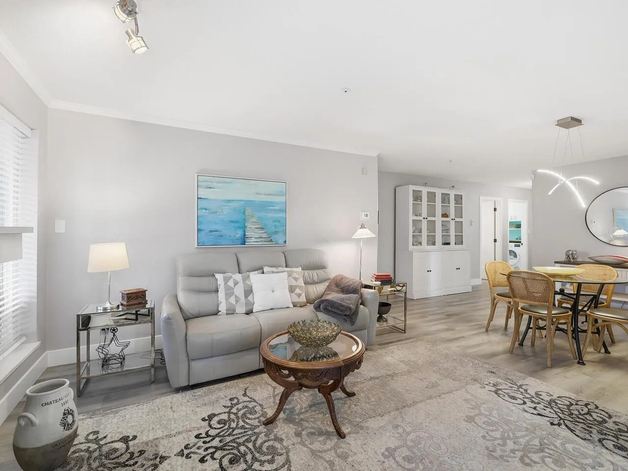 Absolutely gorgeous ground level corner unit has been extensively renovated including floors, kitchen, light fixtures, paint and decor, blinds, bathrooms and so much more. Entertaining is easy with the spacious living rm w/cozy gas fireplace & door to patio & spacious dining room. Gorgeous updated kitchen with white shaker style cabinets, stainless steel appliances & quartz counters with undermount sink. 2 updated bathrooms & 2 spacious bedrooms (separated by the living area) including primary bdrm w/updated 3 pce ensuite. Actual laundry room with space for a freezer is an added bonus. Parking stall & locker. A gorgeous ground level,corner unit in a pet friendly building absolutely must be seen to appreciate. 2 pets allowed - dogs must be a breed that doesn't exceed 30 lbs. (id:27476)