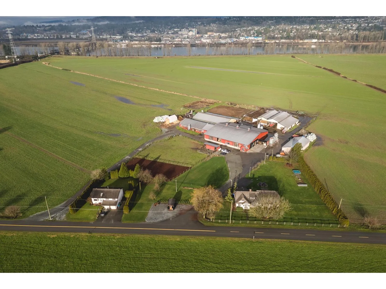 Stunning 60-acre dairy farm located in the sought-after Matsqui area, offering breathtaking views of the surrounding mountains and the Fraser River. The property features two detached homes, with the second residence currently generating rental income. Farm infrastructure includes a newly installed double 10 parallel with 150 stalls for room to support young stock, over 40,000sqft of covered barn space, two 30' x 80' bunkers with concrete panels, one 50' x 150' open bunker, and a 60' x 80' asphalt pad for extra feed storage. A 30' x 80' triple bay shop with 400-amp service adds excellent utility. This land is very fertile, well-drained soil makes this property ideal for all crop production. Along with water rights to the Fraser River distributing to multipal hydrents in the field. (id:27476)