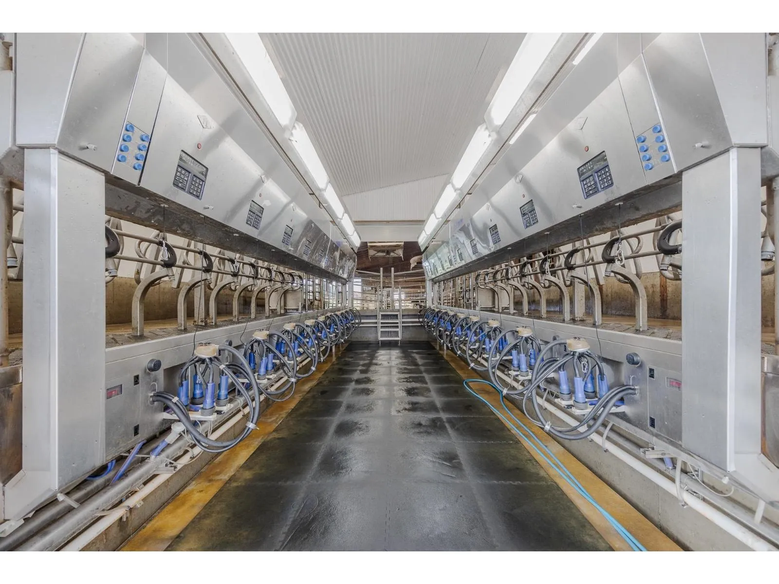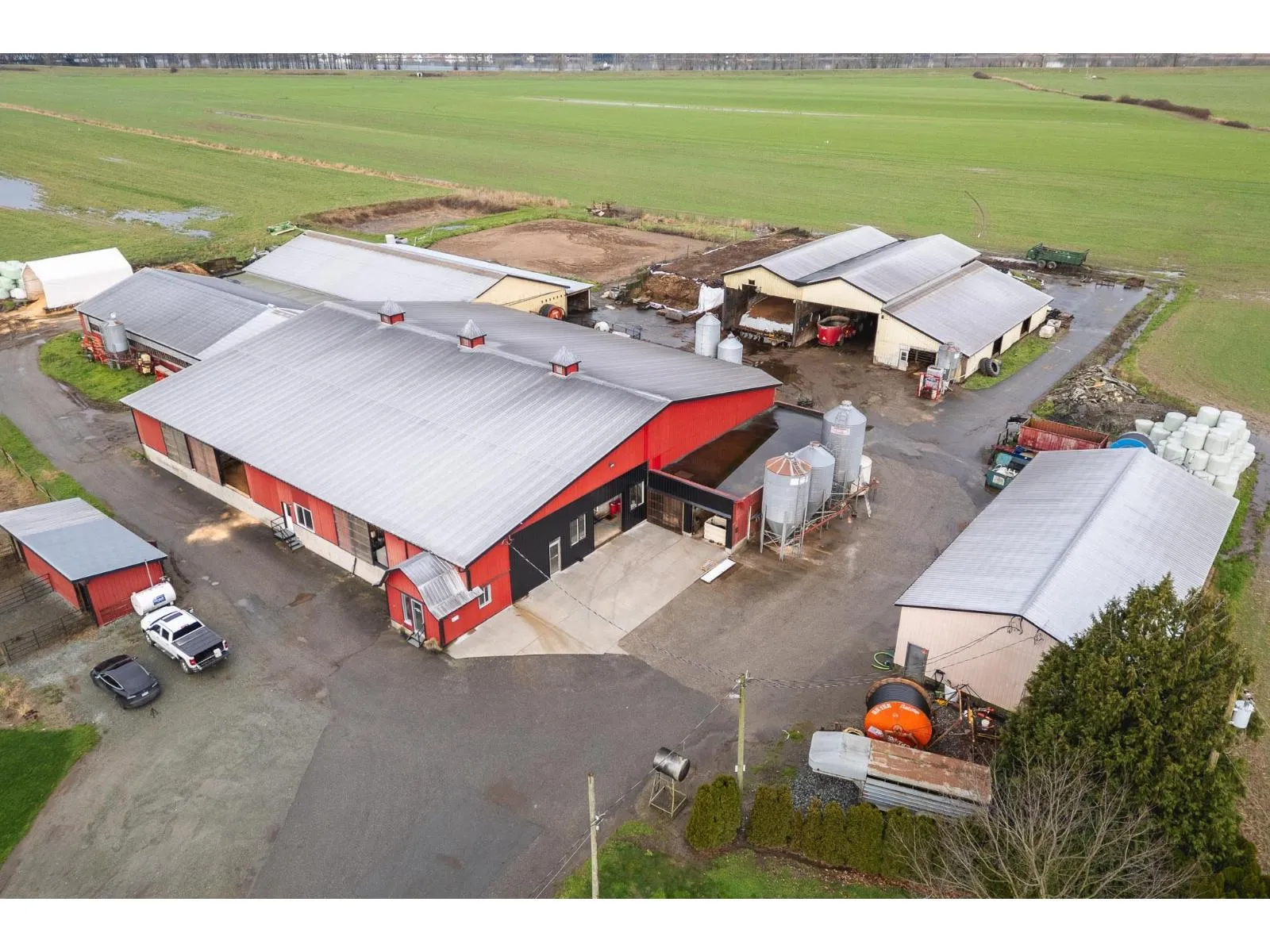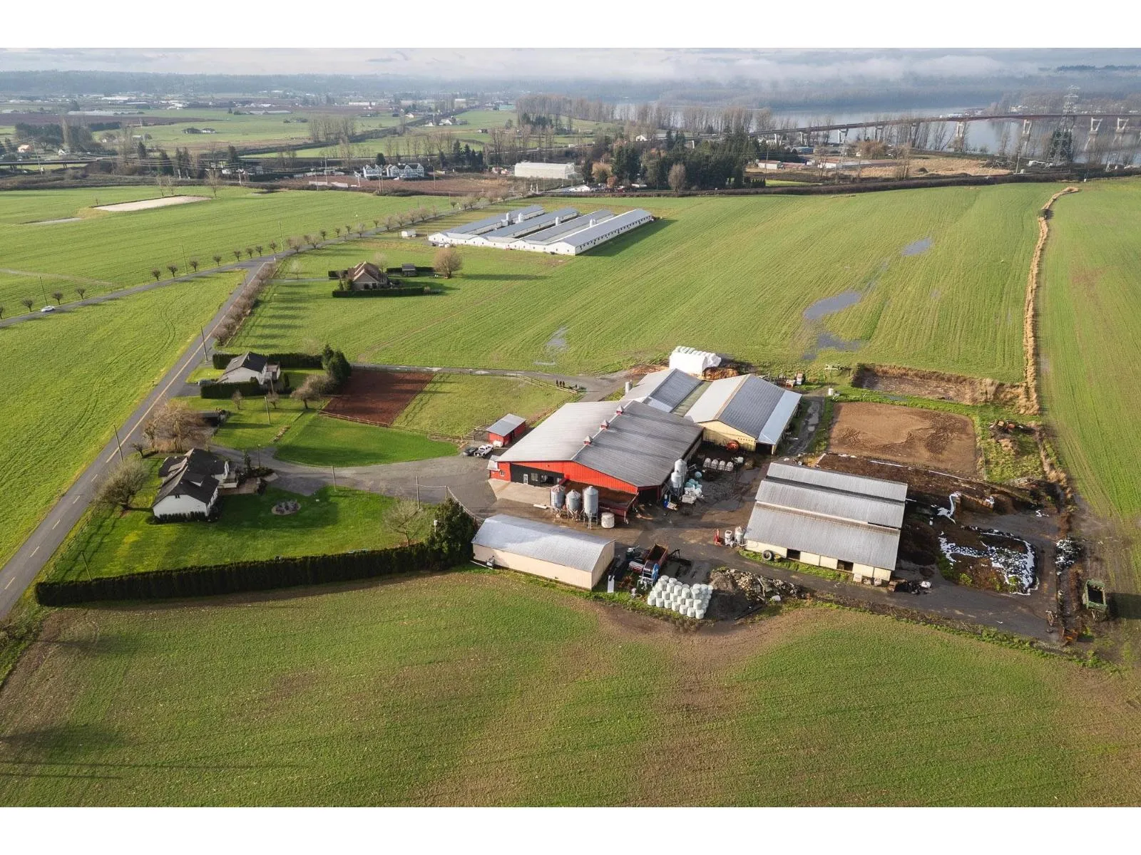 Stunning 60-acre dairy farm located in the sought-after Matsqui area, offering breathtaking views of the surrounding mountains and the Fraser River. The property features two detached homes, with the second residence currently generating rental income. Farm infrastructure includes a newly installed double 10 parallel with 150 stalls for room to support young stock, over 40,000sqft of covered barn space, two 30' x 80' bunkers with concrete panels, one 50' x 150' open bunker, and a 60' x 80' asphalt pad for extra feed storage. A 30' x 80' triple bay shop with 400-amp service adds excellent utility. This land is very fertile, well-drained soil makes this property ideal for all crop production. (id:27476)