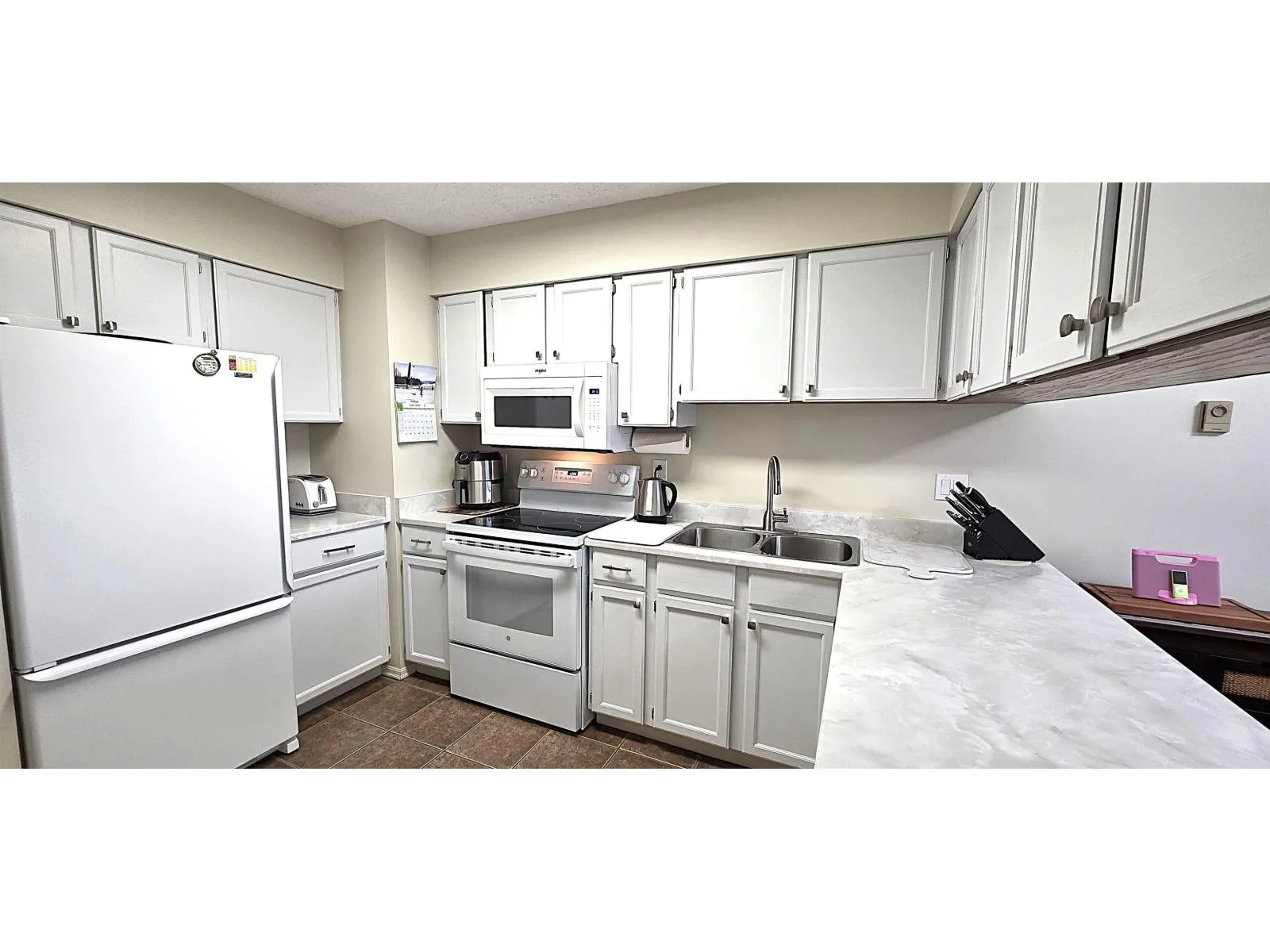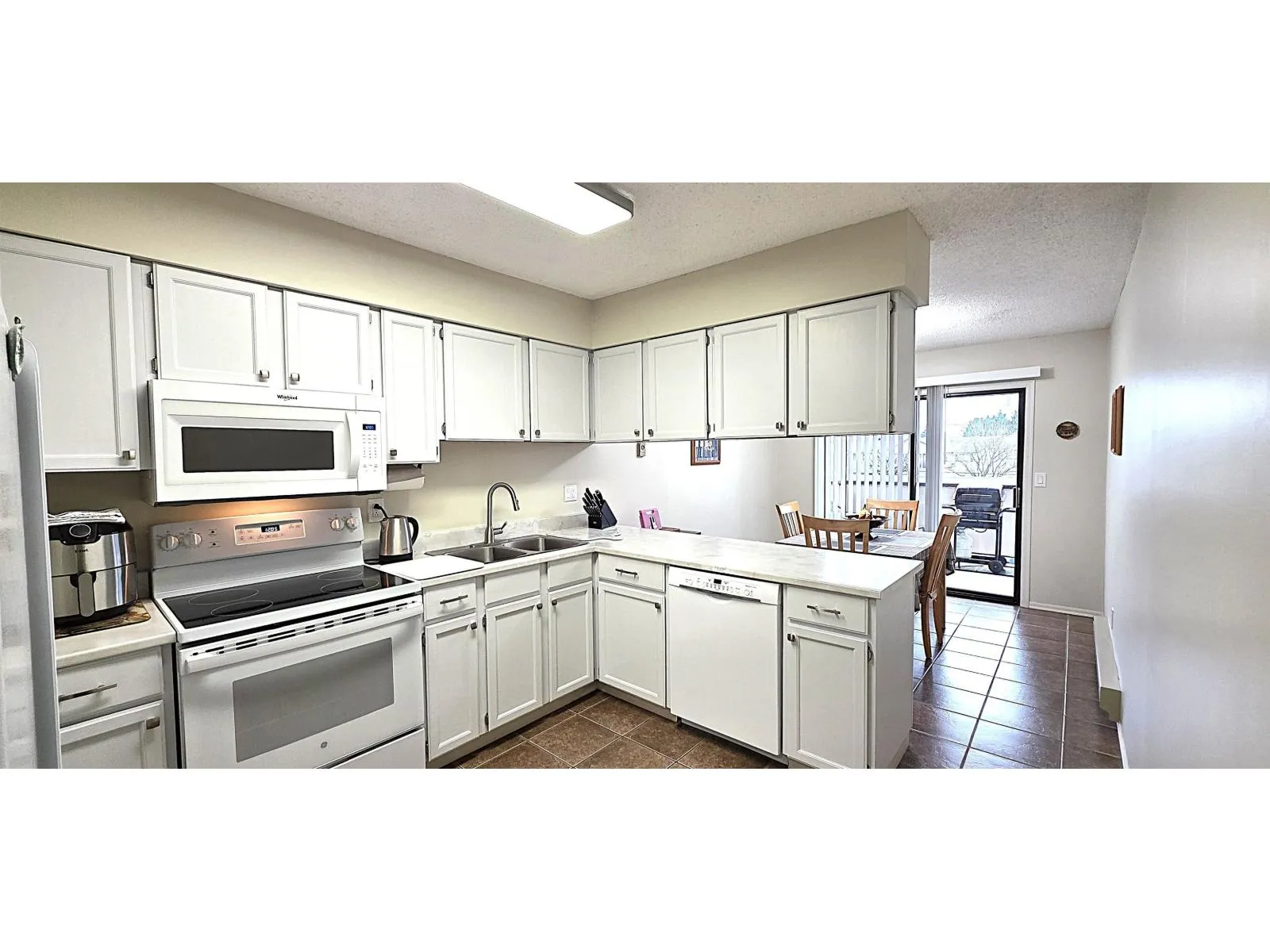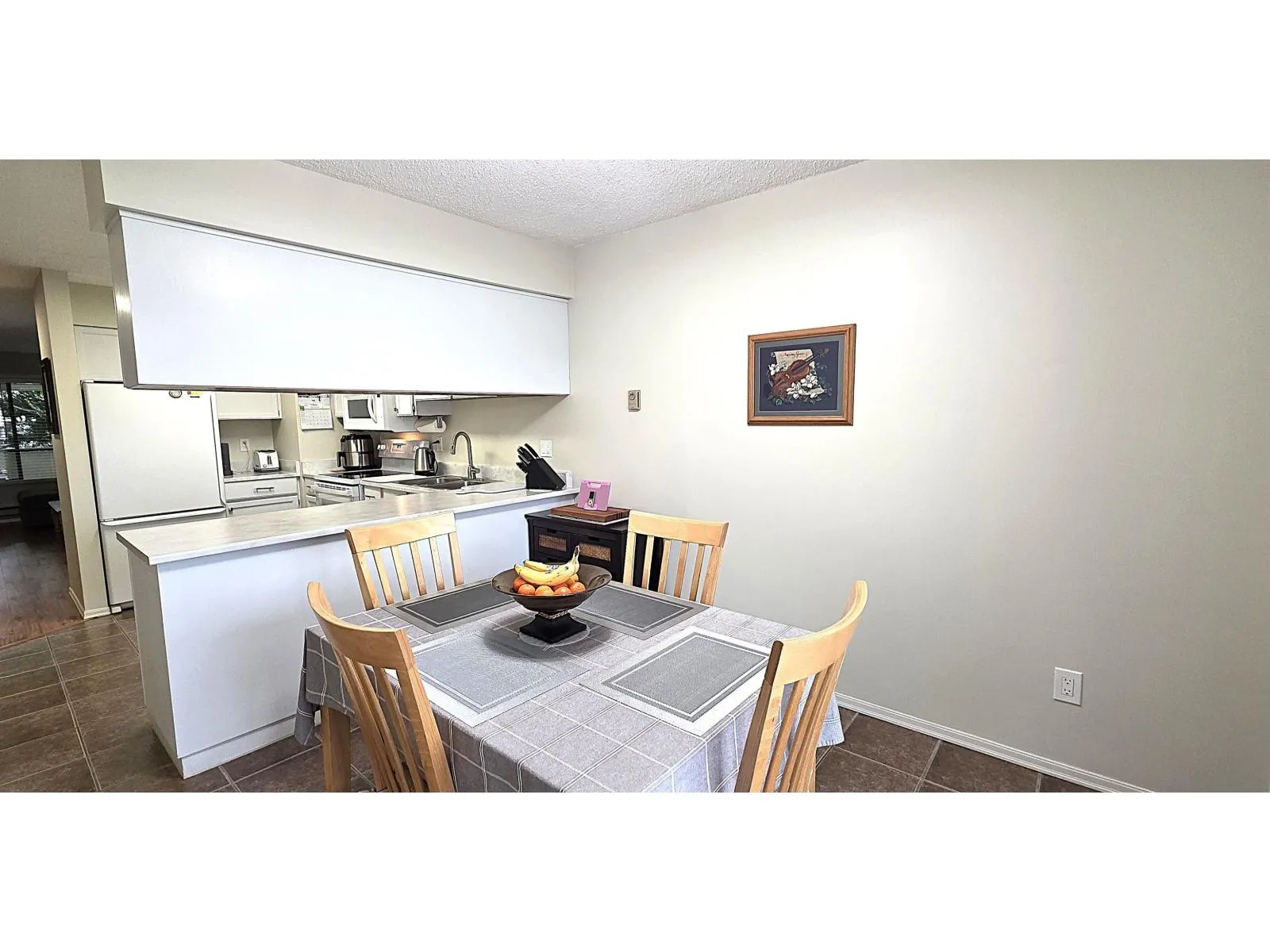"OAKHURST PARK" "Best" location in the complex, with 2 covered decks, front deck has a view to the mountains and great sunrises, back deck has treed privacy. "Best" price by far at $309,900 (Tax value $358,500). Immaculate top floor (auto stair chair if needed) end unit with 2 good size bedrooms. Recent updates, laminate and ceramic flooring, bathroom with walk in shower, appliances, kitchen countertops and painted kitchen cabinets, paint. Complex has a bike room, rec center, workshop detached, visitor parking. Awesome location, walk to Seven Oaks Mall, Famous Mill Lake, shopping, restaurants, bus route up front. No Poly B. Sorry no pets. 55+ in this very quiet, well run complex. (id:27476)