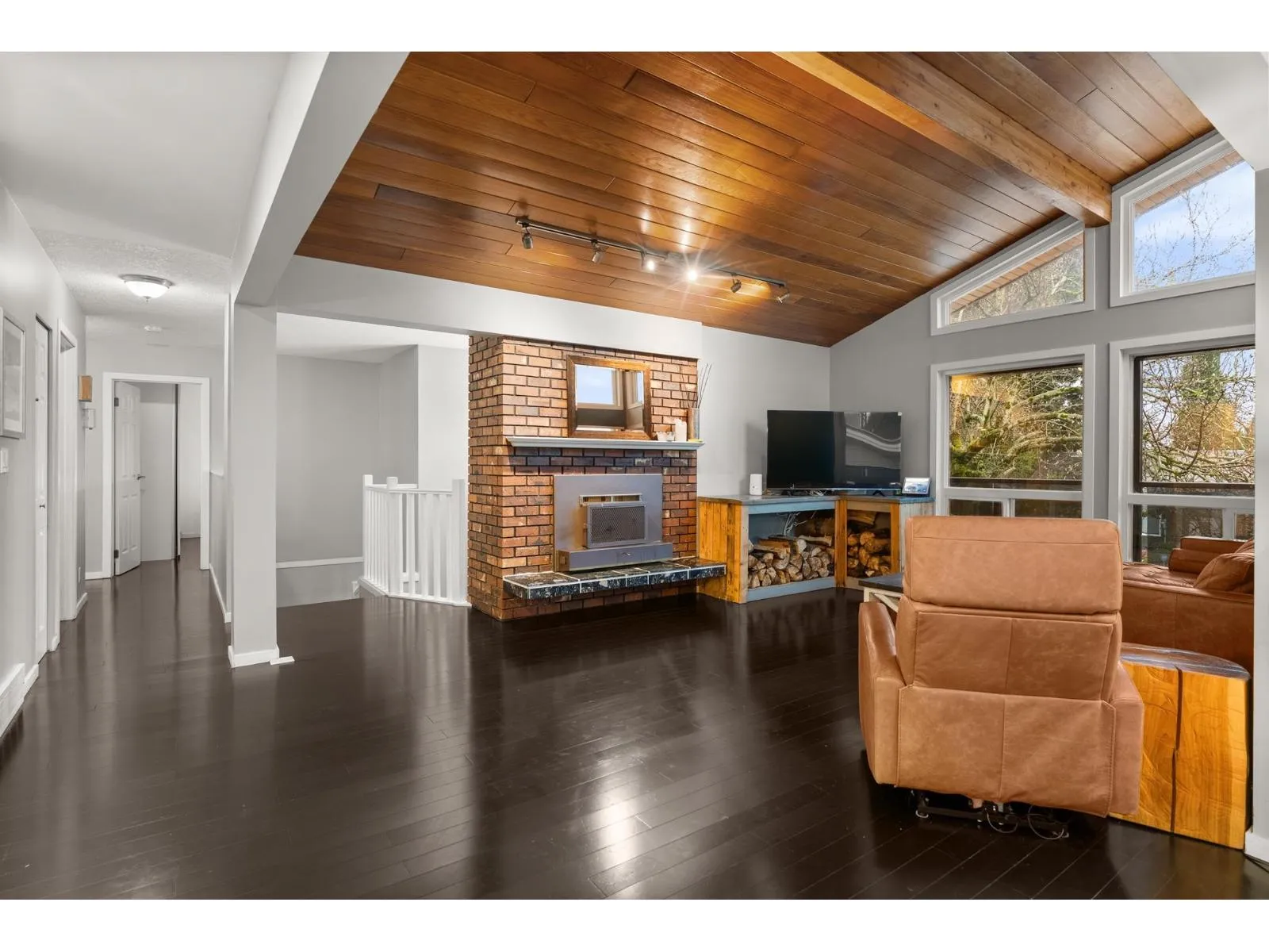 This beautifully UPDATED HOME features an OPEN-CONCEPT renovation with hardwood flooring throughout & striking white-&-black finishes. Both upstairs bathrooms showcase FLOOR-TO-CEILING white tile with modern black accents, UPDATED LIGHTING, and a convenient kitchenette in the laundry area. The stylish kitchen boasts a HUGE KITCHEN ISLAND. Major upgrades include new windows & doors, a NEW ROOF (2023) & NEW HOT WATER TANK (2023). Outdoor highlights incl dual concrete side paths, a 30' x 20' back deck with partial cover, a 60' retaining wall creating two accessible yard levels, a covered 14' x 10' front deck with NEW Duradeck vinyl & NEW glass railing. Located in a cul-de-sac, near Fish Trap Creek trails & Ten Broeck Elementary. CHECK OUT THE VIDEO TOUR! (id:27476)