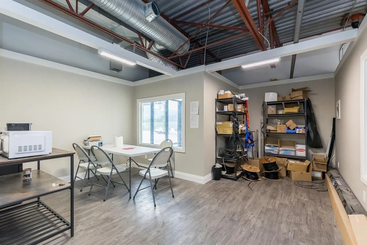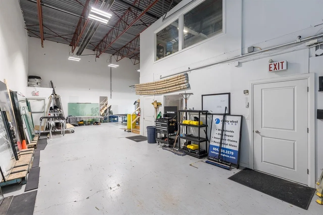 Wonderful opportunity to purchase an end unit warehouse with finished mezzanine in Central/East Abbotsford just off the Sumas Way freeway exit. C4 zoning allows for many varied uses: animal hospital, assembly (church), automotive, brewery, building supply, child care, coffee shop, courier & delivery, garden centre, indoor recreation, landscape supply, liquor store, mobile food vendor, non-permanent commercial, nursery, personal service, pet daycare, printing, recycling, restaurant, retail, trade school & more. The unit has a total of 1969 sqft. with 1663 sqft on the main that has a reception, office area, bathroom with shower floor plus 336sqft. of mezzanine with a lunchroom area, 12' x 14' grade-level loading door and ample customer parking. This unit is currently tenanted till August 2028. The neighboring unit is also for-sale. Contact for more information. See MLS C8075103. (id:27476)