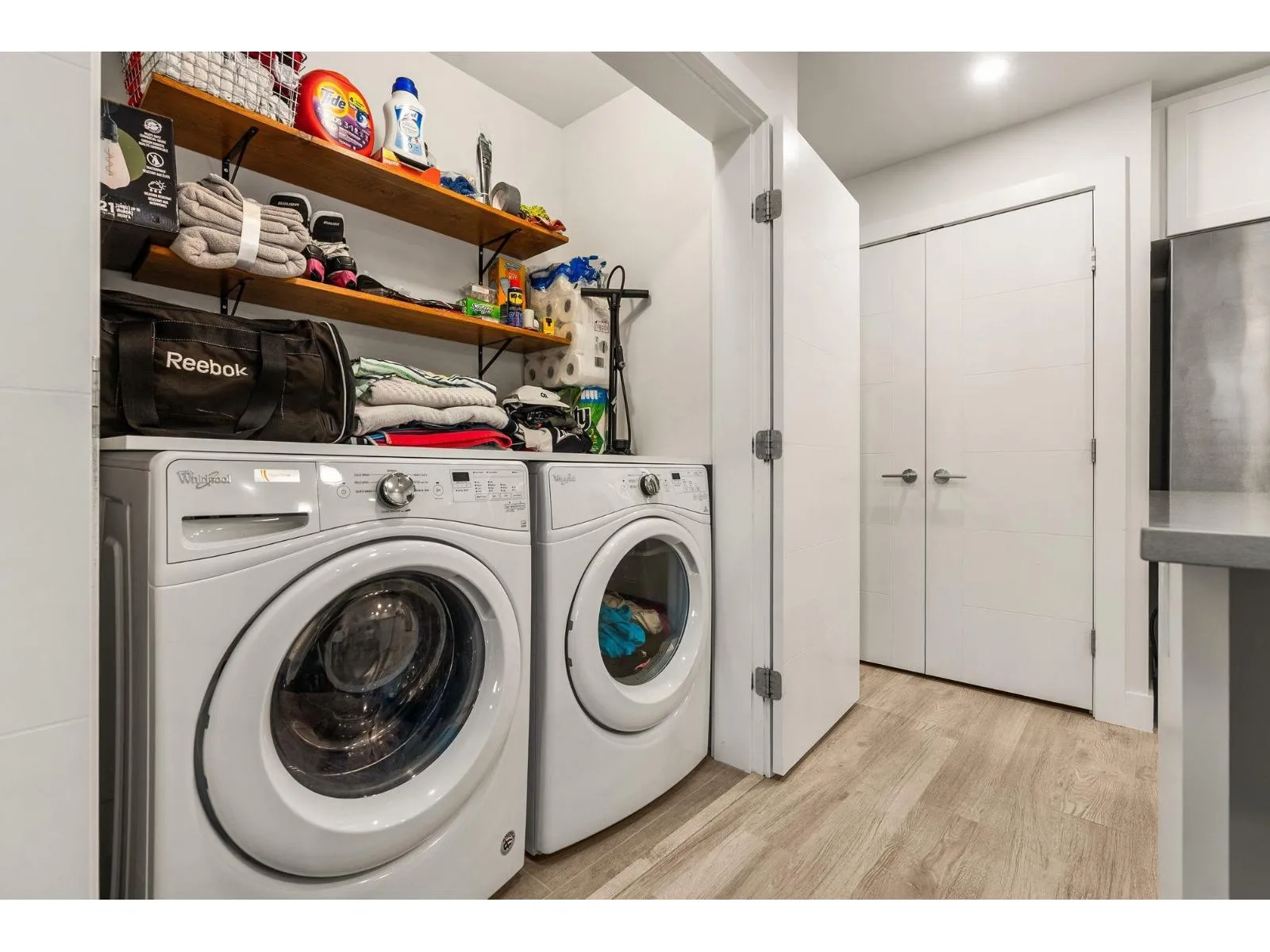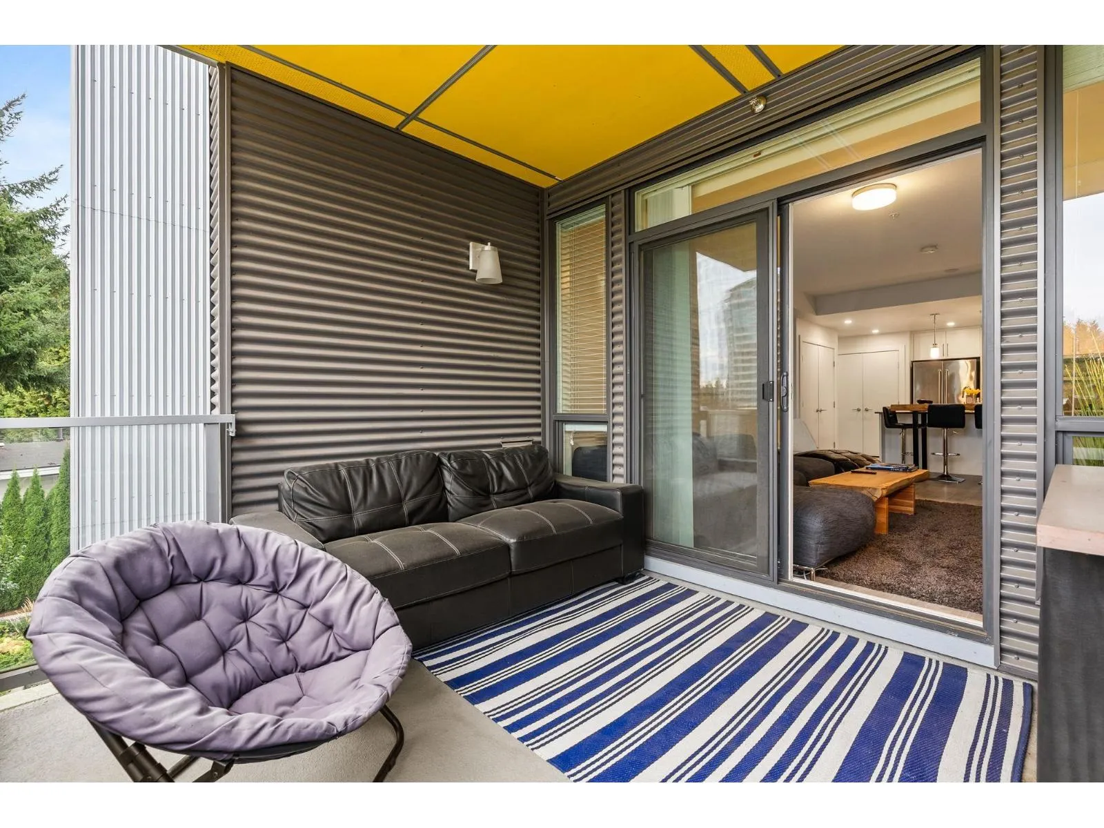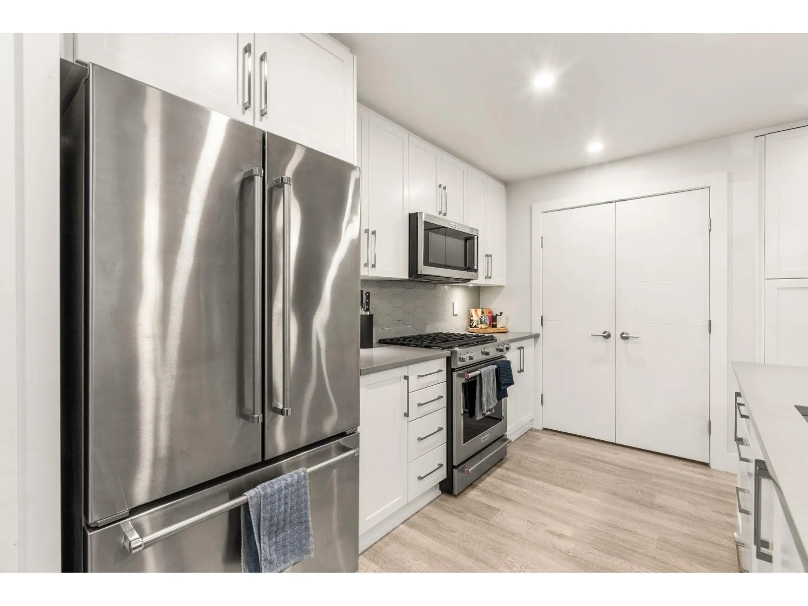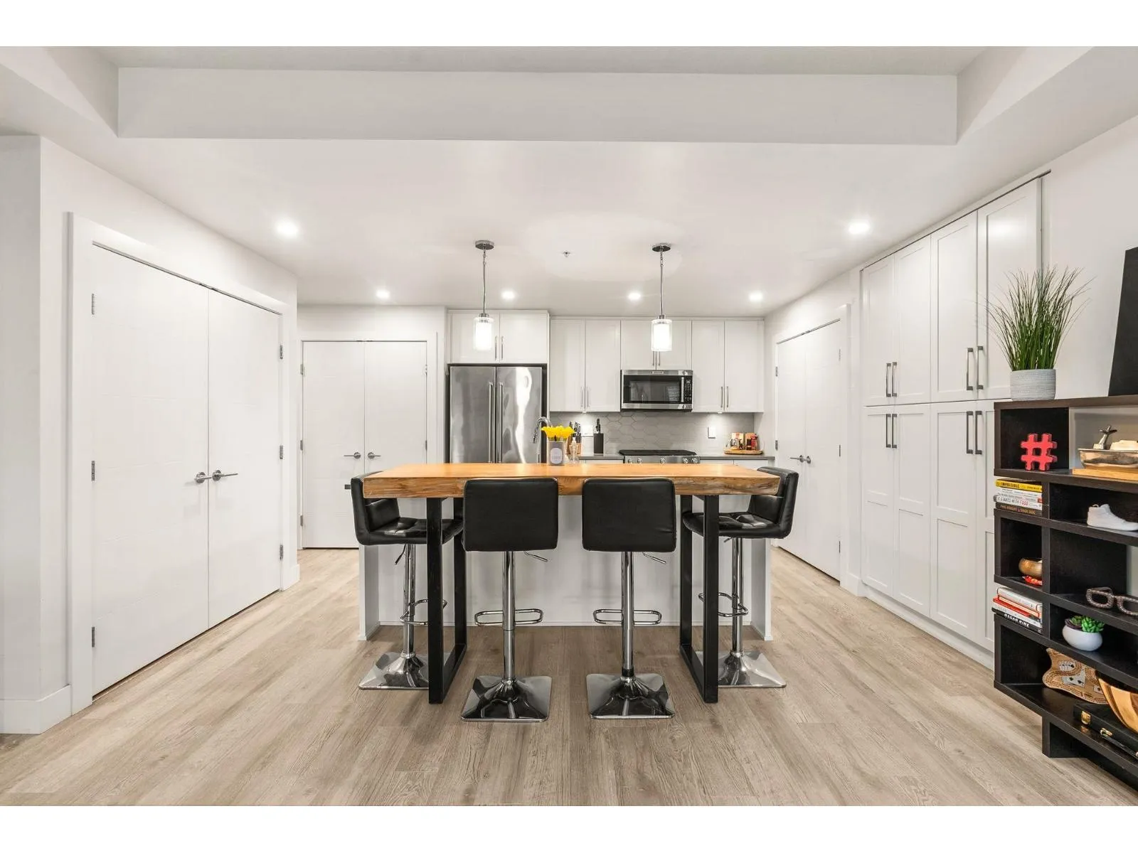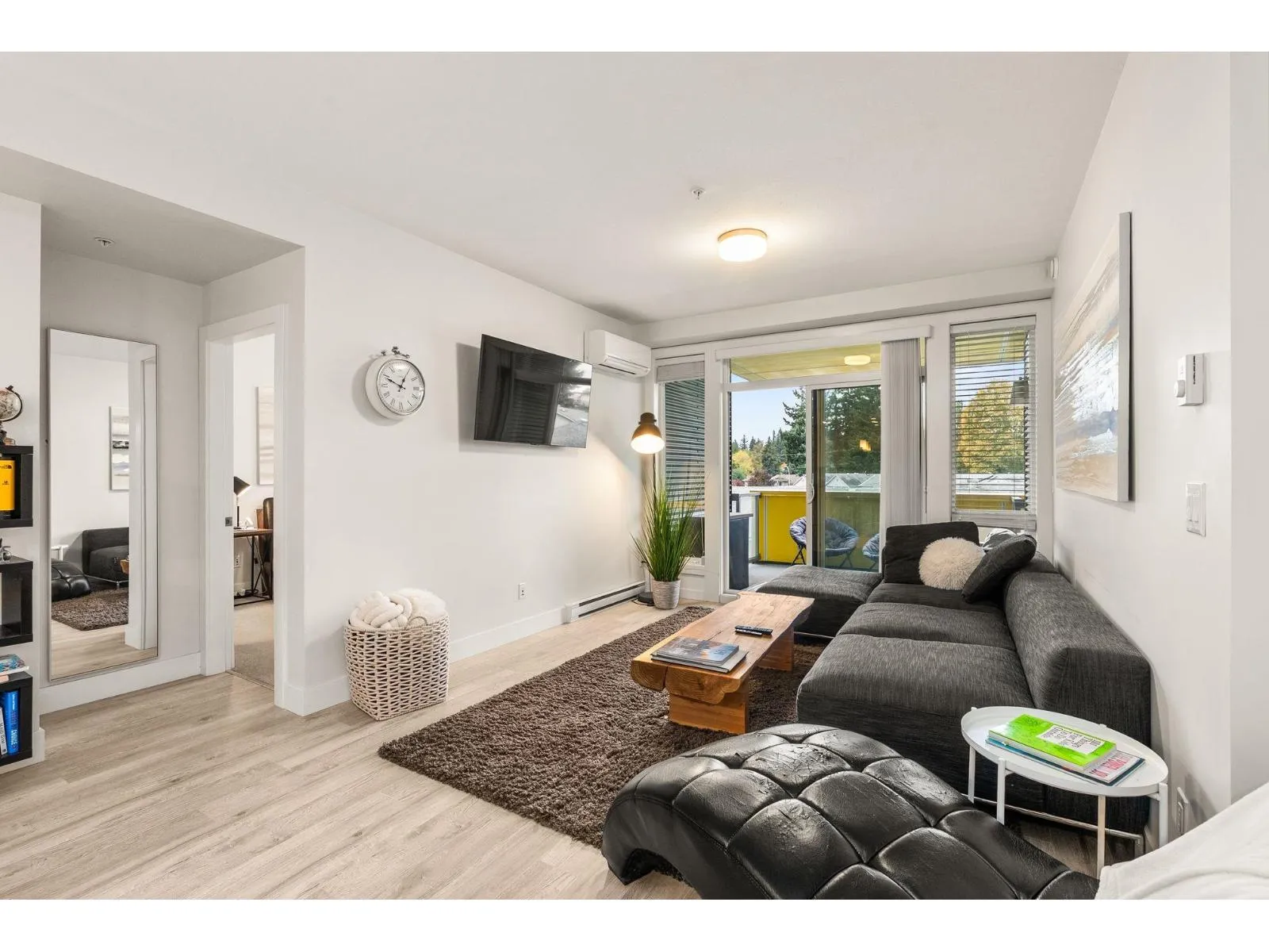 Welcome to Mill District, where modern living meets unbeatable convenience. This bright and stylish 2-bedroom 2-bathroom home is ideally situated in one of Abbotsford's most central locations, just steps away from Mill Lake Park and surrounded by mountain views. Inside enjoy high ceilings, granite countertops, premium KitchenAid appliances with a gas range, and a spacious kitchen complete with large pantry. The home features laminate flooring, a side-by-side washer and dryer and air conditioning for year-round comfort. Both bedrooms include a walk-in closet and private, ensuite bathrooms, with the primary offering a double vanity and glass door, a rain shower. Step outside to a large west-facing patio with an unobstructed view and a gas BBQ hookup perfect for relaxing in the evenings! (id:27476)