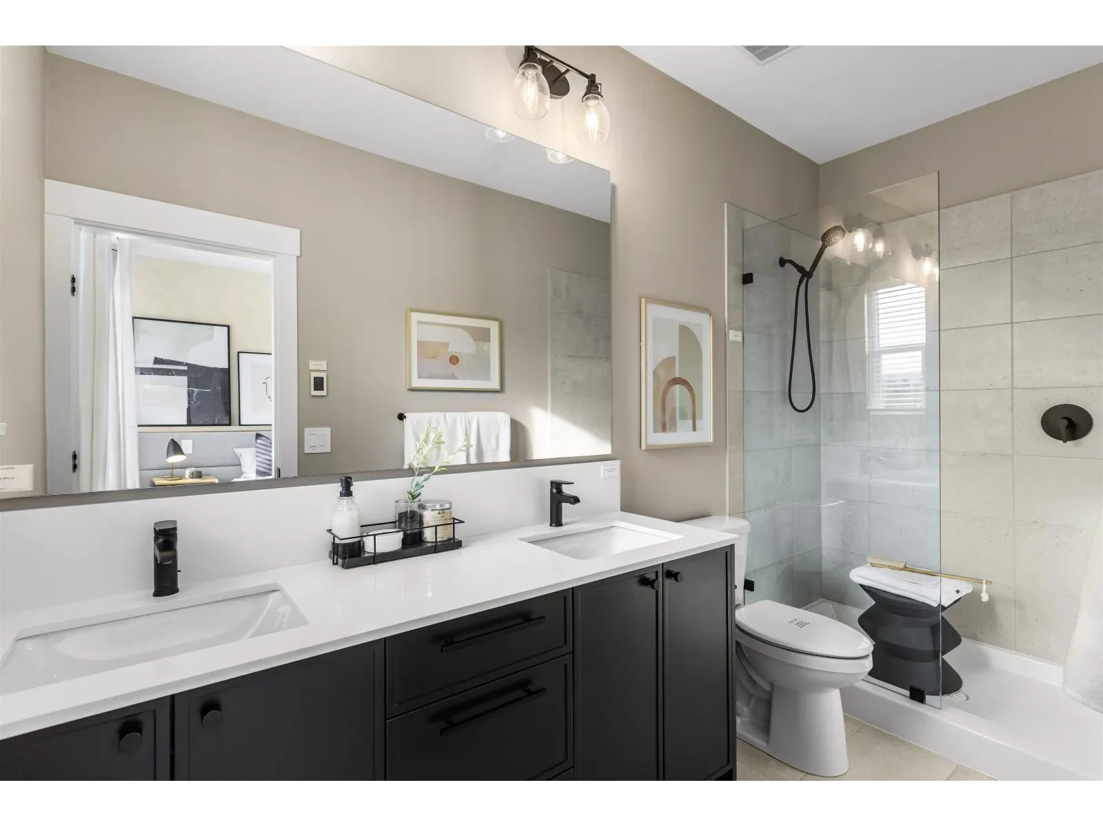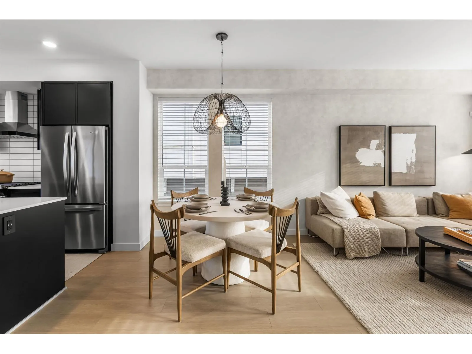 Welcome to RAIL DISTRICT, a master-planned community by Infinity Properties in the heart of Historic Downtown Abbotsford, where urban energy meets relaxed Valley living. This thoughtfully designed 3-bedroom + flex home features a walk in pantry, side by side laundry, versatile flex area ideal for a home office, gym, or studio. Enjoy natural gas forced-air heating, durable wide-plank laminate flooring, and a modern kitchen with custom shaker cabinetry and polished quartz countertops. PARKING FOR 4 CARS - double side-by-side garage plus full driveway. Air conditioning included for a limited time. Newly completed amenity building with gym, pool, entertainment lounge, workstations & more. Move in ready. Visit our Presentation Centre and Showhome Saturday - Wednesday, 12-5 pm. (id:27476)