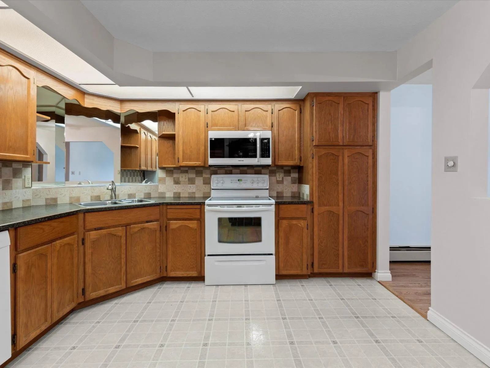 Welcome to this 2-bedroom condo in the popular Royal Court community in West Abbotsford. Featuring in-suite laundry room with additional storage, large kitchen and 2 full bathrooms. Situated in the heart of Clearbrook, you'll enjoy easy walking access to shopping, medical clinics, churches, and banks, all while living in a quiet, well-maintained building. Amenities include secure underground parking, a workshop, and a recreation room with an attached kitchen-ideal for social gatherings. Heat and hot water are included in the strata fees. This 55+ building is no smoking and no pets and is a great place if you want to have a quiet home in the heart of town. (id:27476)
