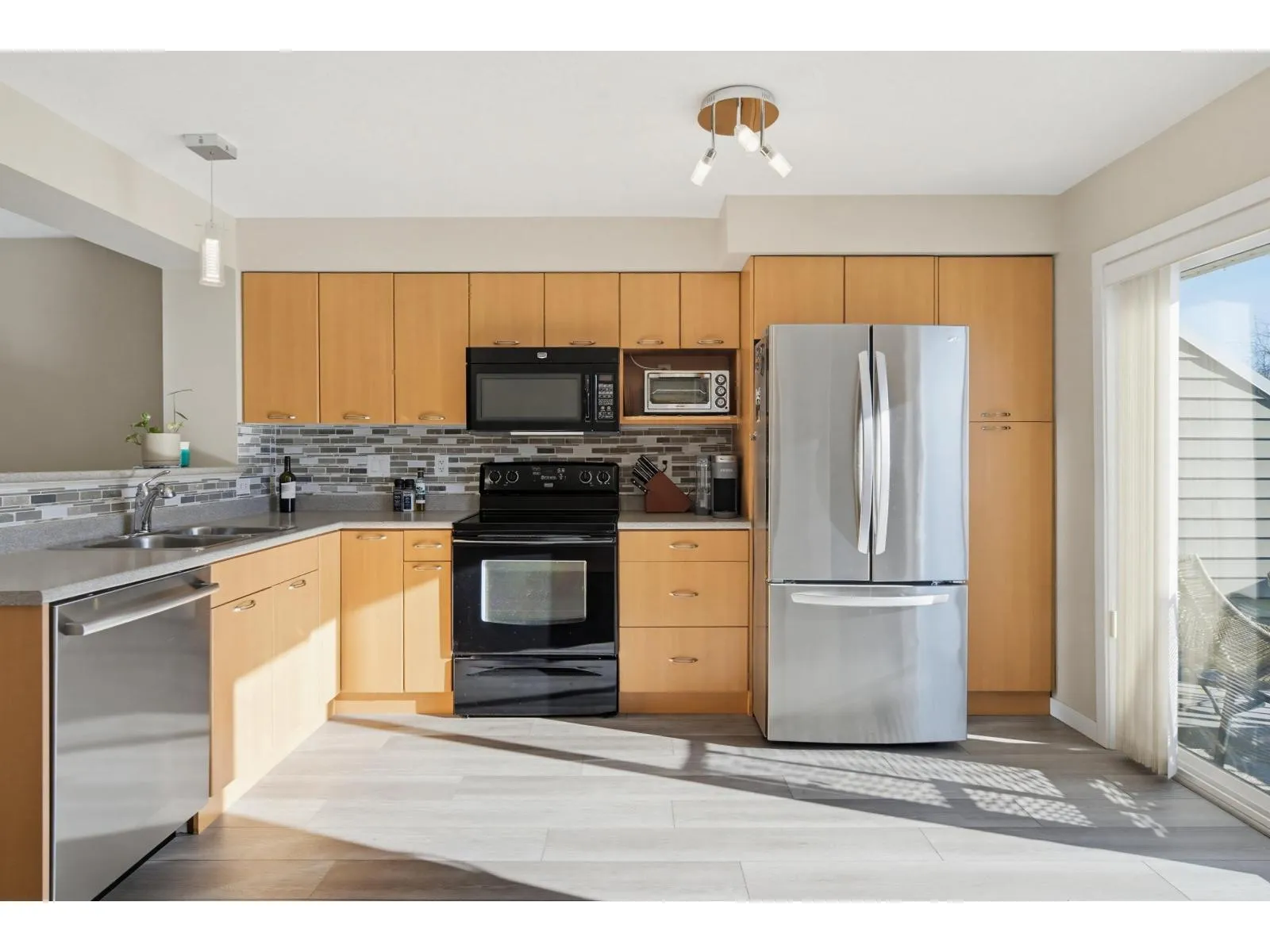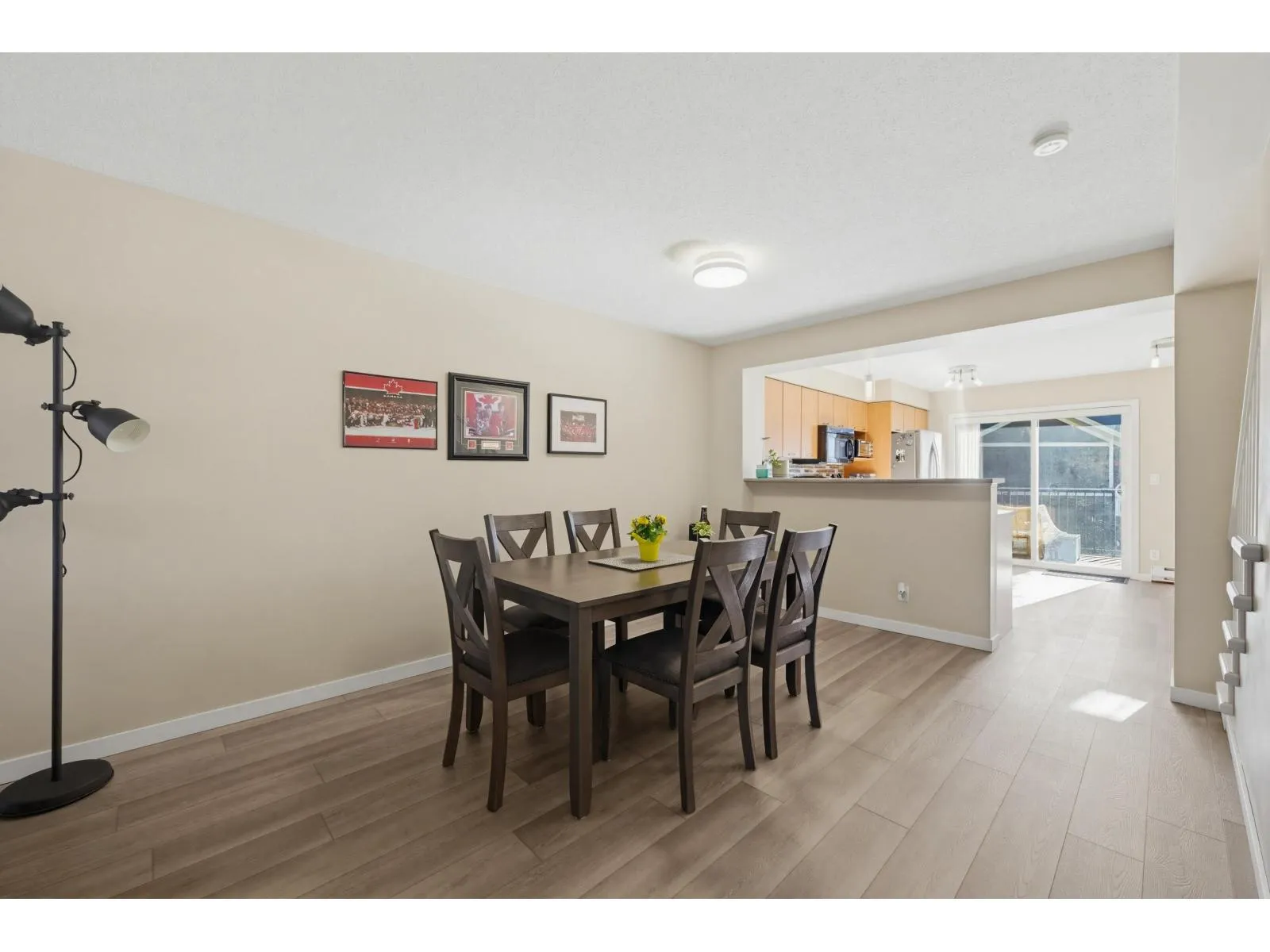 Meticulously cared for 3 beds/ 2 bathroom unit in The Sage at Auguston! Upgrades include vinyl plank flooring throughout the main floor, fridge and dishwasher. Incredibly bright open floor plan on the main floor. Upstairs you'll find 3 bedrooms including master with walk-in closet & ensuite. A covered front porch and a back balcony as well with a lovely sunset view. Great location in the complex with ample street parking out front and fully fenced yard with gate. Large double tandem garage and room for a 3rd vehicle on the driveway. Amazing location with hiking/ biking trails, Auguston Traditional School and Ledgeview golf course all within walking distance. (id:27476)