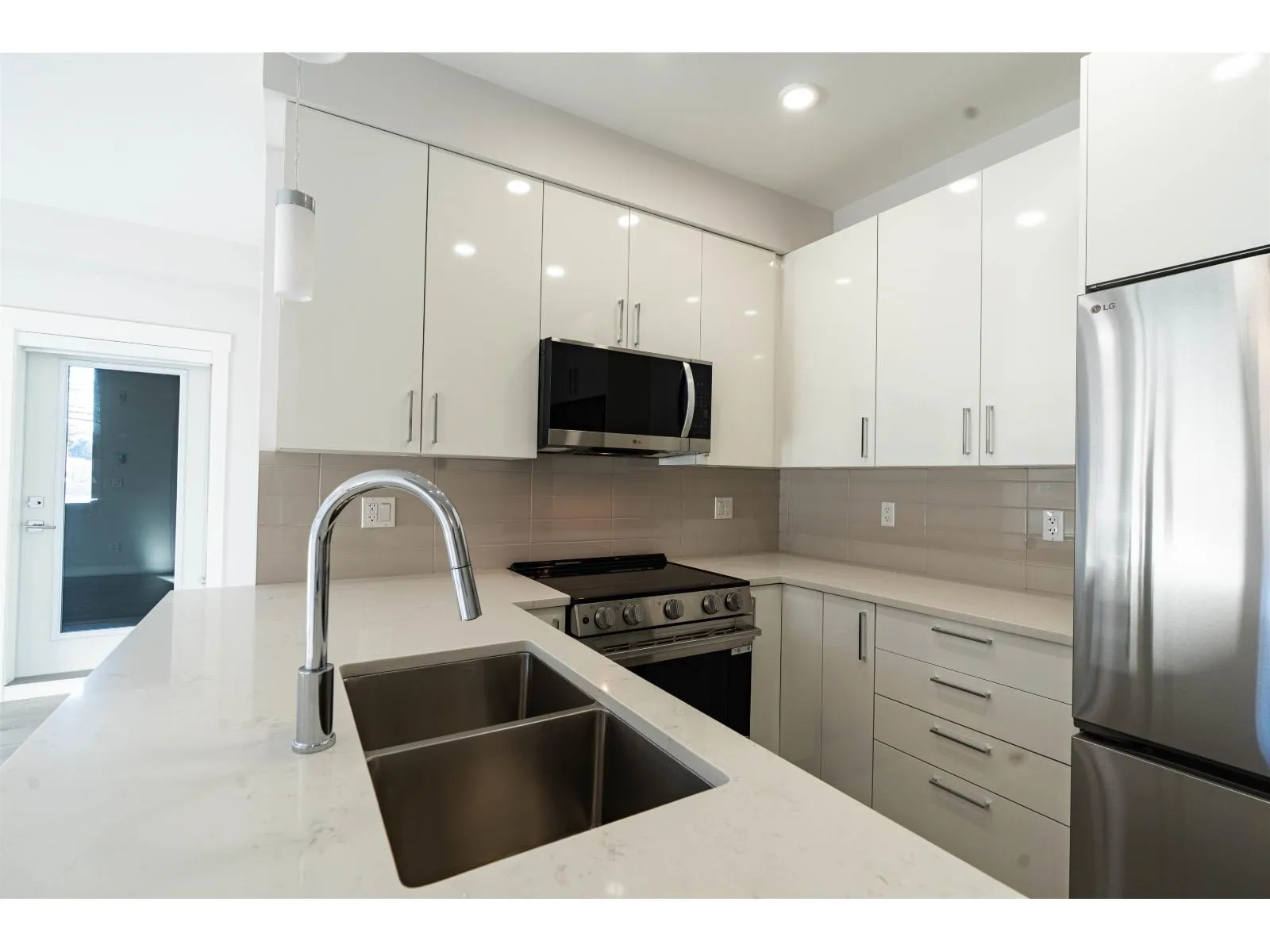 Brand new and move-in ready 2-bed, 2-bath condo at the sought-after JACOB Complex in Abbotsford. Unit 217 features modern finishes, including sleek cabinetry, stainless steel appliances, and laminate flooring throughout. Designed by Redekop Faye, the building offers a well-maintained courtyard known as "The Gathering Place" and a family-friendly playground. Conveniently located minutes from Historic Downtown Abbotsford, Mill Lake Park, Seven Oaks Mall, UFV, Costco, and all levels of schools. Includes 1 storage locker. Ideal for first-time buyers, professionals, or investors. OPEN HOUSE - Jan 24 & 25 (2-4 PM) (id:27476)