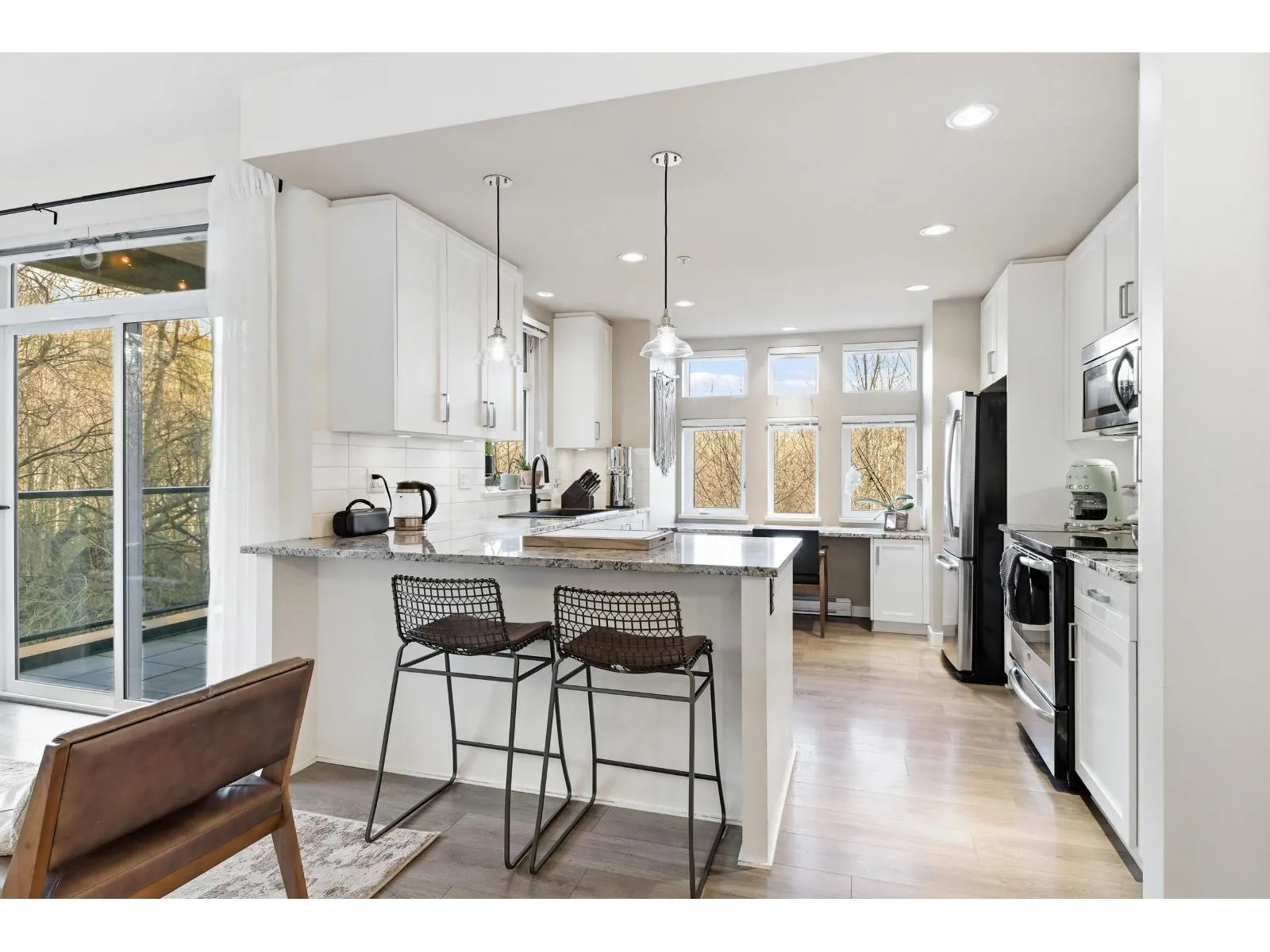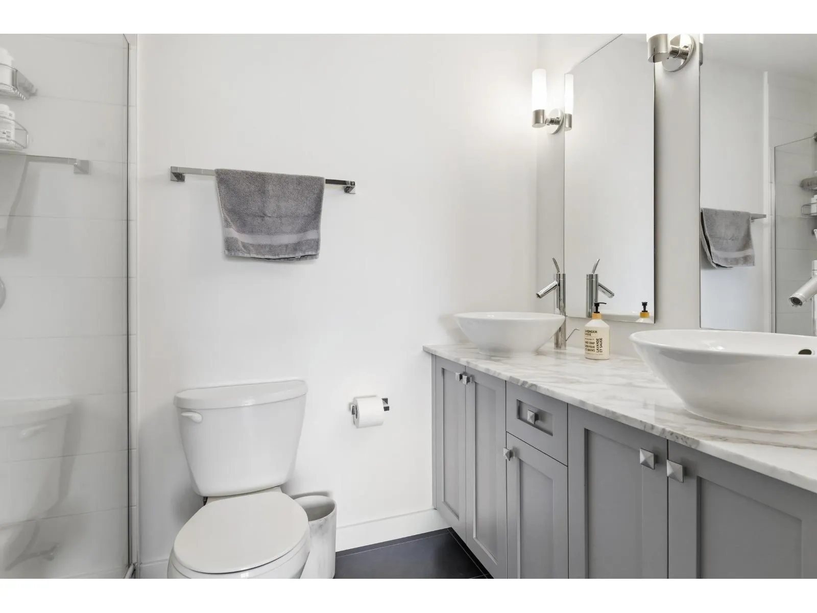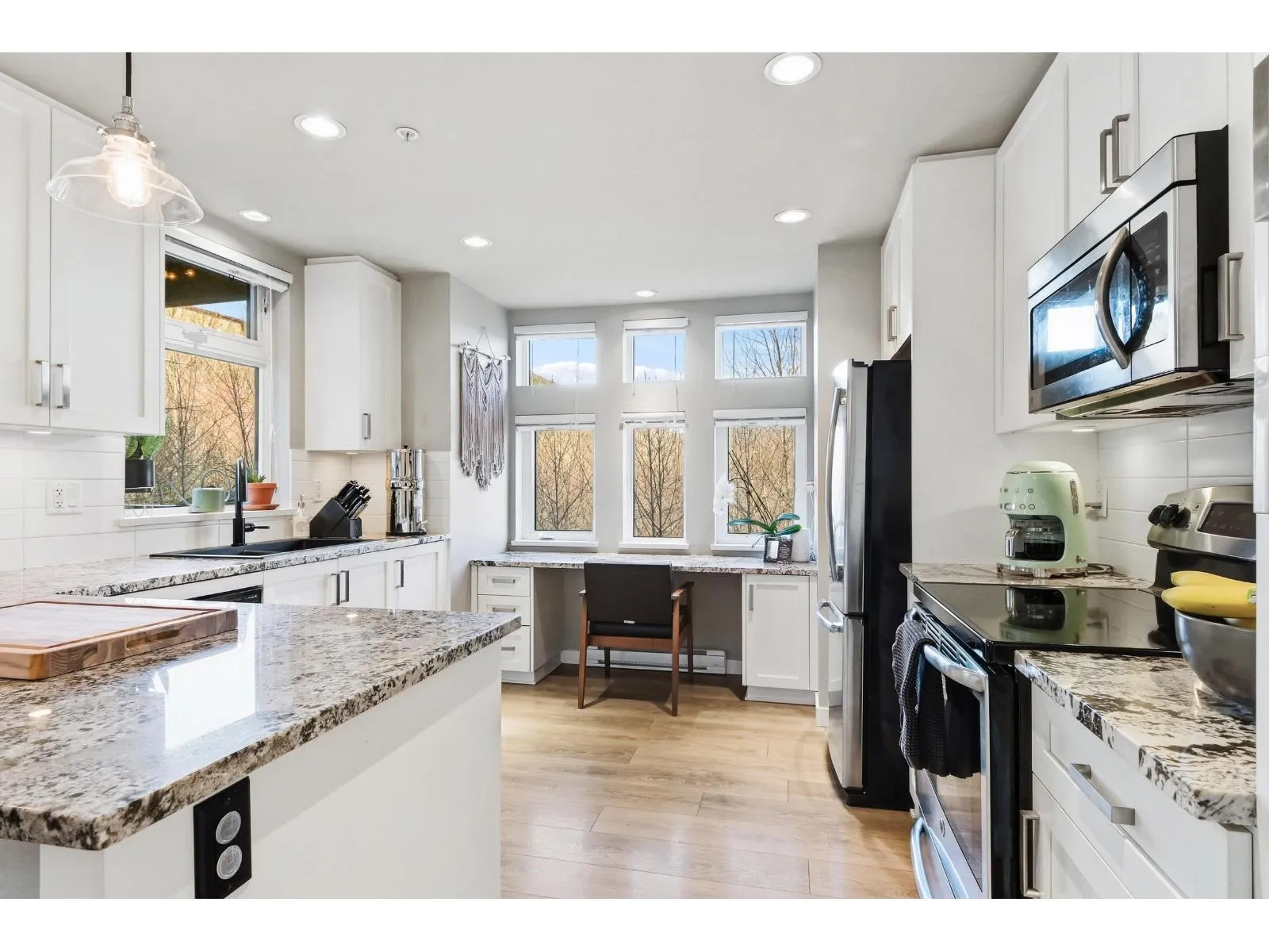 Prime East Abbotsford location with rare privacy & stunning greenbelt views-This spacious, light & bright 2 big bedrms, 2 full ensuite bath corner unit at Waterleaf offers the perfect blend of privacy, nature & convenience, steps to shopping, dining, schools, trails & quick Hwy 1 access. Featuring 9' ceilings, oversized windows, A/C, fireplace & upgraded kitchen with stone counters, SS appliances, induction range, pantry & breakfast bar plus a great spot for your home office. The spacious primary suite includes a walk-in closet & double-sink ensuite. Enjoy a private, covered balcony overlooking the greenbelt. Resort-style amenities include outdoor pool, hot tub (open year round), world class gym, and rec center with full kitchen & games area. Pets & rentals OK. Includes 2 secure underground parking stalls plus storage. Could this be the one? Available for move in March 1st. Click multi-media links below to see virtual tours, videos, floor plan & more. (id:27476)