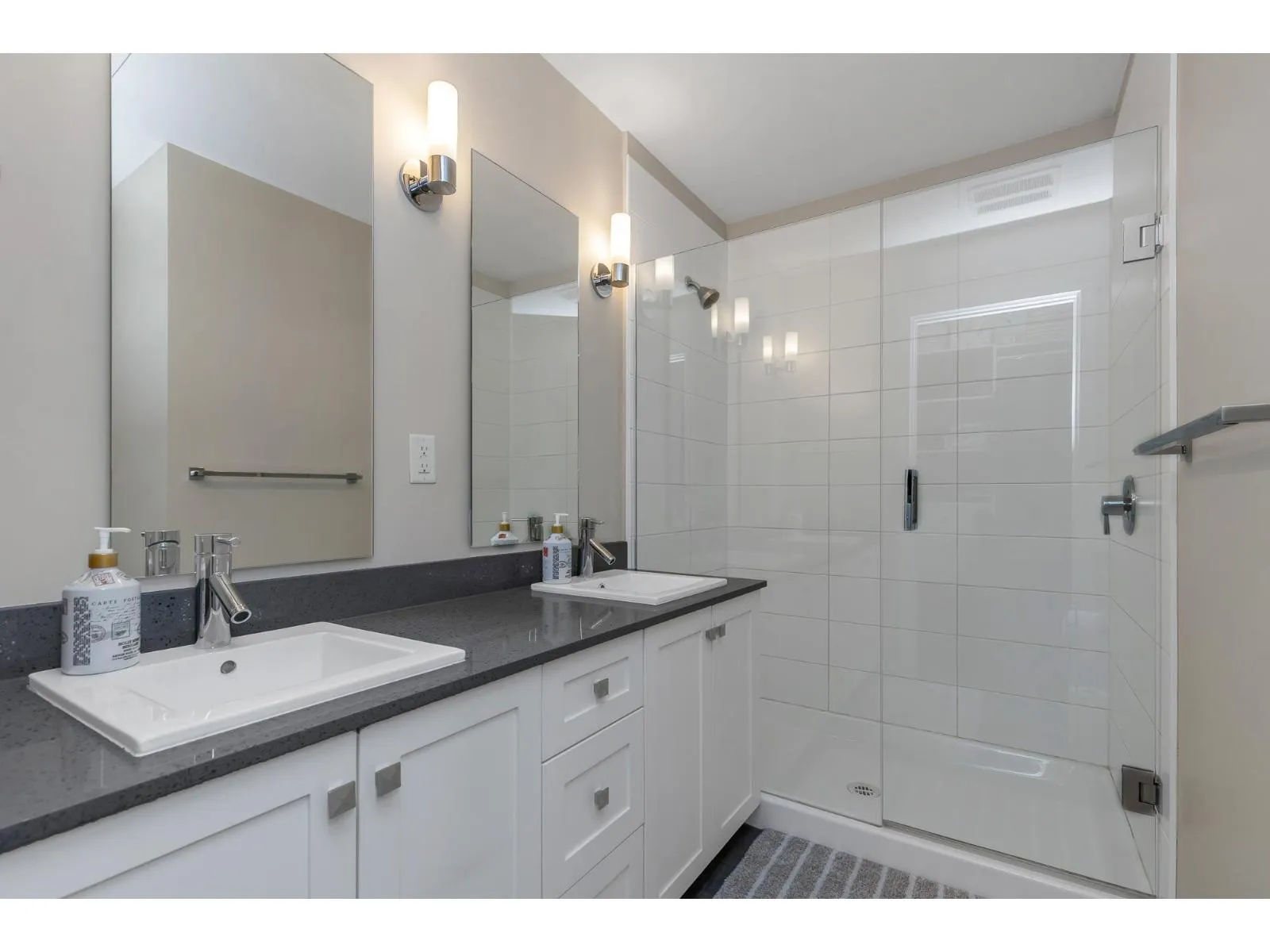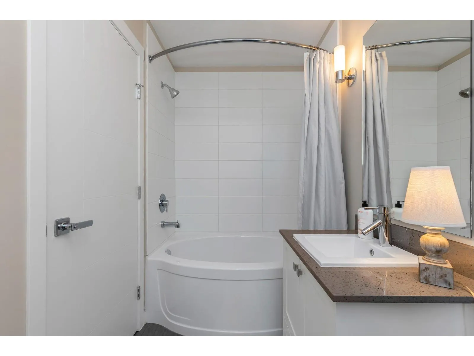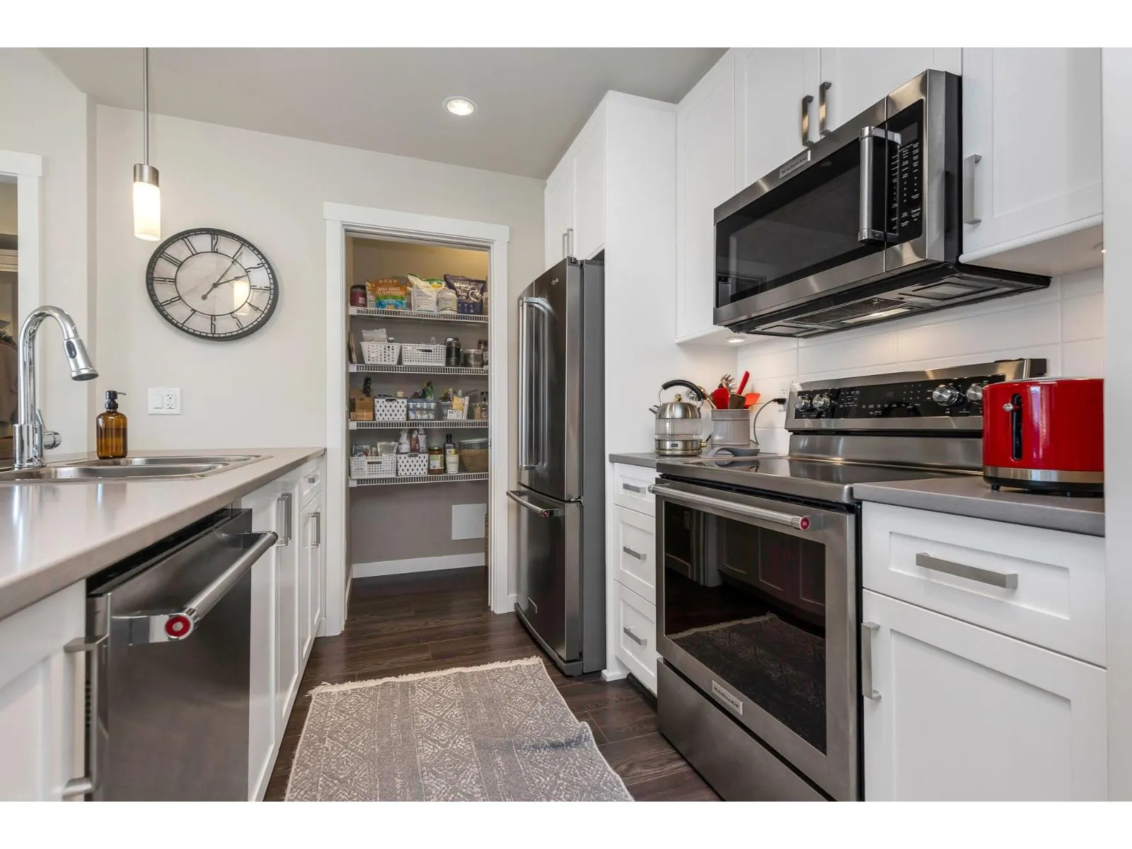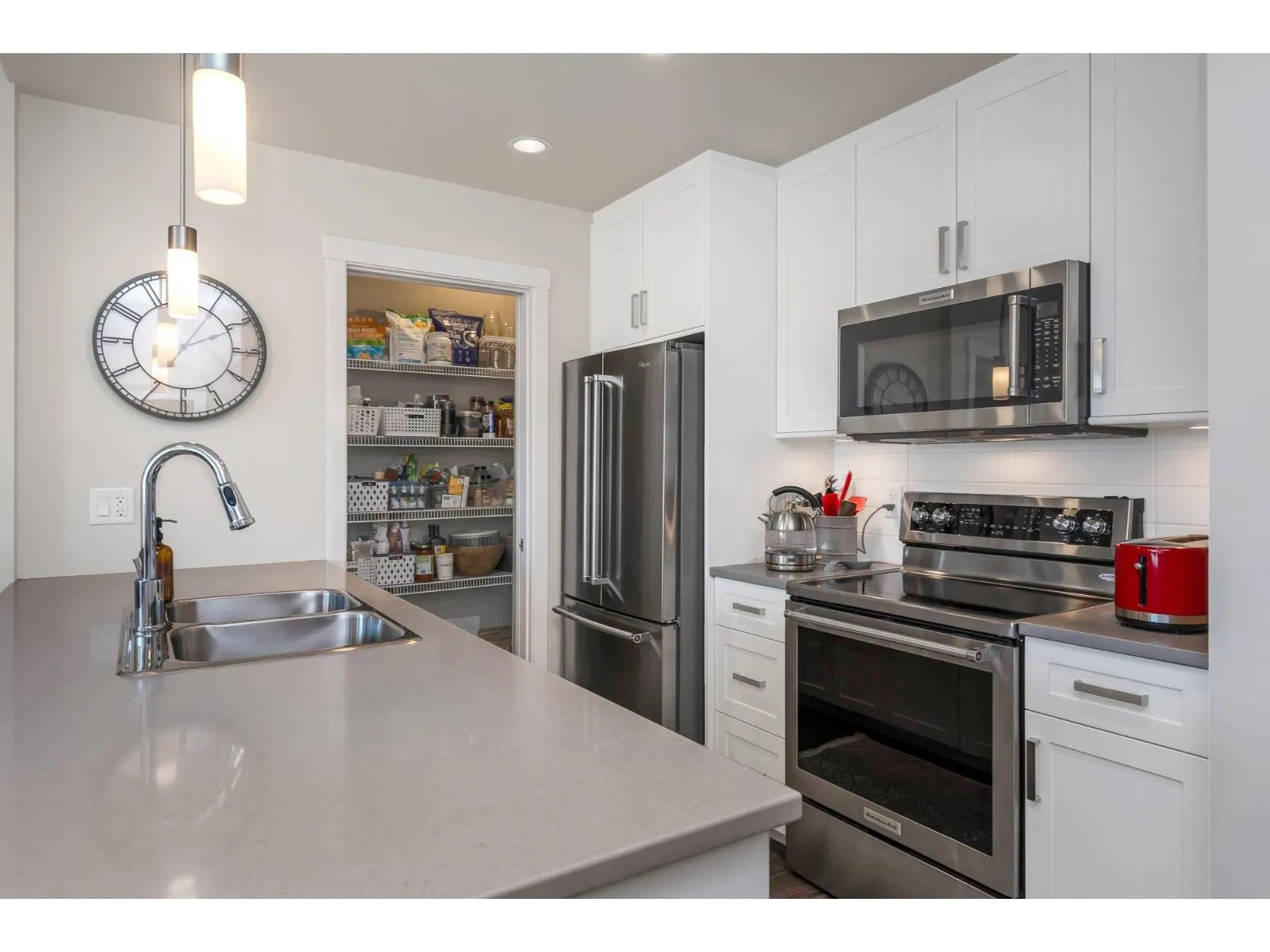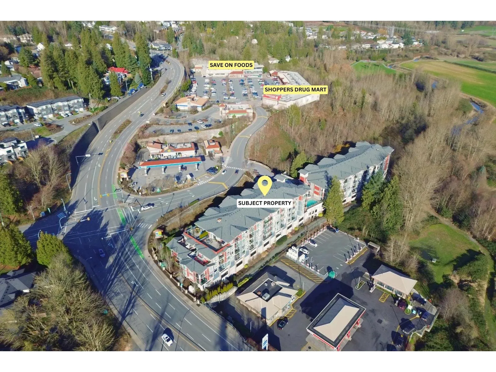 Immaculately kept unit with fantastic Baker/farmland views and plenty of natural sunlight in East Abbotsford's best building! Functional open floor plan with a Southern facing balcony, laminate flooring throughout, a cozy electric fireplace, plus 2 bedrooms - each with direct access to its own bathroom. Spacious primary suite with walk-in closet, double sinks, blackout blinds, plus A/C. Kitchen features stainless steel appliances, a large pantry, & stone countertops throughout kitchen and bathrooms. Two parking stalls & storage locker included. Proactive, well-run strata. Endless hot water included. Well insulated makes for very low heating costs. Excellent building amenities - heated outdoor pool, hot tub, fully equipped gym, & lounge w/ kitchen. Dogs & cats allowed, total of 2 w/ 30lb limit each. Includes a private walking path circling the building and well kept greenspace/park for your dogs. Quick Hwy 1 access with a shopping village located directly behind the building for convenience. Don't miss out! (id:27476)