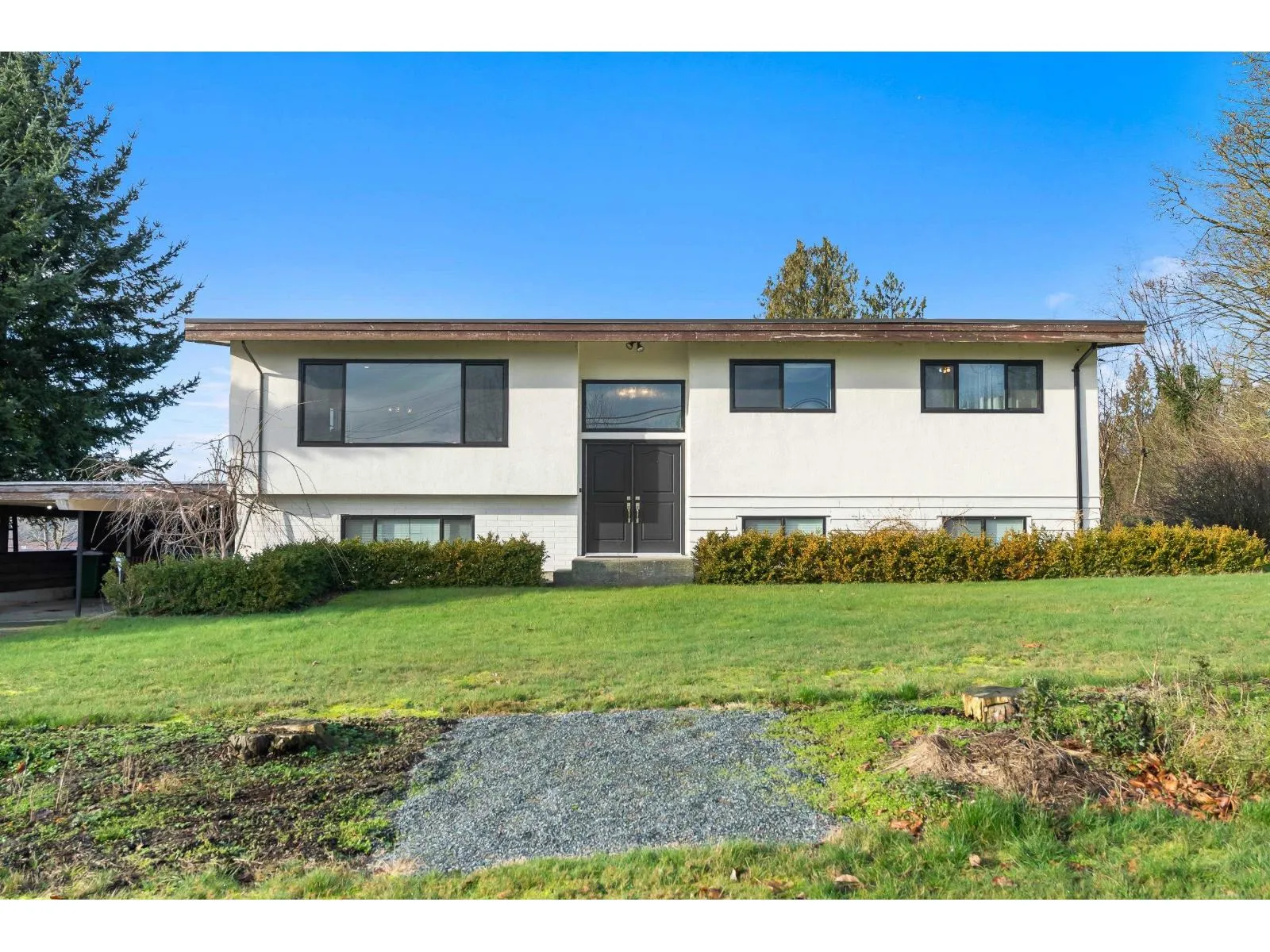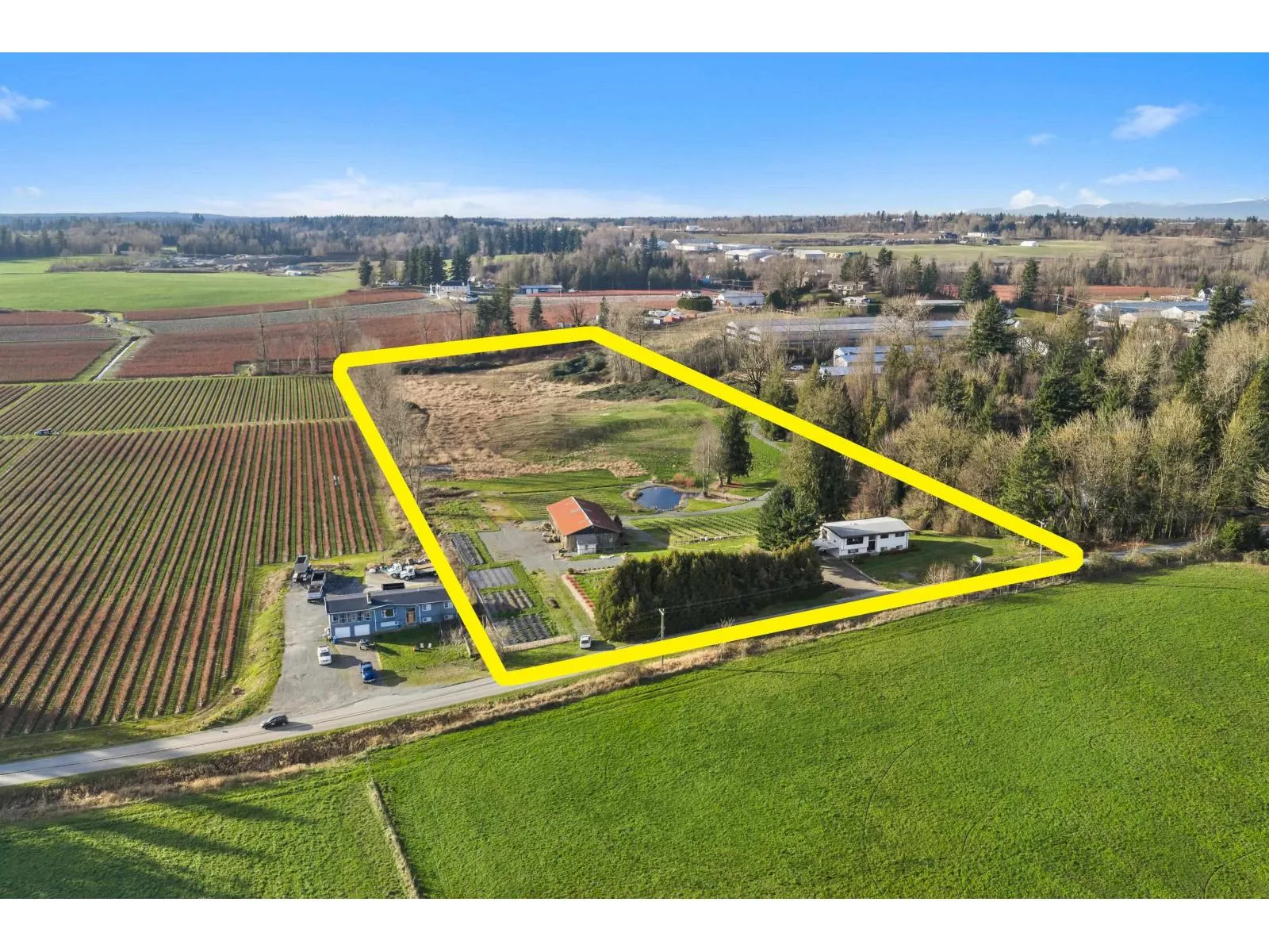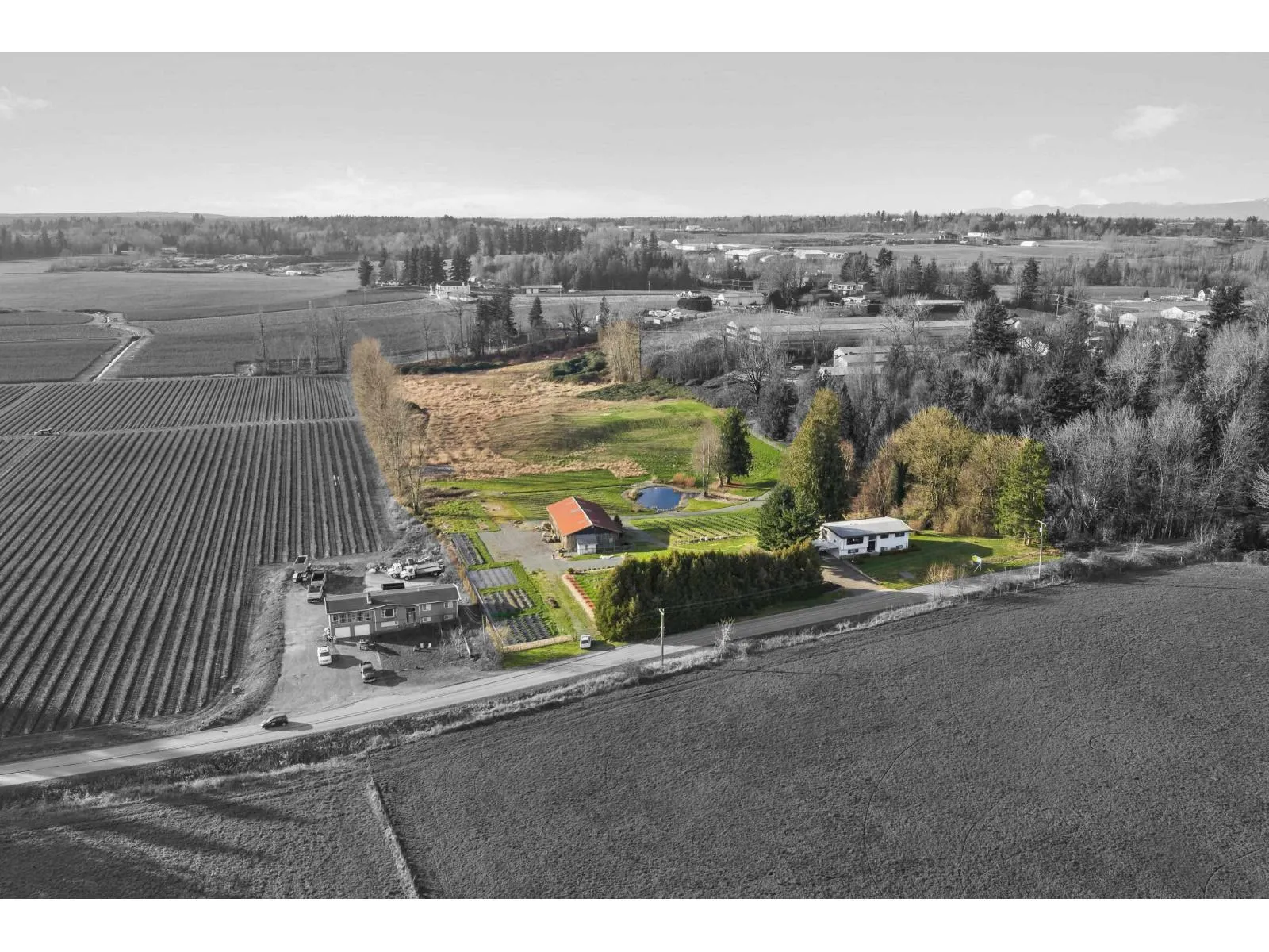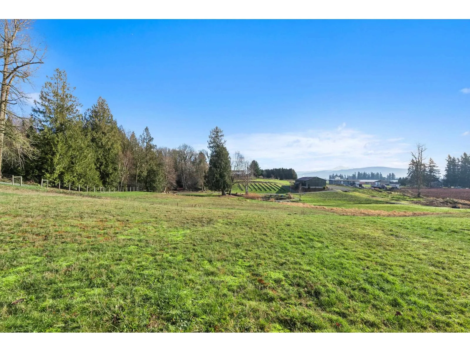 FIRST TIME EVER FOR SALE! Prime 11 Acre on Bradner Road showcasing stunning Mt Baker views, located on a quiet stretch between 0 Ave & Huntingdon Rd. Ideal for a DREAM ESTATE, hobby farm, barns, & agricultural use. Rectangular property offers approx 370 FT of frontage w/ two driveways. Features a 2895 SQFT split-entry home w/ solid bones, ready for renovation, or take advantage of the unique elevation to build a custom 2 storey or rancher w/ walk-out basement. Perfect for large luxury residence (ability to build larger than 5400 SQFT). Incl a 3040 SQFT barn. Gently rolling land offers beautiful landscaping elements & ponds, creating a serene backdrop for outdoor living - or modify to suit your farming/estate needs. Zoning allows for 2nd home (970 SQFT), barn & 2 commercial vehicle parking (id:27476)