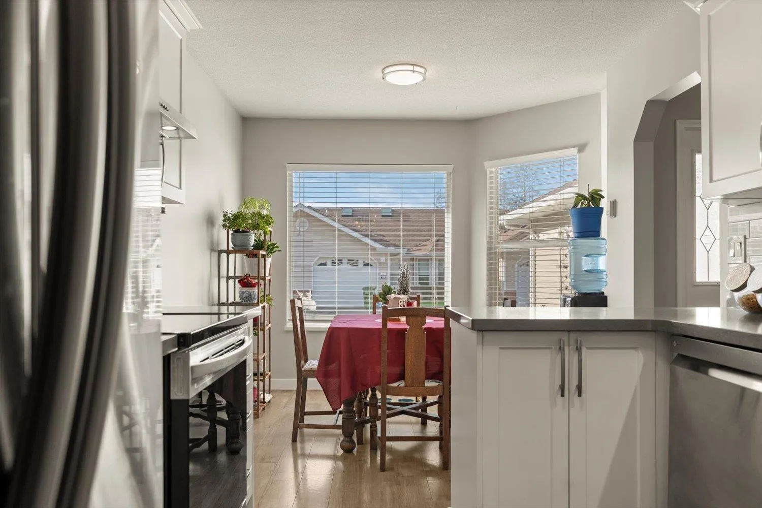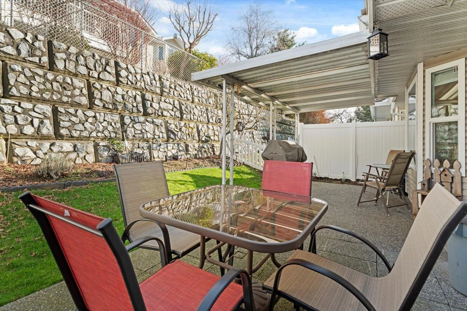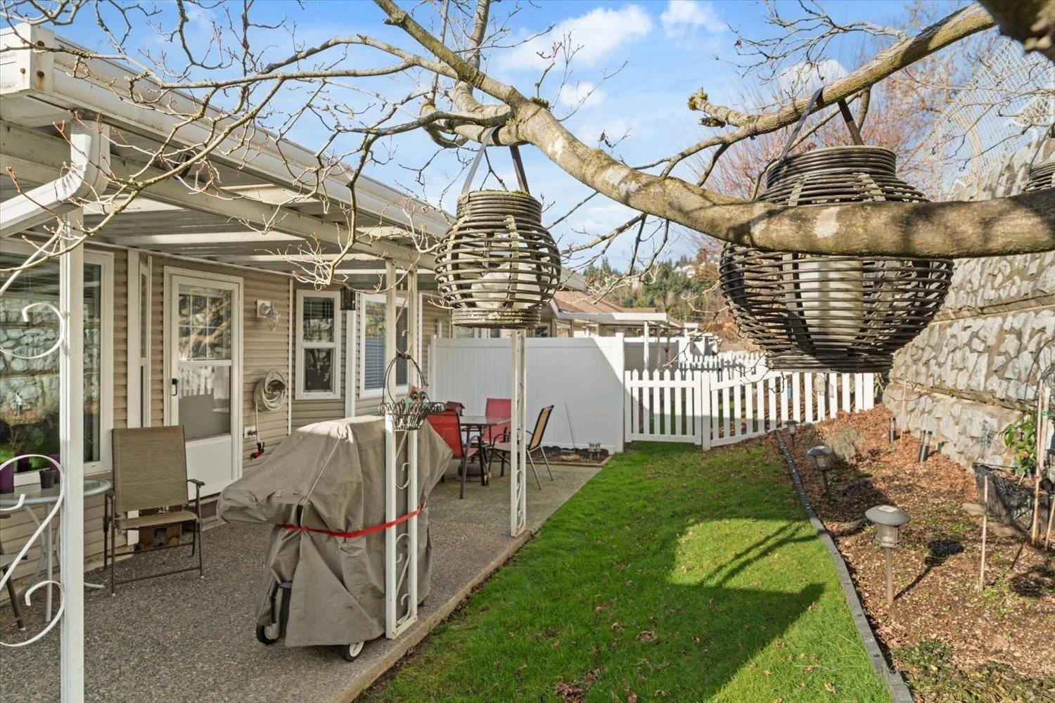 Welcome to Belmont Ridge in East Abbotsford. This well maintained one level two bedroom 2 washroom townhouse is close to shopping, banks, restaurants, Fraser Glen Golf Course and has easy freeway access. Many updates including quartz counter tops, laminate flooring, vinyl windows, blinds, garage door opener, ceiling insulation, stove, fridge, dishwasher are stainless. Newer dark grey W/D., large outdoor patio and the unit has been freshly painted. Single car garage with 2nd parking spot out front (rented $15 pm). This lovely townhome is move in ready. No age restriction. Rentals allowed. One cat or 1 dog not to exceed 25 lbs at maturity. The sellers are non-smoking. Open House Sat. Feb. 14 - 12pm-2pm (id:27476)