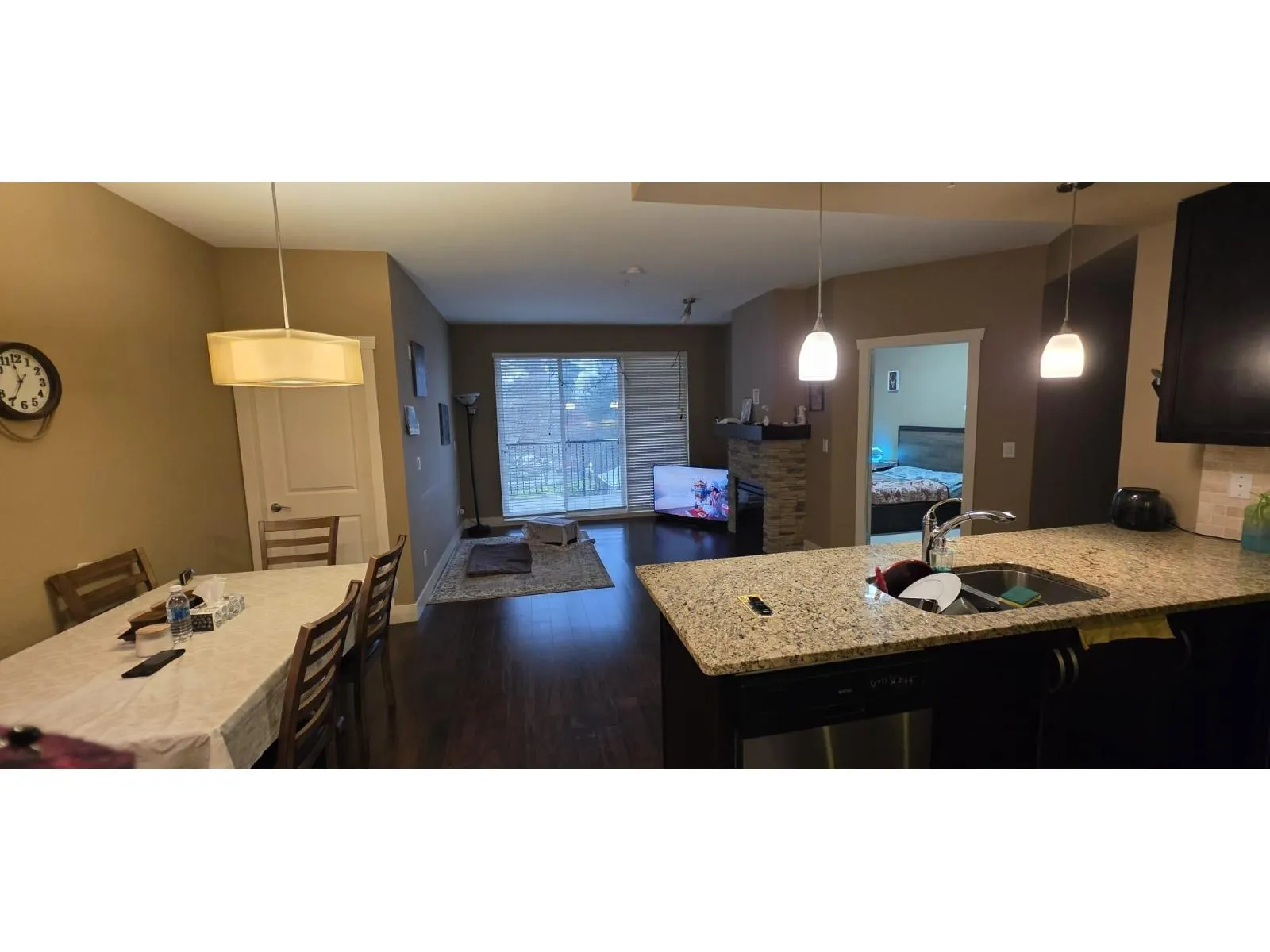 This bright and beautifully designed 2-bedroom plus den, 2-bathroom home features an excellent floor plan in a prime location. The open-concept kitchen and dining area are highlighted by dark shaker cabinets, granite countertops, and stainless steel appliances, offering both style and functionality. South-facing windows and a patio fill the home with natural light, while the stone-accented fireplace adds warmth. The bedrooms are thoughtfully placed on opposite sides for privacy, with the primary offering a walk-through closet and private ensuite. The versatile den suits a home office or extra storage. In-suite laundry includes full-sized stacked appliances. This Brooklyn strata home comes with two secured parking stalls, a storage locker, and access to an amenities room for private gatherings. Walking distance to Seven Oaks Mall, Superstore, and restaurants, it combines comfort, convenience, and lifestyle in one exceptional home. (id:27476)