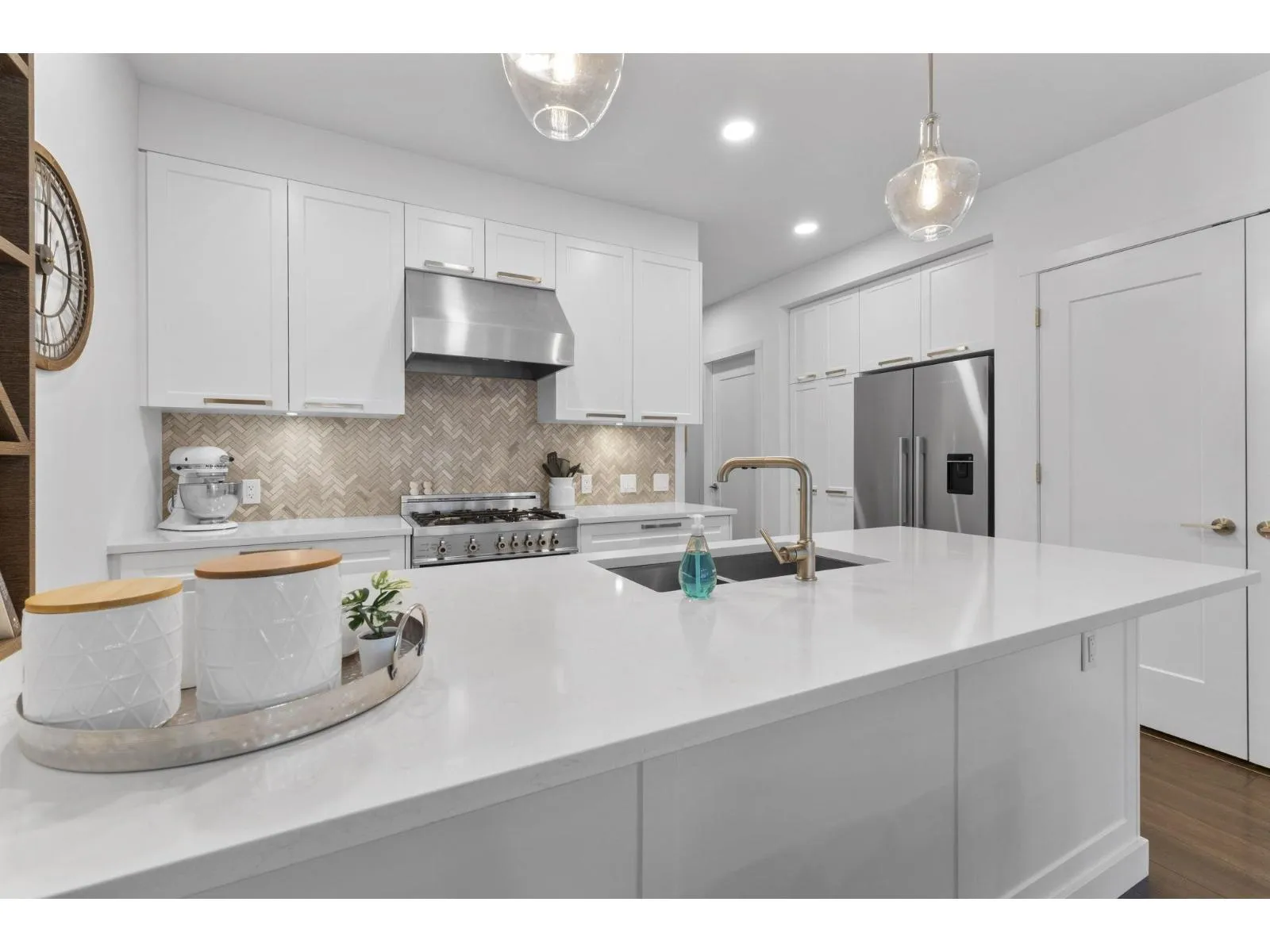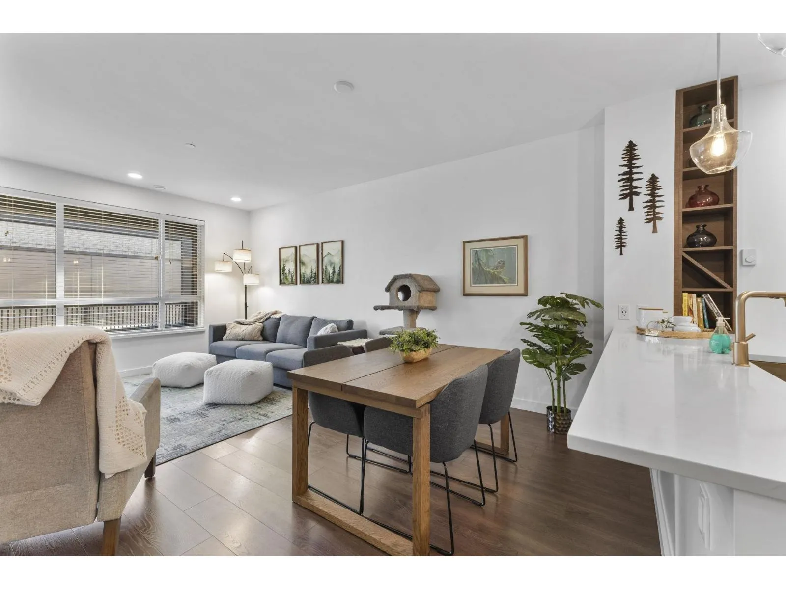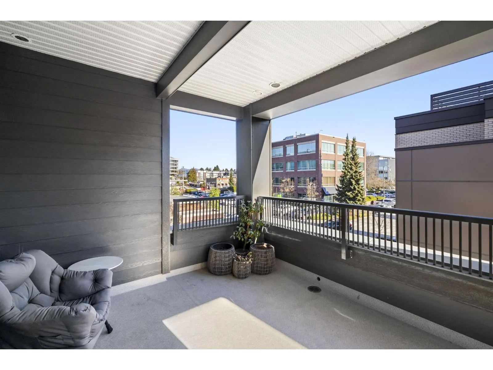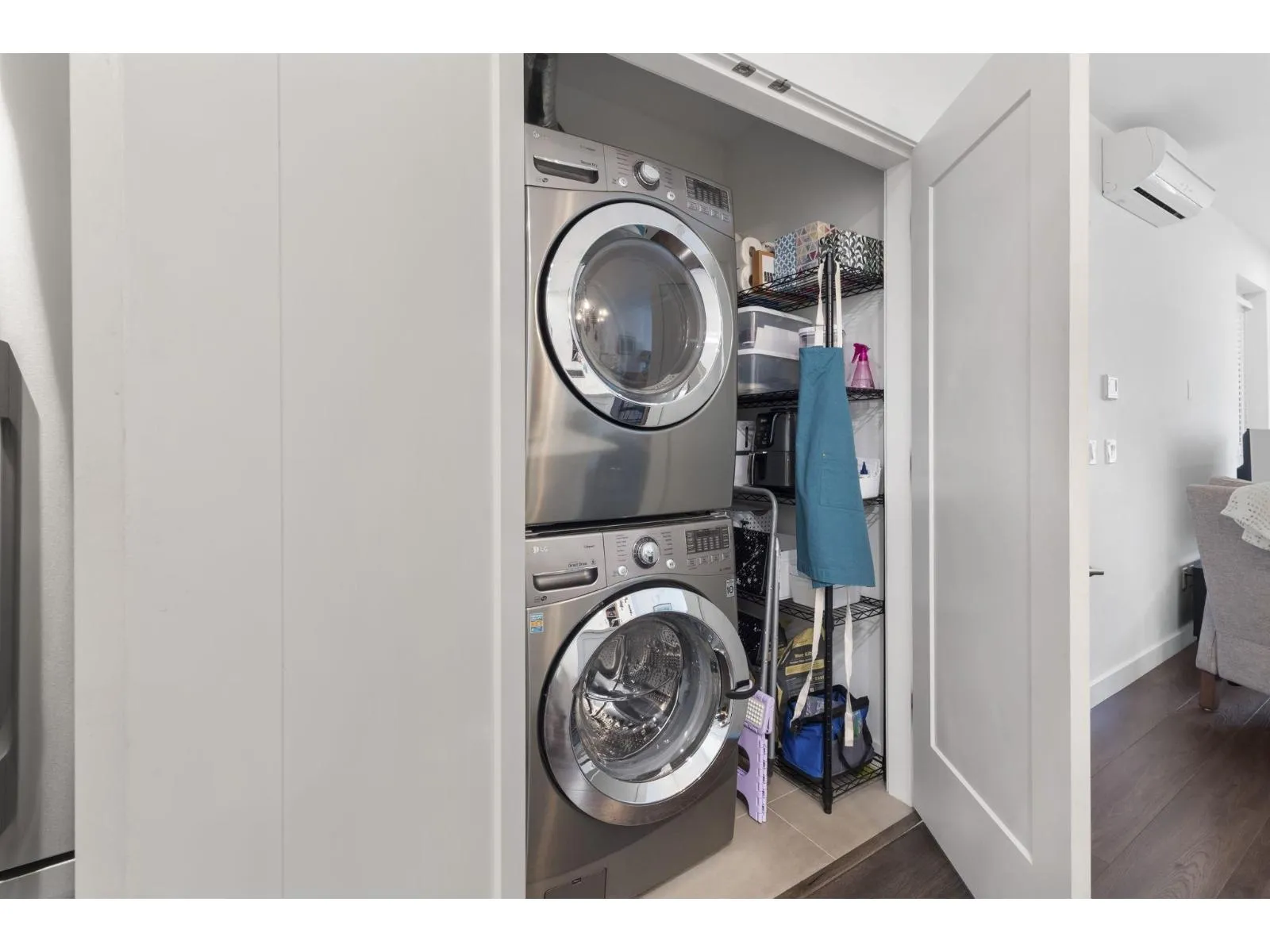 Experience modern luxury living in this meticulously maintained, 1 bedroom + den, 1.5 bathroom home at The Residence at Gateway. Designed with comfort and quality in mind, this residence features 9-ft ceilings, wide-plank flooring, and a bright open-concept layout that maximizes the space. The gourmet kitchen showcases premium stainless steel appliances, sleek cabinetry, and refined modern finishes. Enjoy efficient year-round comfort with a heat pump system and radiant heated bathroom floors. Step outside to a large private patio, perfect for relaxing or entertaining. Built to a high standard with premium and high-end finishings throughout. Includes a secure, gated storage locker with electricity. Ideally located minutes from UFV, the hospital, shopping, dining, and everyday amenities. (id:27476)