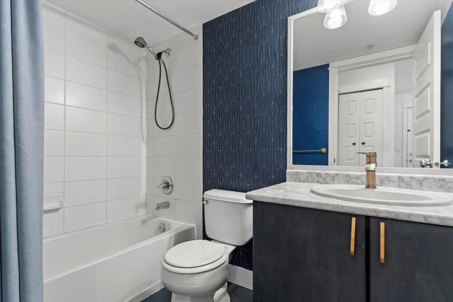 Attention investors and home buyers! Welcome to this spacious 1 bedroom, 2 bathroom inside-corner unit on the 2nd floor featuring an open concept layout and a large den (ideal office, nursery, or guest space). Enjoy recent updates including newer flooring, fresh paint, and kitchen improvements, plus in-suite laundry and a cozy fireplace for winter evenings. This is one of the larger 1 bedroom + den floorplans you'll find, offering space comparable to many 2 bedroom units. Bonus: 2 secure underground parking stalls included. Pet friendly with restrictions and rentals allowed. Convenient East Abbotsford location near shopping, transit, parks and recreation. (id:27476)