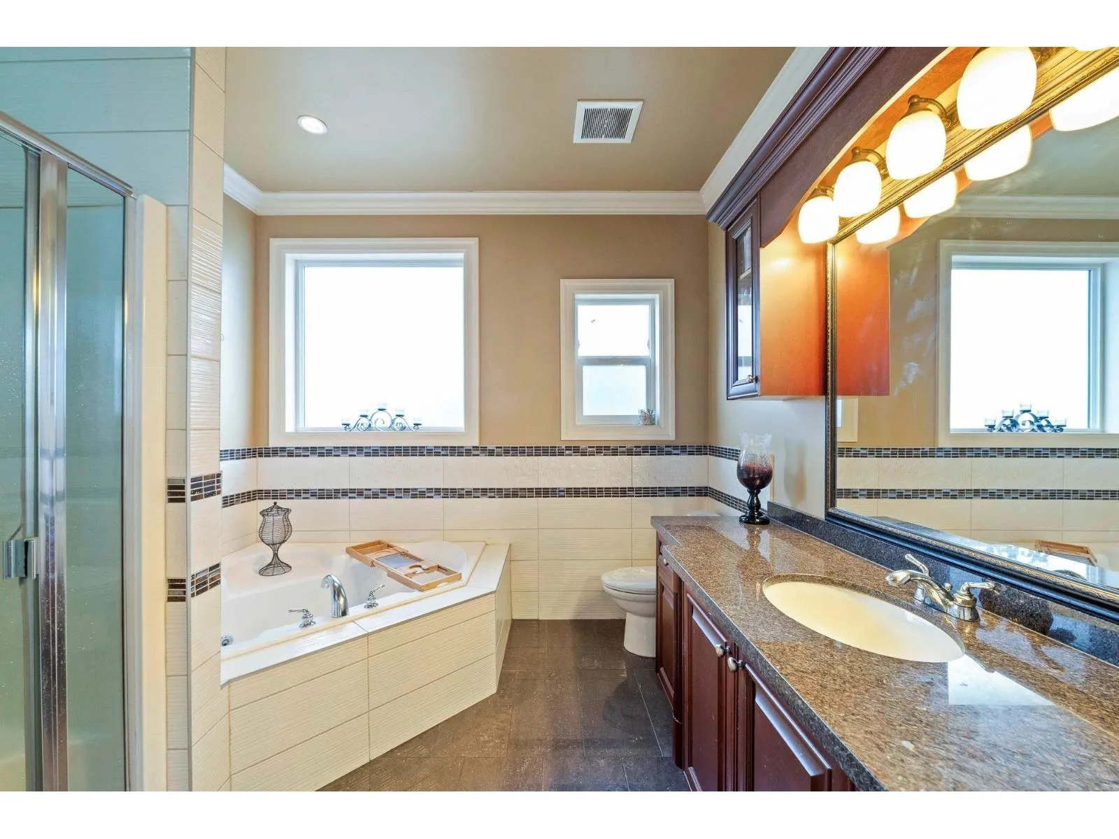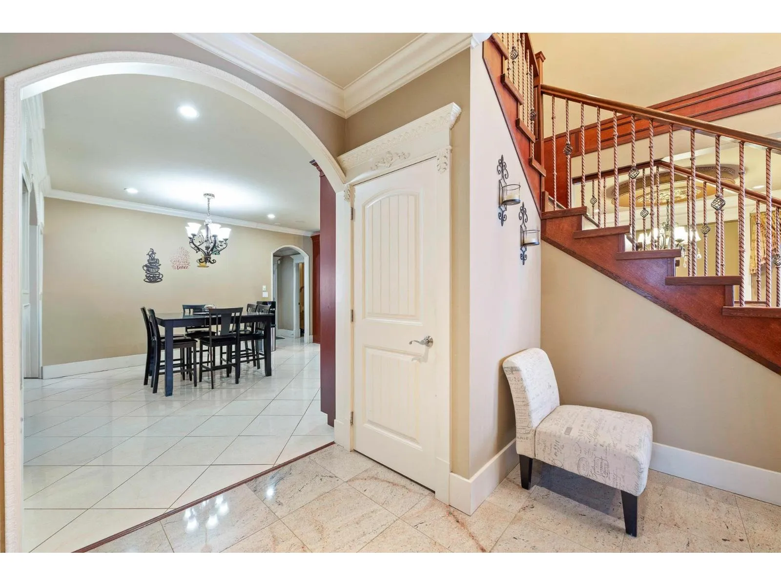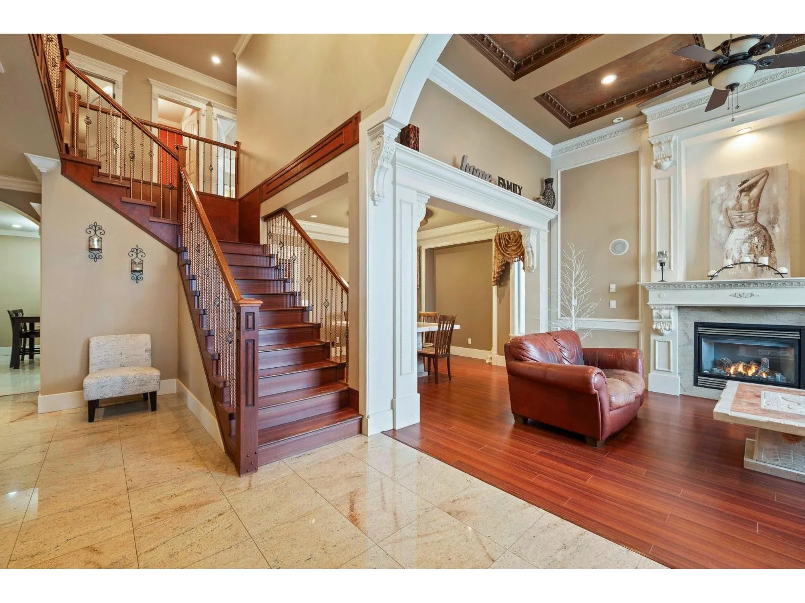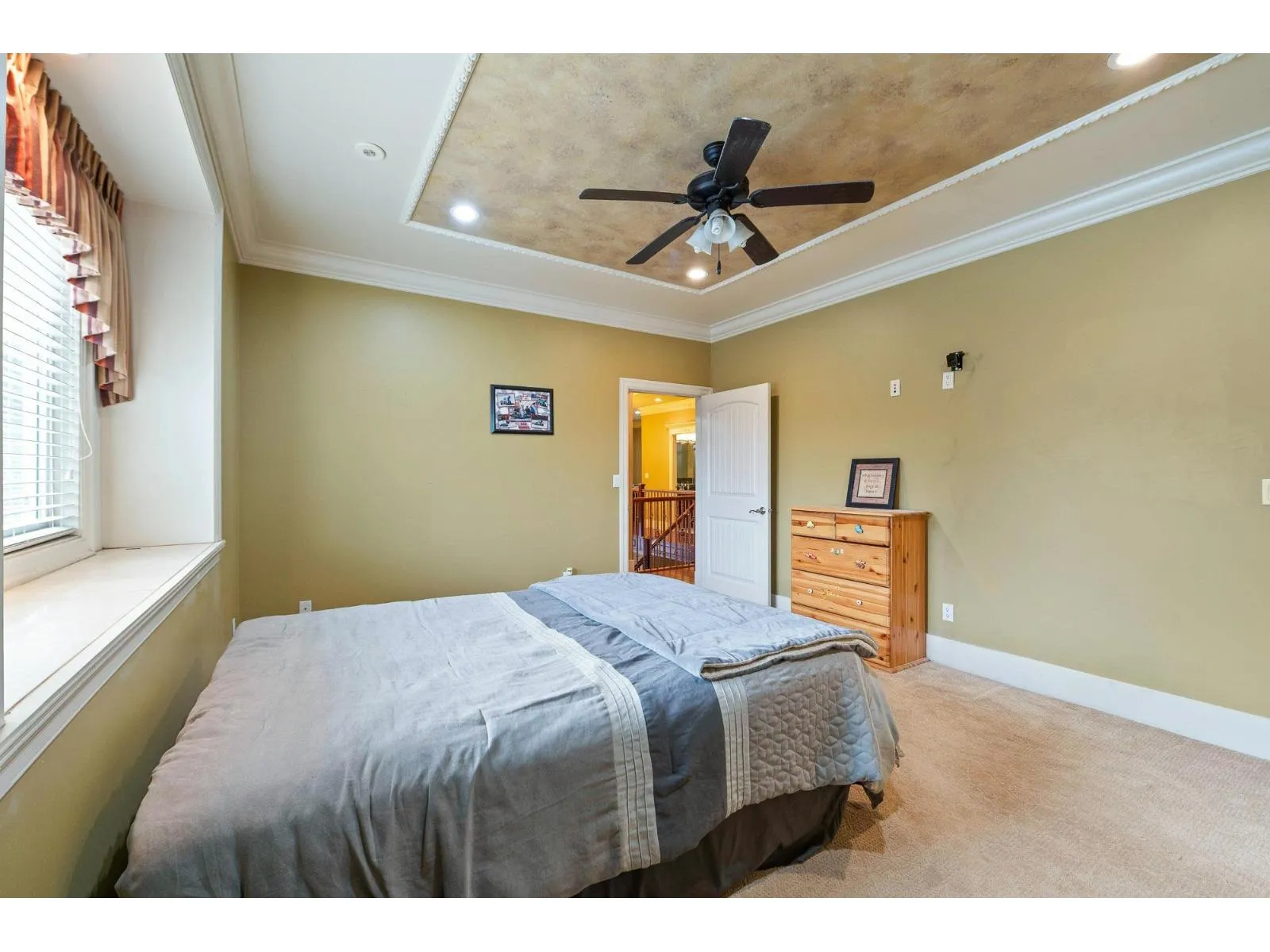 Don't miss this opportunity to own a beautiful 2-storey home offering 5 beds and 5 baths. The layout includes 2 spacious primary beds with w/i closets, plus a large bedrm on the main floor, ideal for guests/extended family. The home features high ceilings, crown moulding, & built-in speakers throughout, along with a dedicated office complete with custom built-in cabinetry. Additional highlights include a heat pump with A/C, a brand-new security system & thoughtful finishes throughout. Situated on a 1/4 lot, the property offers a serene creek & raised garden beds, perfect for outdoor enjoyment. Conveniently located on the Abbotsford-Aldergrove border, with Transit Road access and close proximity to the new Aldergrove Water Park and Arena. (id:27476)