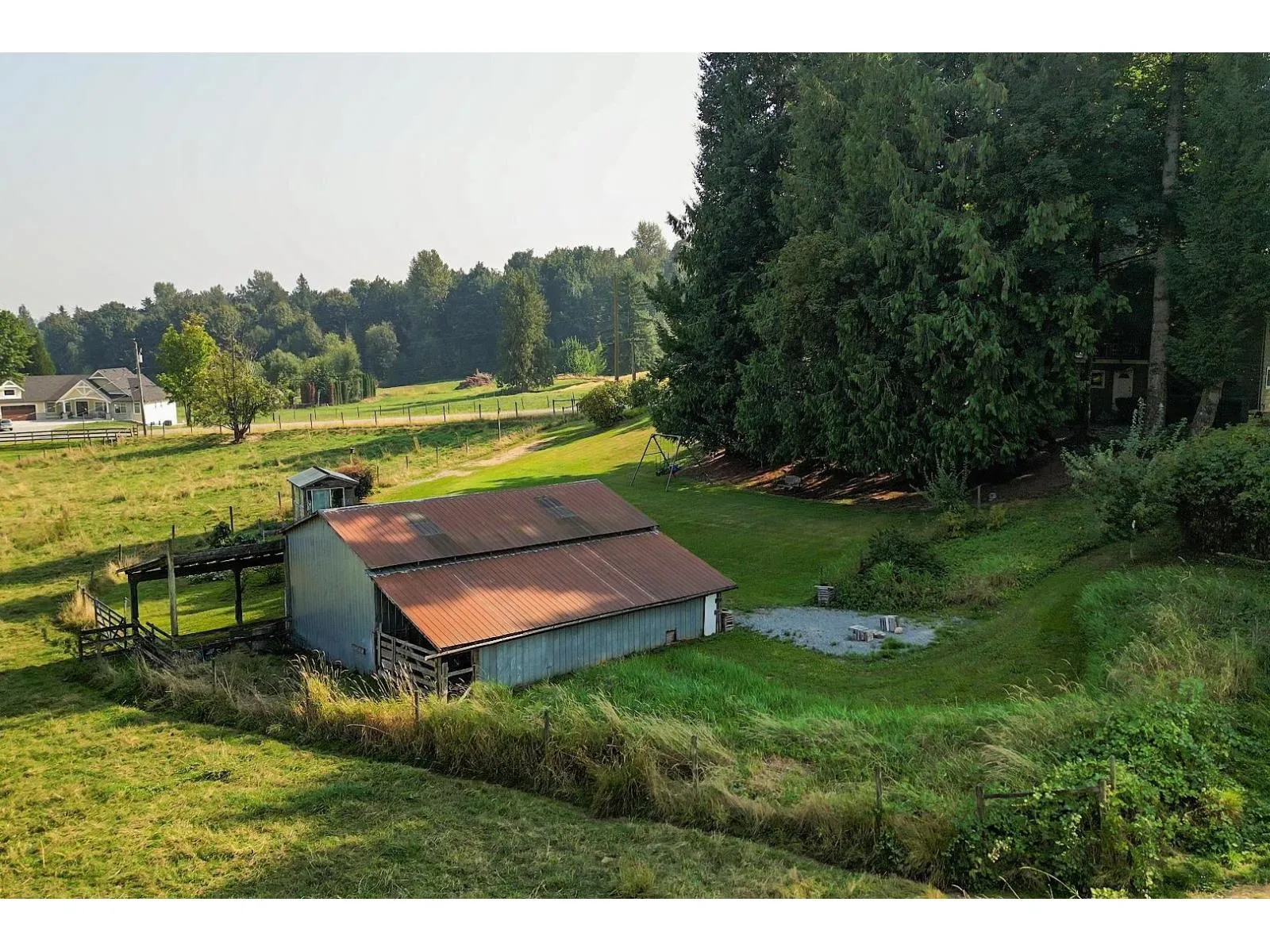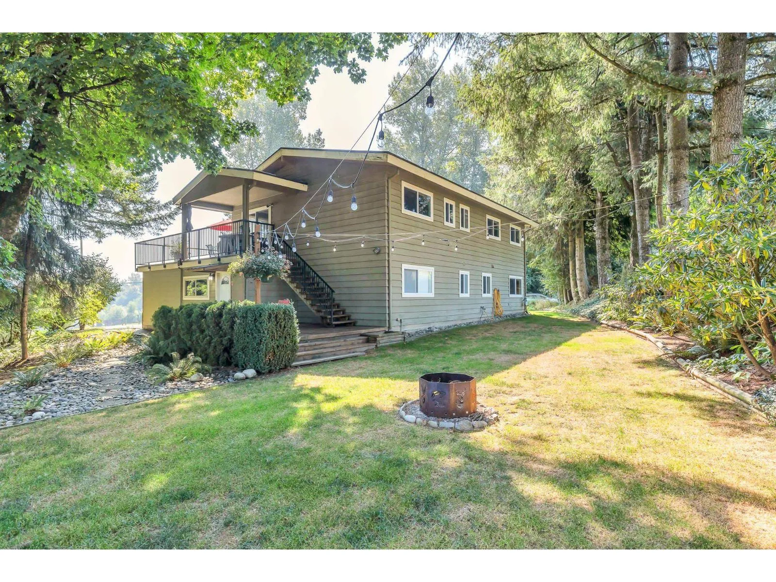 Fabulous 5- acre property on one of Bradner/Mt.Lehman's most desirable dead end streets. Just 5 minutes to Highstreet mall, this charming basement entry home features 4 bedrooms, 3 bathrooms, a spacious living room, large family room and an updated kitchen with gas range and stainless appliances. Enjoy stunning views from the wrap around deck with access from the kitchen. Cozy private deck at side yard with great firepit to enjoy on those fall evenings. Extras include a barn with twin lean-to shelters, detached storage shed and hobby greenhouse. A rare opportunity to live, invest or build your dream home on this prime location. Hay fields are fenced and could be a great home for livestock or horses. (id:27476)