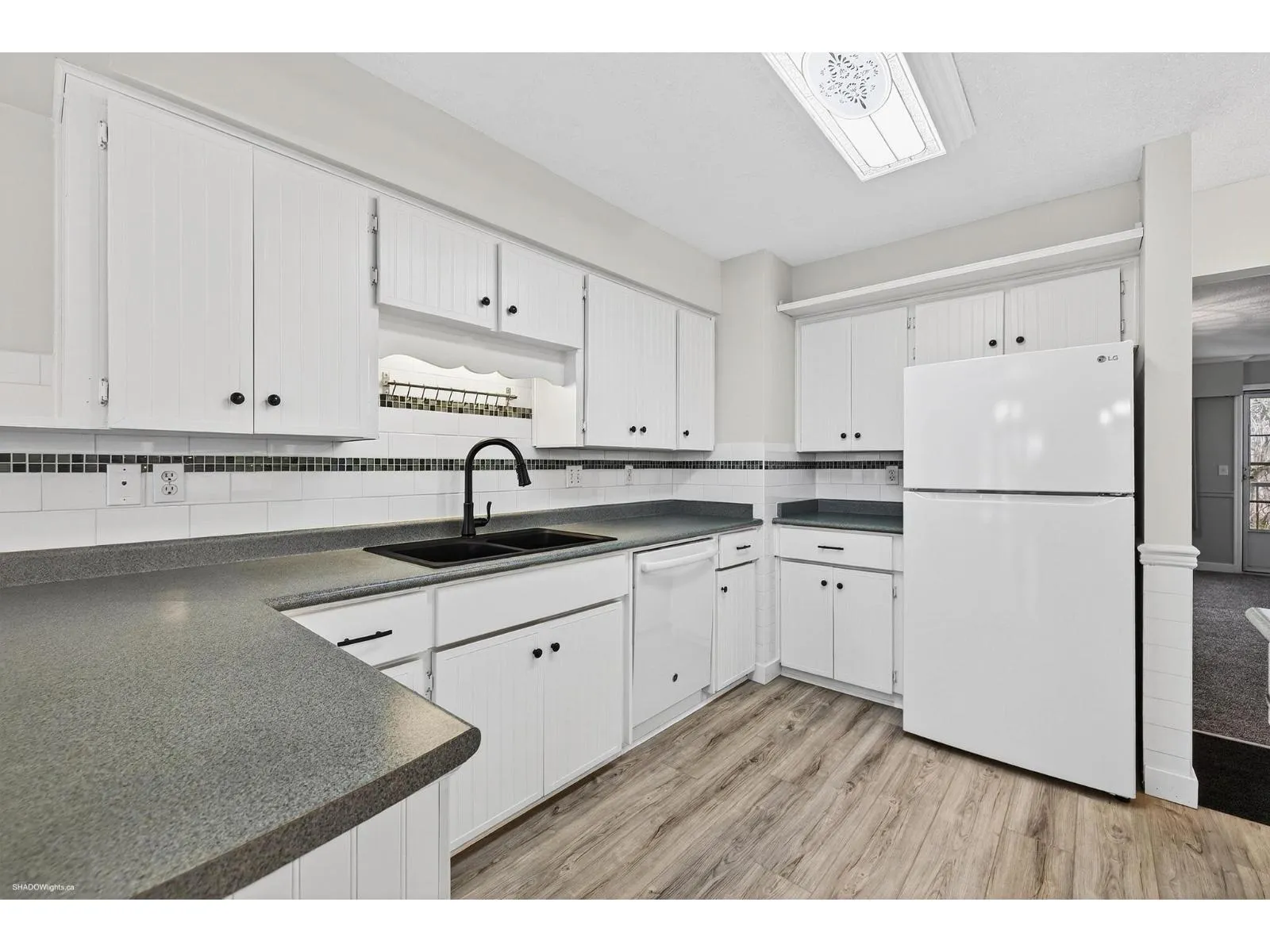 Spacious, bright, updated 2 bedroom upper END unit located in well managed Oakhurst Park. A quiet, well maintained 55+ community offering lots of green spaces, workshop, bike storage, guest & RV parking, a large clubhouse including library, pool table & shuffle board activities that can also be rented for private functions. Updates to the home include vinyl plank flooring, carpets, interior paint, window covering, updated bathroom with a walk in shower & a refreshed kitchen. Additionally, there's a full sized laundry, in-suite storage, A/C and east & west facing decks. Maintenance fee INCLUDES heat, electricity, water. Covered parking spot right out front of the unit located in a quiet location in the complex! (id:27476)