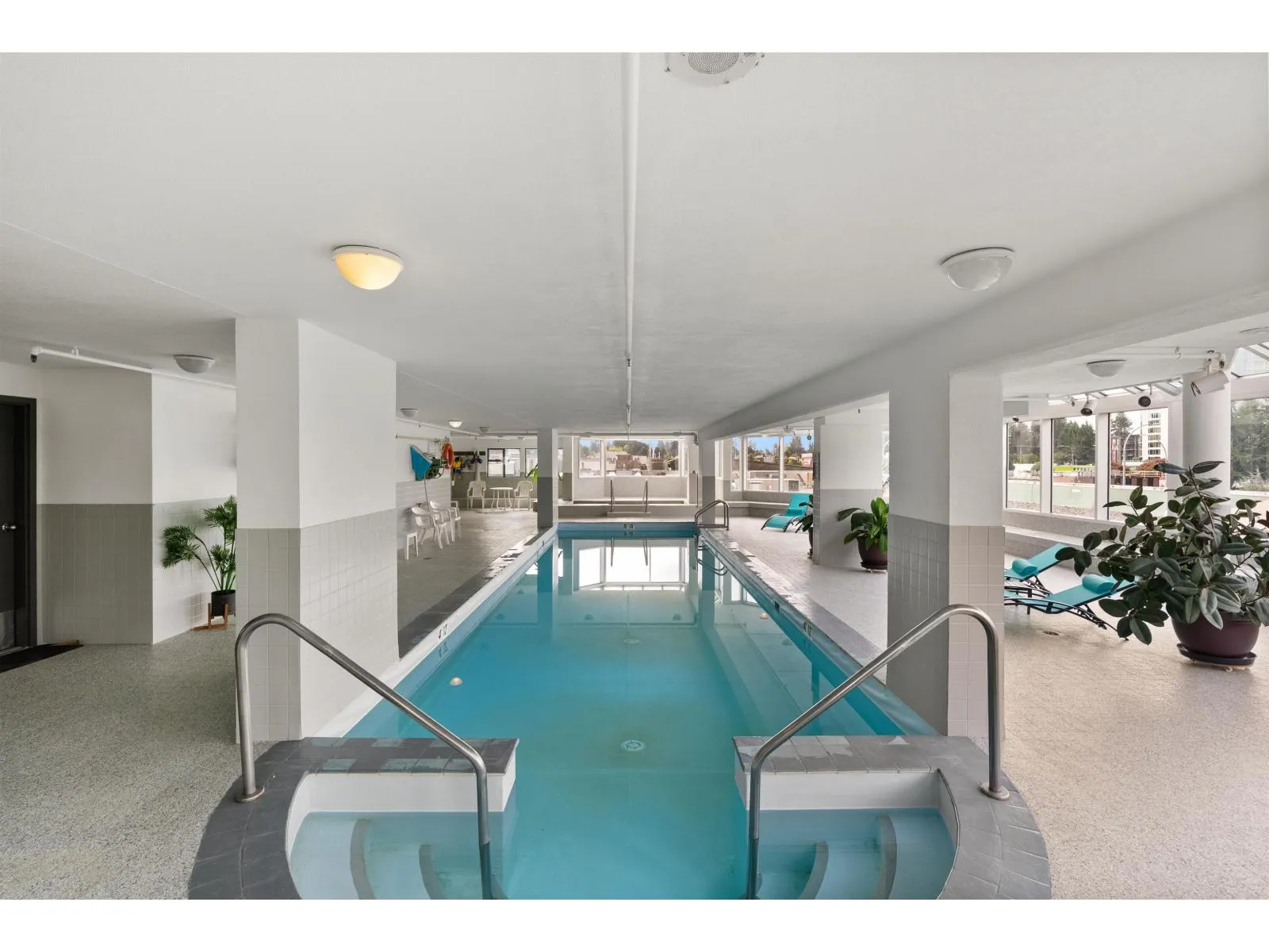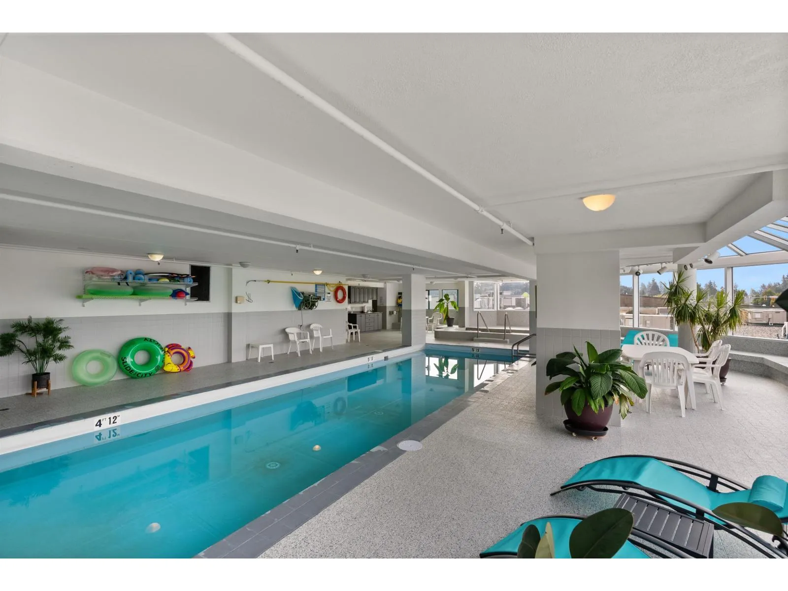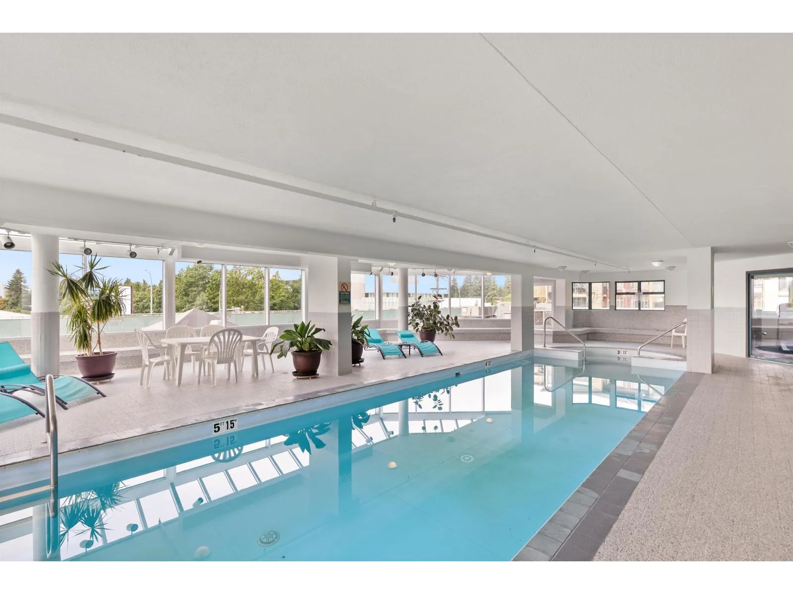 Welcome to Trethewey Tower on Simon, where uninhibited views of Mt. Baker and the North Shore Mountains set the stage. This Northeast corner unit offers two spacious bedrooms, two full bathrooms, and a fully enclosed solarium sundeck, Perfect for use all year round. Some updates are already in place-bring your ideas to make it your own! Enjoy resort-style amenities including an indoor pool, hot tub, sauna, tanning deck, fully equipped gym, craft and games rooms, library, lounge, workshop with tools, bike room, plus a storage locker. One covered parking space included. With more parking rentals potentially available. Quick possession available. The complex allows one cat, but no dogs are allowed. New built-in microwave. (id:27476)