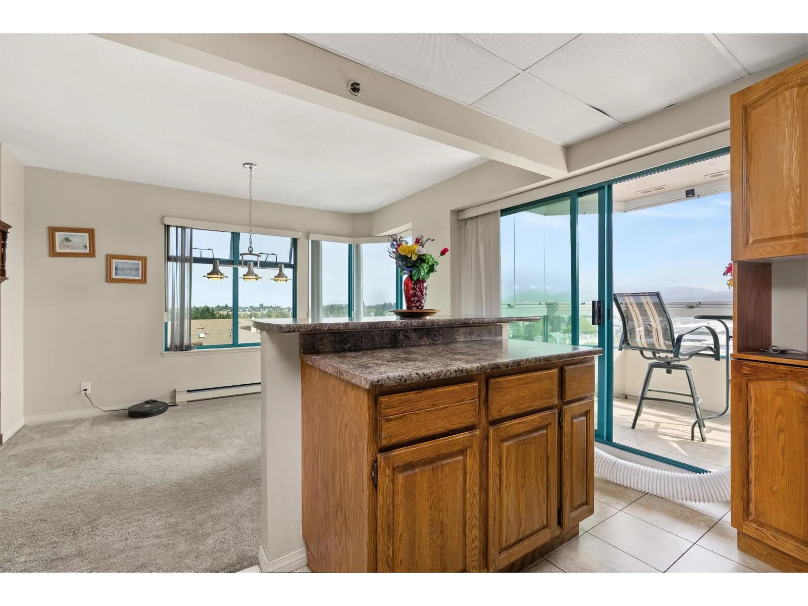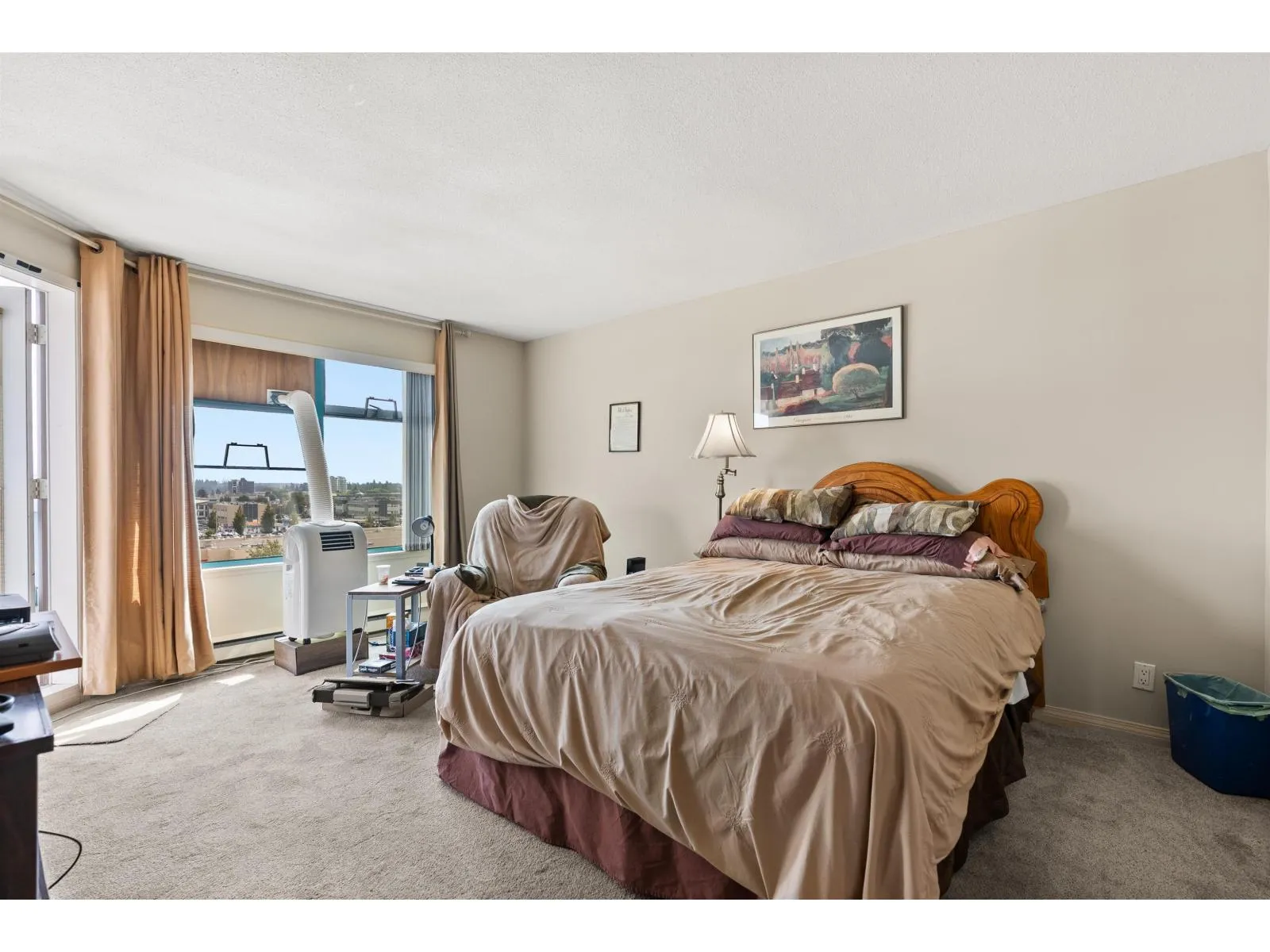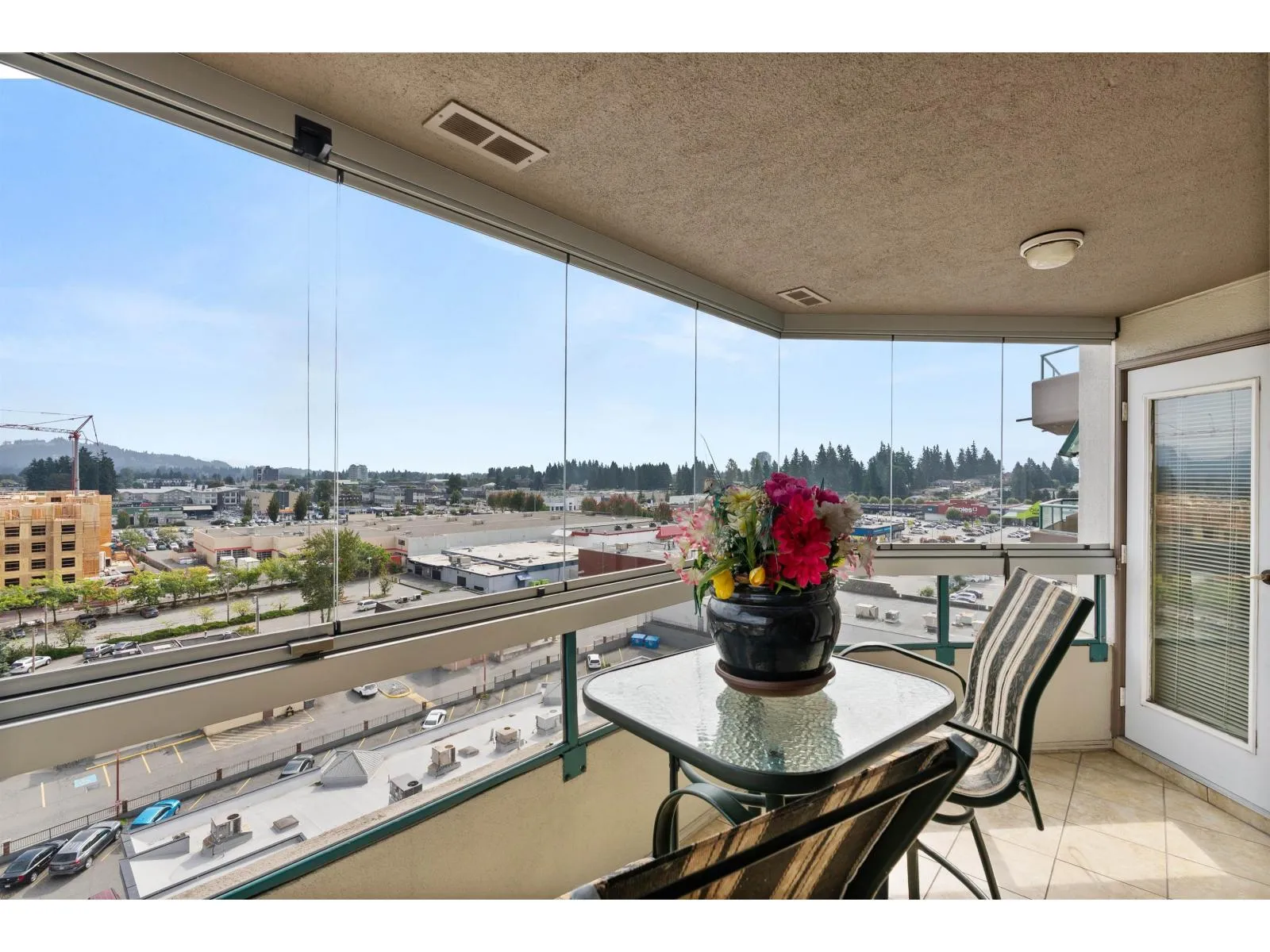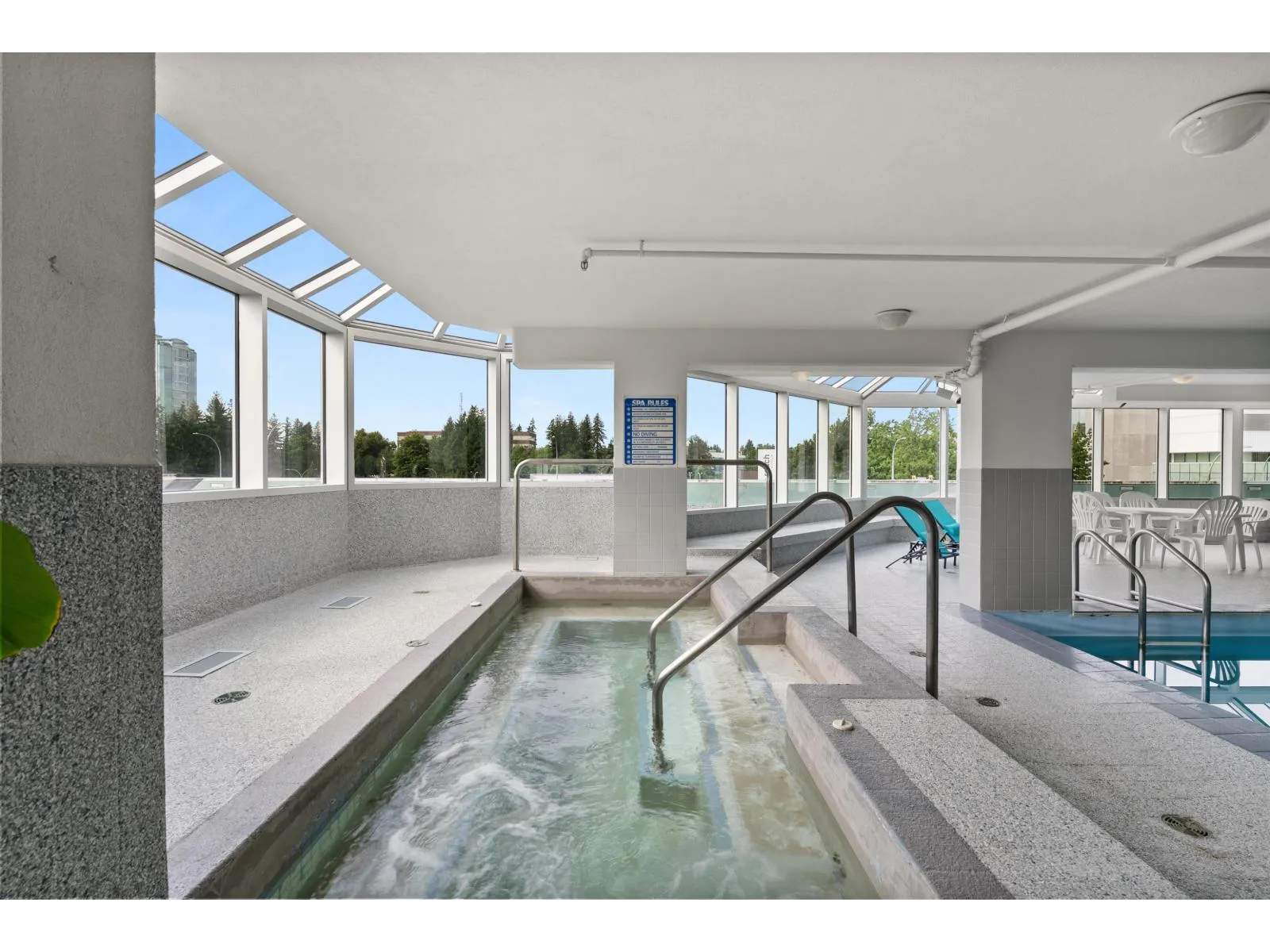 Welcome to Trethewey Tower on Simon, where uninhibited views of Mt. Baker and the North Shore Mountains set the stage. This Northeast corner unit offers two spacious bedrooms, two full bathrooms, and a fully enclosed solarium sundeck, Perfect for use all year round. Some updates are already in place-bring your ideas to make it your own! Enjoy resort-style amenities including an indoor pool, hot tub, sauna, tanning deck, fully equipped gym, craft and games rooms, library, lounge, workshop with tools, bike room, plus a storage locker. One covered parking space included. With more parking rentals potentially available. Quick possession available. The complex allows one cat, but no dogs are allowed. New built-in microwave. (id:27476)