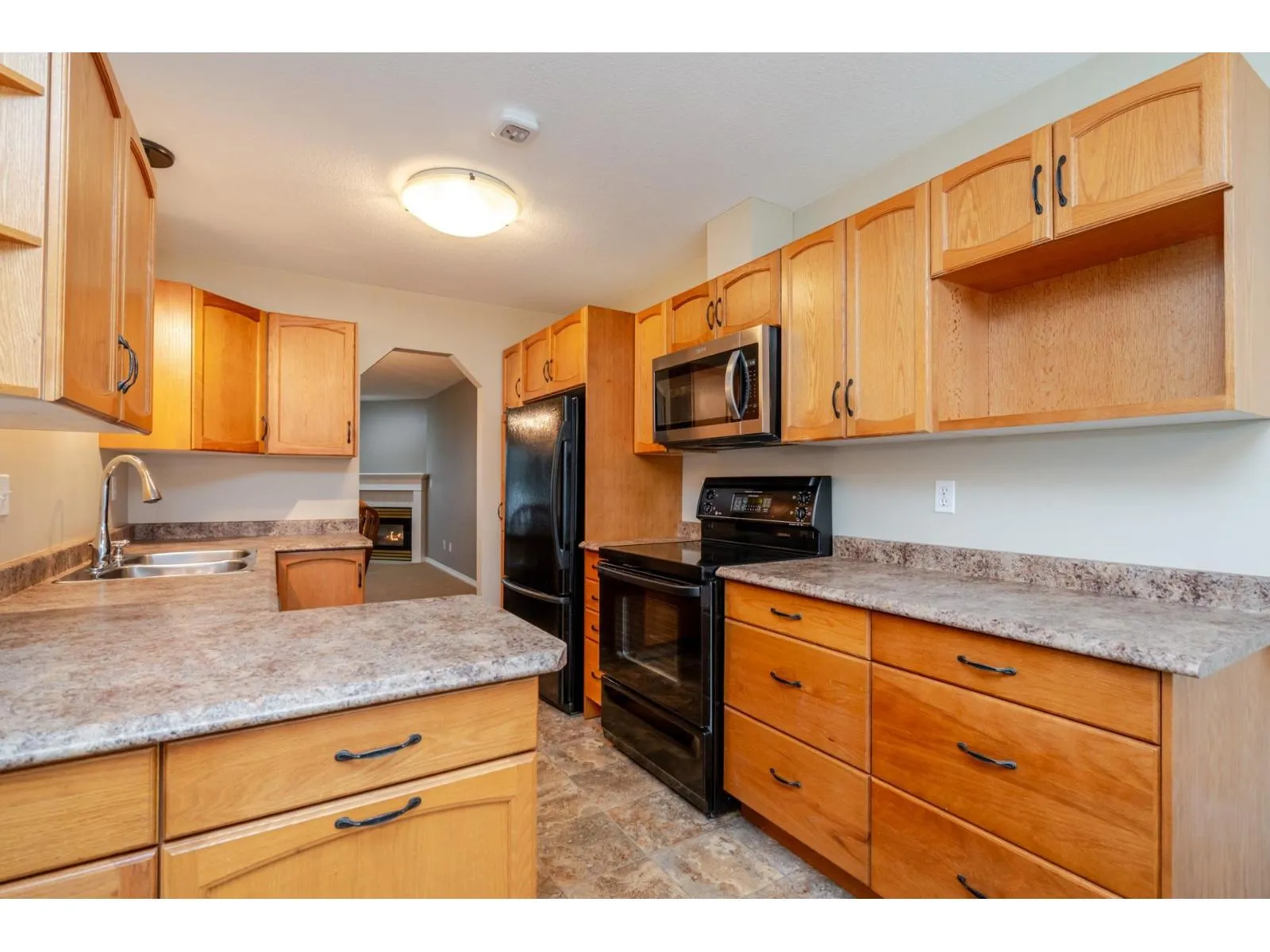 Sought after RANCHER with full WALK-OUT BASEMENT in secure gated Belmont Ridge. Great floorplan that gives you the space of a house while still enjoying the carefree lifestyle of a strata development. Kitchen has plenty of cabinets and drawers with both an adjacent breakfast nook and dining room. Huge rec room below with a flex room for an office or crafts. Windows replaced in 2020. Rare connecting door from upstairs front bdrm into garage without needing to go outside. Best & private location in complex with large grassy area beyond the patio. Nice clubhouse with kitchen facilities and guest suites. Open to all ages and 1 dog or cat. Close to shopping, parks and EZ access to Hwy 1. Available for immediate occupancy. (id:27476)