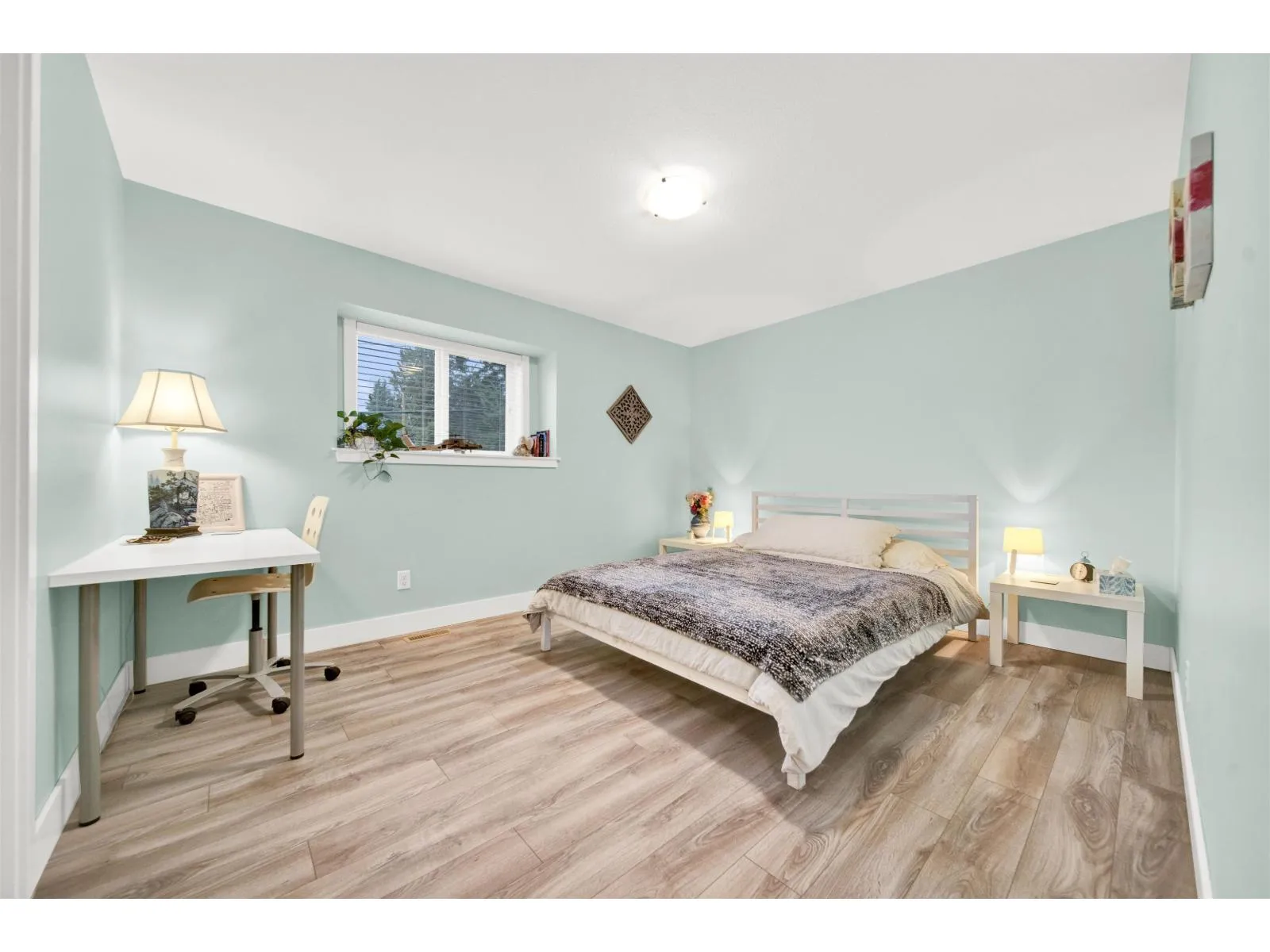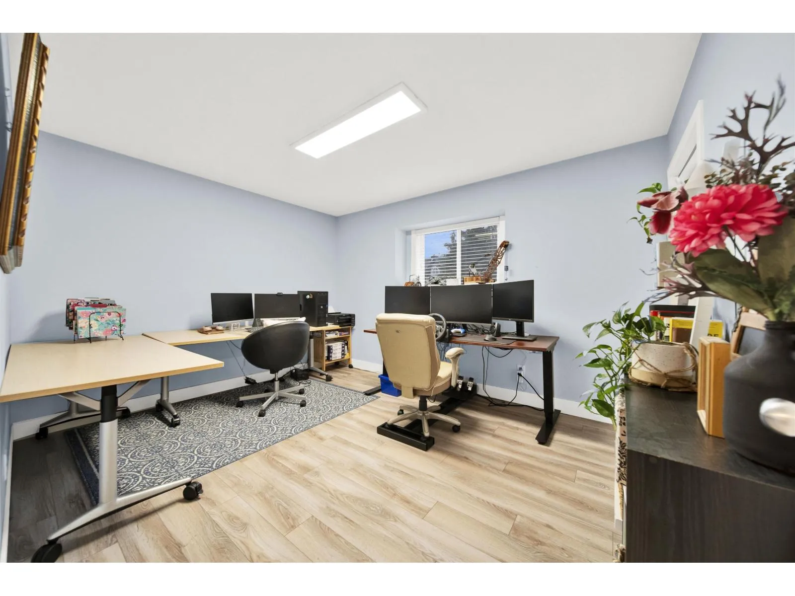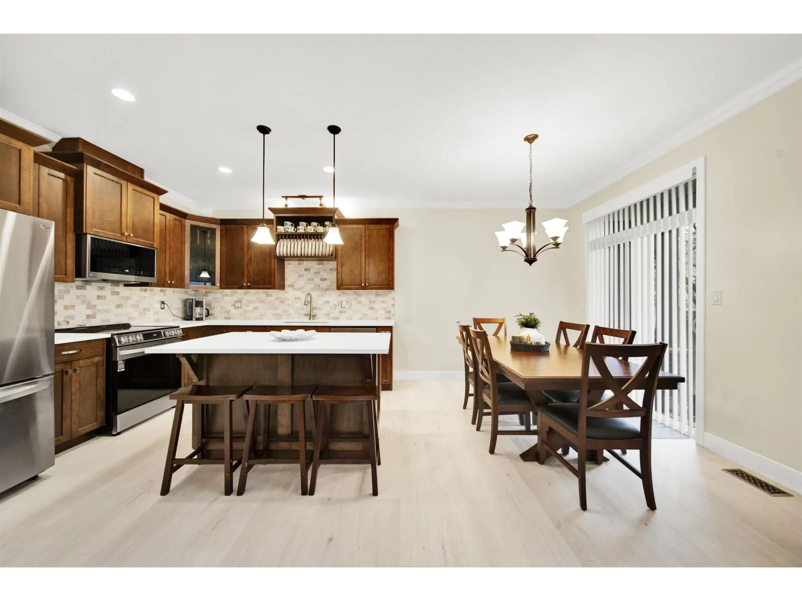 Hate the "townhome feel"? This END-UNIT delivers detached-style living: 4 brdm, 4 bath, 2,411 sq ft, double side-by-side garage & central A/C. Refreshed where it matters: quartz kitchen with marble-tile backsplash, matching quartz baths, new stove, washer/dryer & hot water tank, plus new laminate in the living rm + bsmt. Curl up by the cozy gas fireplace, then step out to your private fenced yard + patio. Primary brdm feels like a retreat with WIC, full ensuite & its own covered deck. Big secondary brdms too! Finished flex rm down can be a huge 4th brdm option (no closet). Location is the cheat code: 5 mins to rec centre, Save-On & Walmart, 10 to Costco + US border, and all school levels under 5 mins. Set in a small boutique complex where neighbours become your extended family & friends. Pet-friendly (dogs & cats). (id:27476)