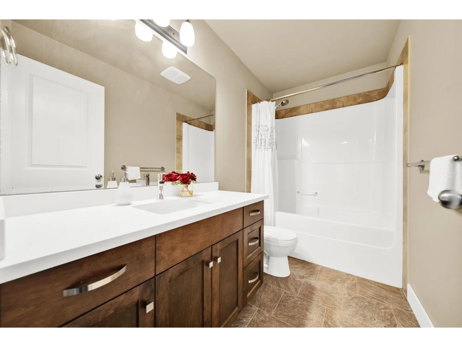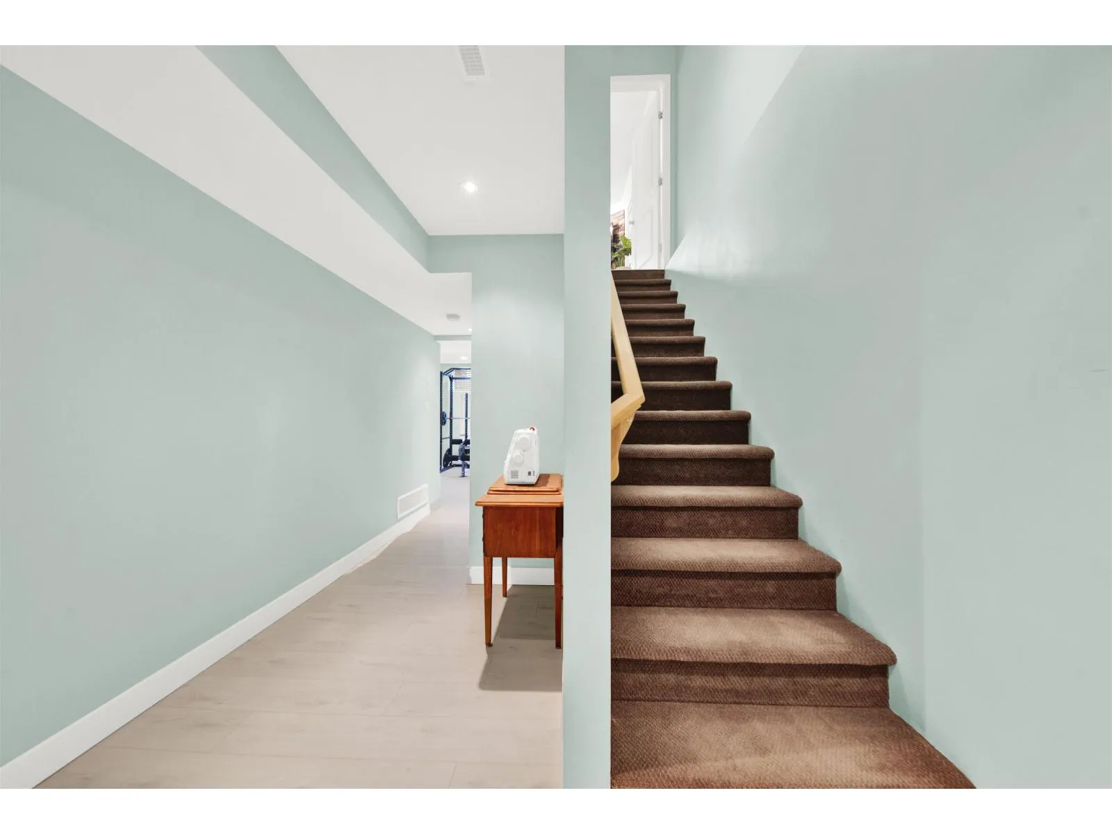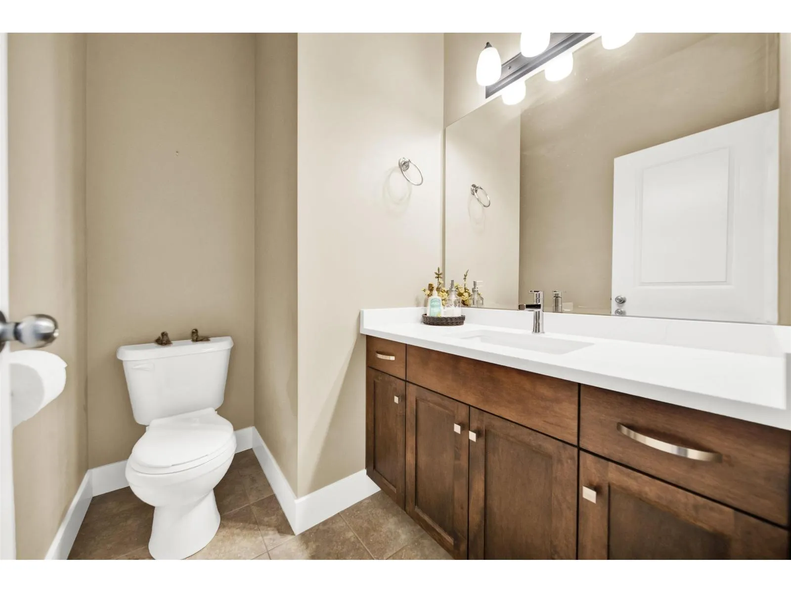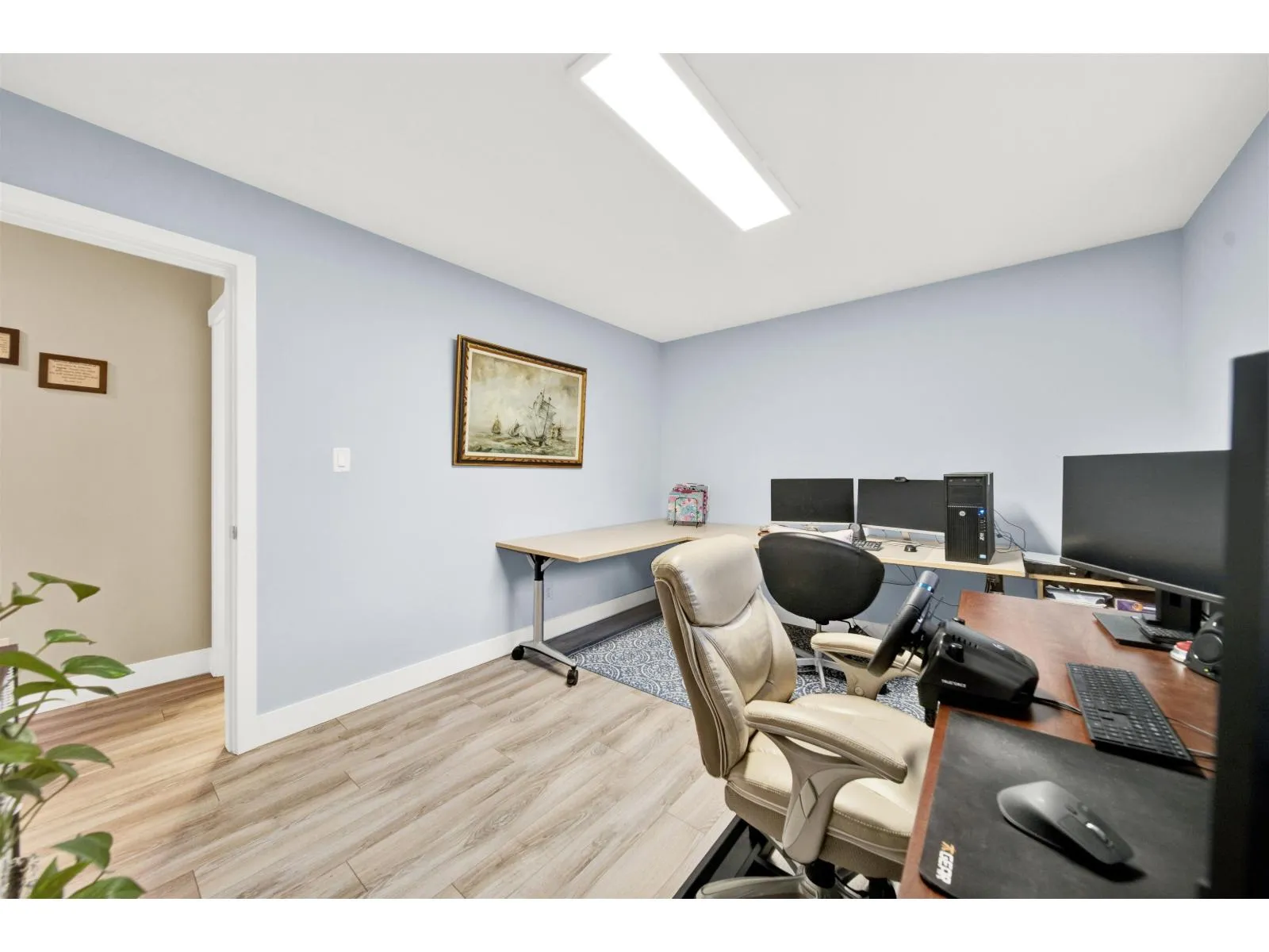 Hate the "townhome feel"? This END-UNIT delivers detached-style living: 4 brdm, 4 bath, 2,411 sq ft, double side-by-side garage & central A/C. Refreshed where it matters: quartz kitchen with marble-tile backsplash, matching quartz baths, new stove, washer/dryer & hot water tank, plus new laminate in the living rm + bsmt. Curl up by the cozy gas fireplace, then step out to your private fenced yard + patio. Primary brdm feels like a retreat with WIC, full ensuite & its own covered deck. Big secondary brdms too! Finished flex rm down can be a huge 4th brdm option (no closet). Location is the cheat code: 5 mins to rec centre, Save-On & Walmart, 10 to Costco + US border, and all school levels under 5 mins. Set in a small boutique complex where neighbours become your extended family & friends. Pet-friendly (dogs & cats). (id:27476)