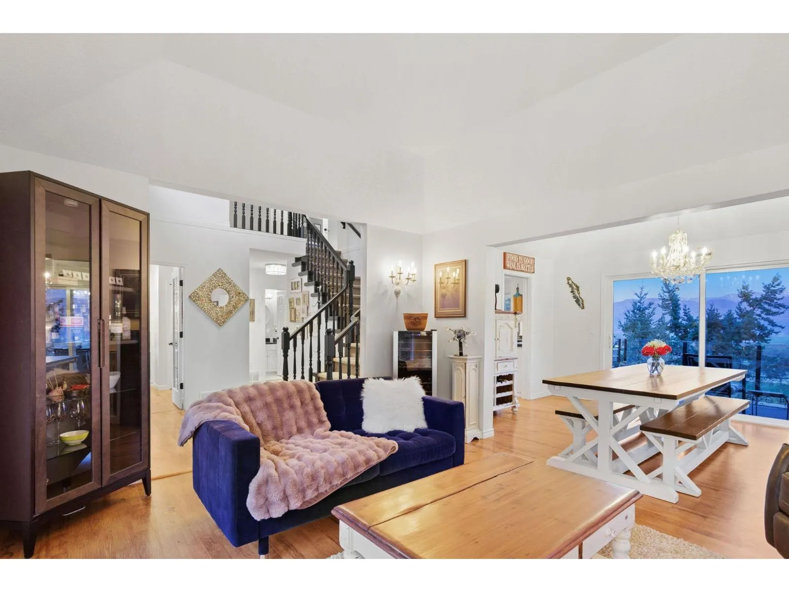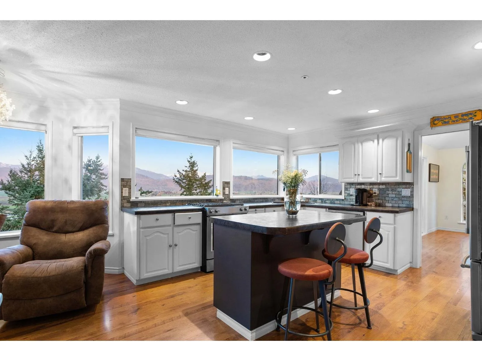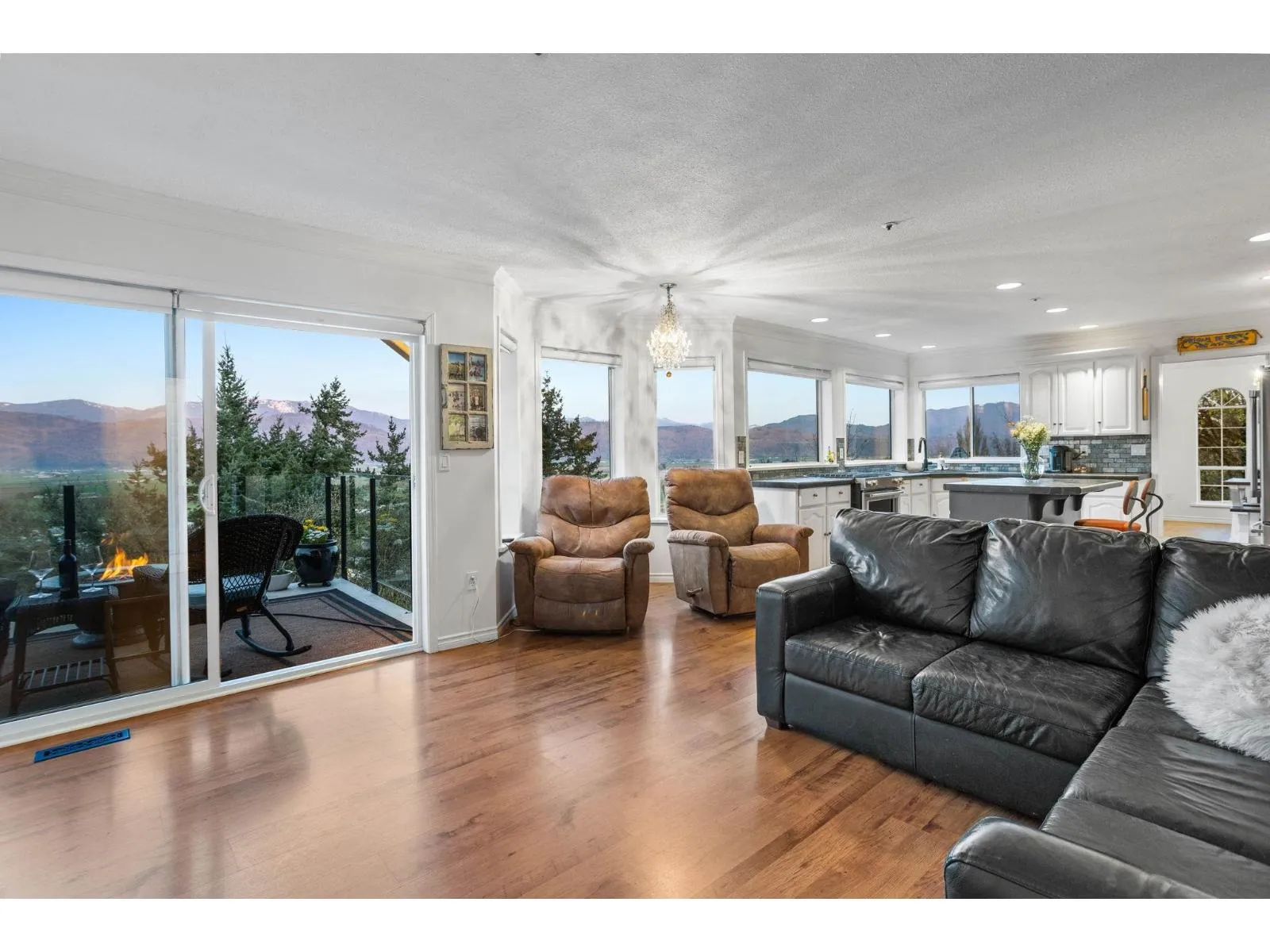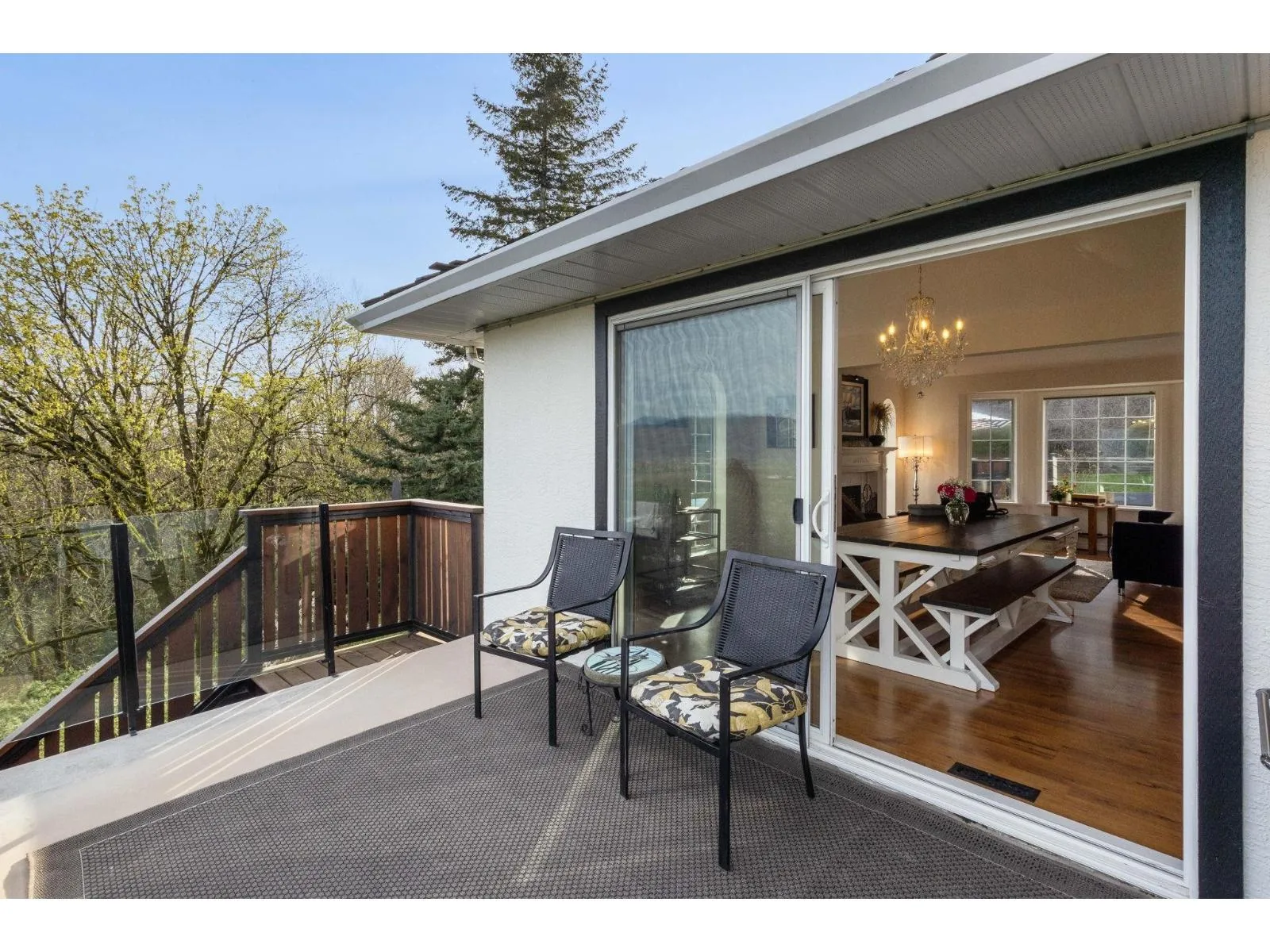 An exceptional estate on a quiet private road in East Abbotsford. Set on over 39,000 SqF, this 4 bed + Den, 3.5 bath home offers panoramic views, a nearly new heated 24' custom steel pool, & expansive outdoor living with multiple patios and decks. Inside, you'll find over 3,400 SqF of thoughtfully designed space, including a bright open main floor with vaulted ceilings, a large kitchen, formal living/dining rooms, & a cozy family room with direct balcony access. Upstairs, the primary suite boasts its own balcony & a luxurious 5 piece ensuite. The lower level features a media room, rec space, & bedroom - with suite potential already having separate entry - ideal for extended family or guests. A rare offering that combines privacy, space, & stunning views in the prime neighbourhood. (id:27476)