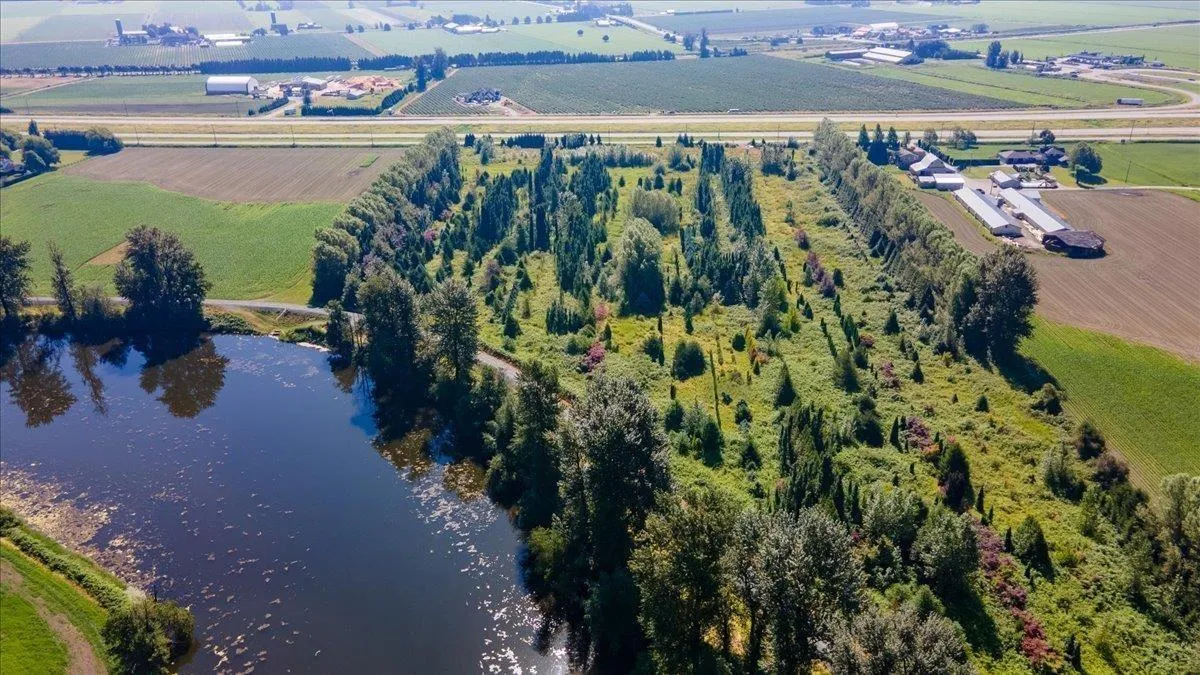 Located east of Abbotsford, this 21.56-acre parcel of prime agricultural land offers exceptional highway exposure and accessibility, making it a strong long-term investment opportunity. The property backs onto a scenic walking trail along the Sumas River, enhancing both its natural appeal and future value. Ideally positioned just minutes from Highway l , Costco, the U.S. border, and the University of the Fraser Valley, this land benefits from proximity to key amenities and transportation corridors. Offering versatility for agricultural use or a custom acreage estate home, this property presents excellent potential for capital appreciation and strategic land holding. (id:27476)