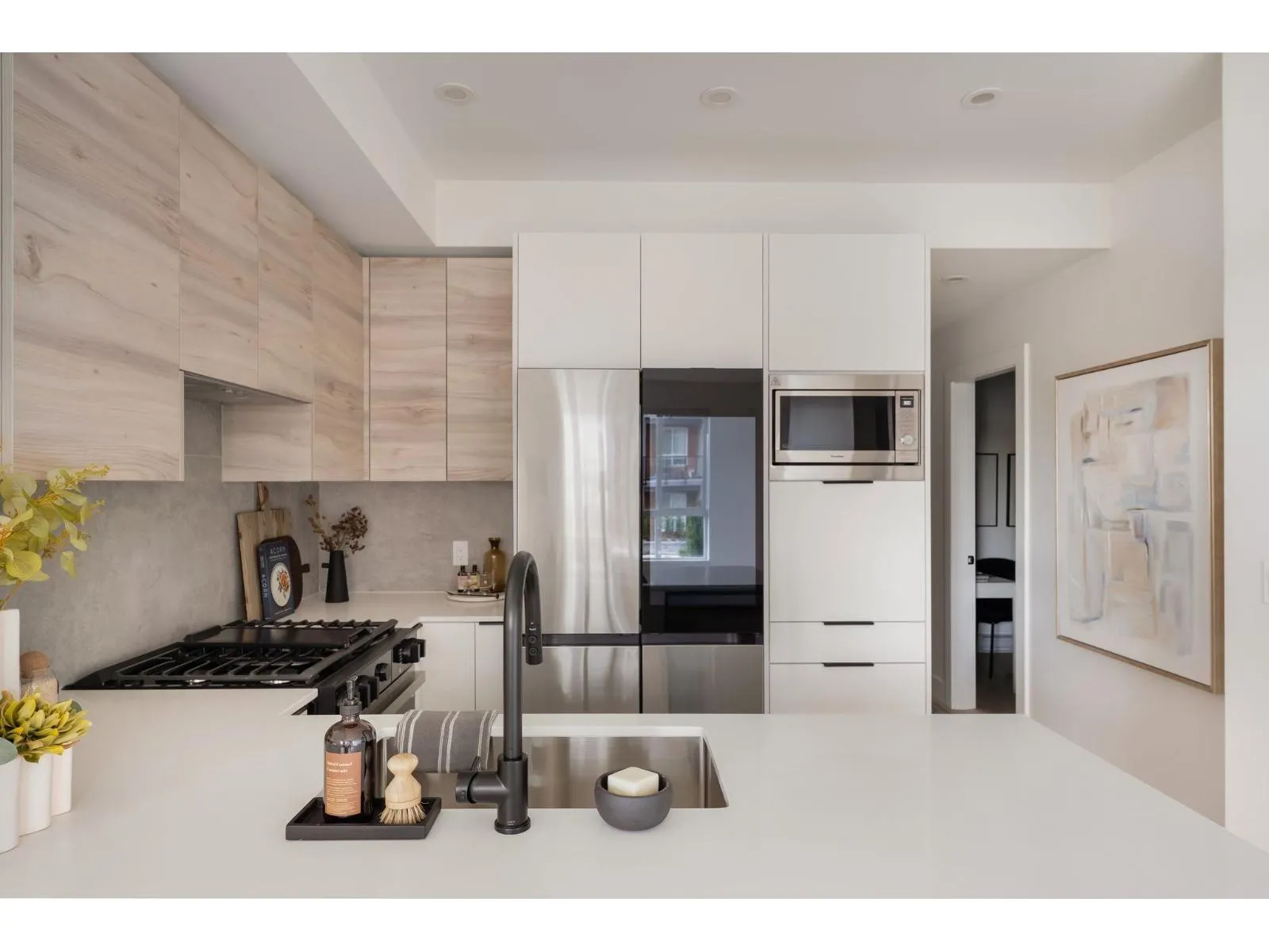 Beautifully designed Jr 2 bedroom, 2 bathroom ground-level home offers modern living with exceptional convenience. Featuring a bright, open layout with large windows and 9' ceilings, the space feels airy and inviting. The contemporary kitchen includes quartz countertops, stainless steel appliances, soft-close cabinetry, and an oversized island,perfect for everyday living and entertaining. Enjoy seamless indoor-outdoor living with your private ground-level patio, ideal for morning coffee, pets, or hosting. Located just steps from Highstreet Mall, transit, and Highway 1 access, everything you need is right at your doorstep. Close to all levels of schools, including UFV, minutes from the Abbotsford International Airport.Open Sat/Sun 12-5 PM (id:27476)