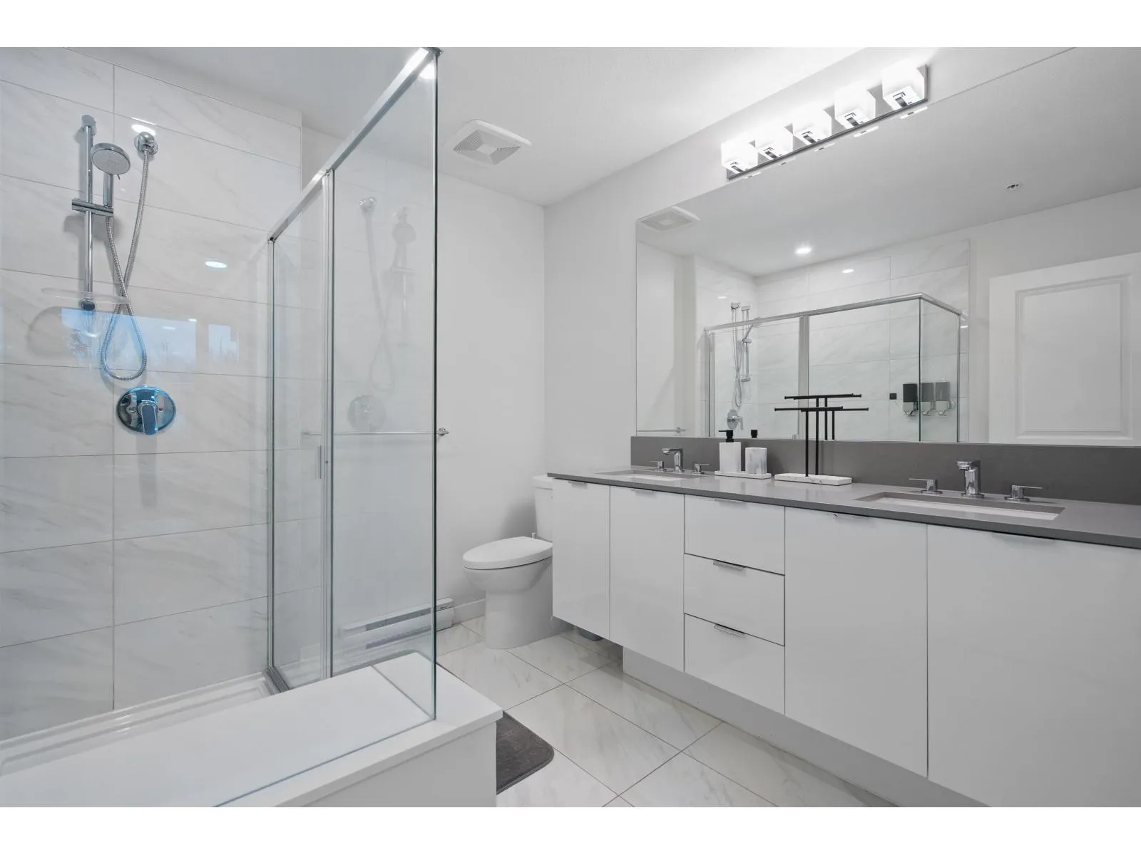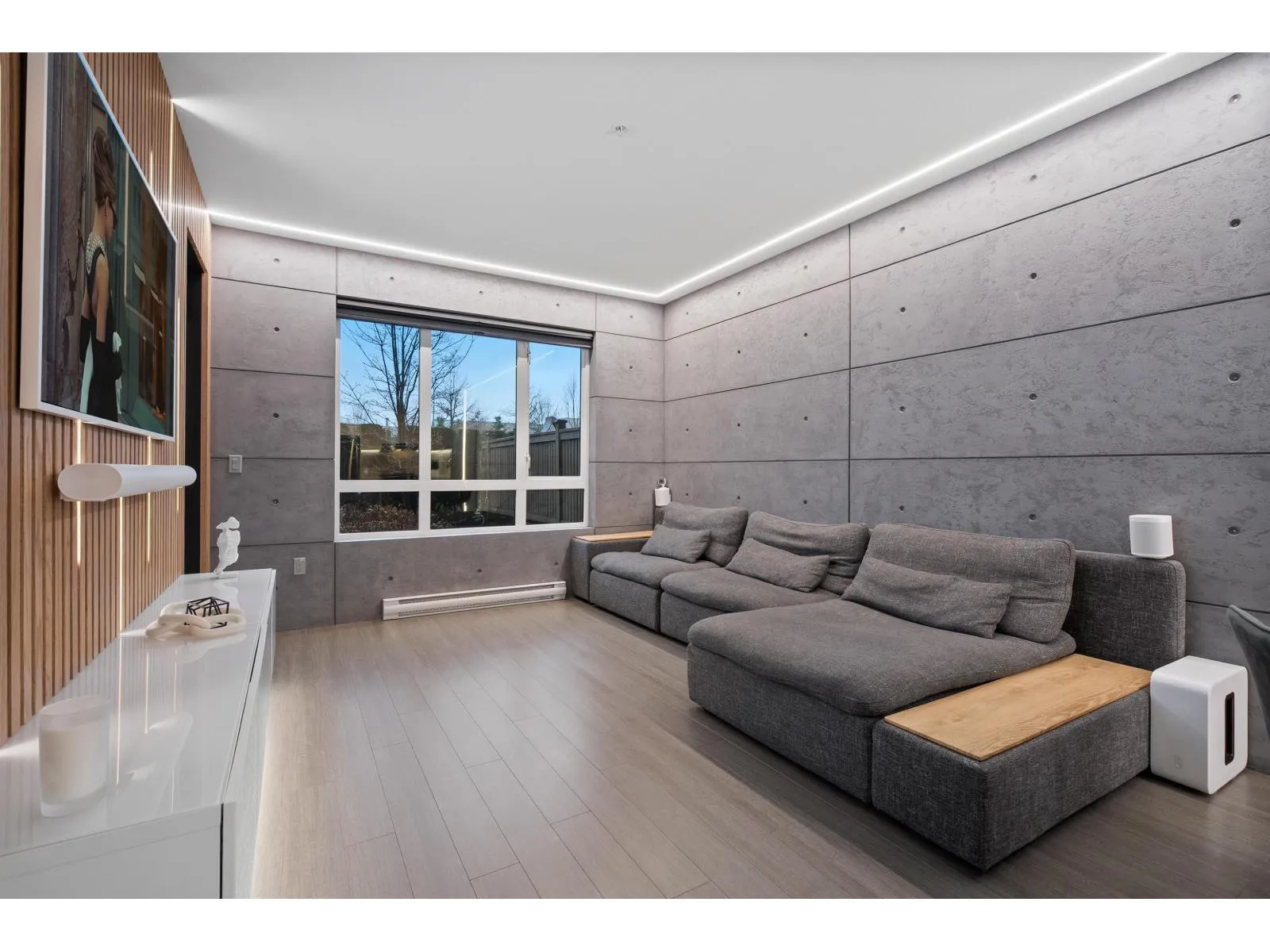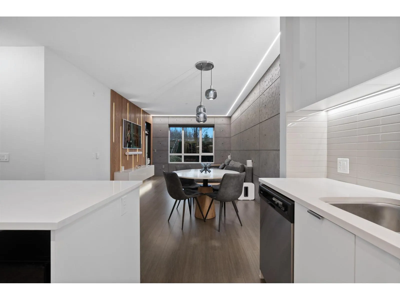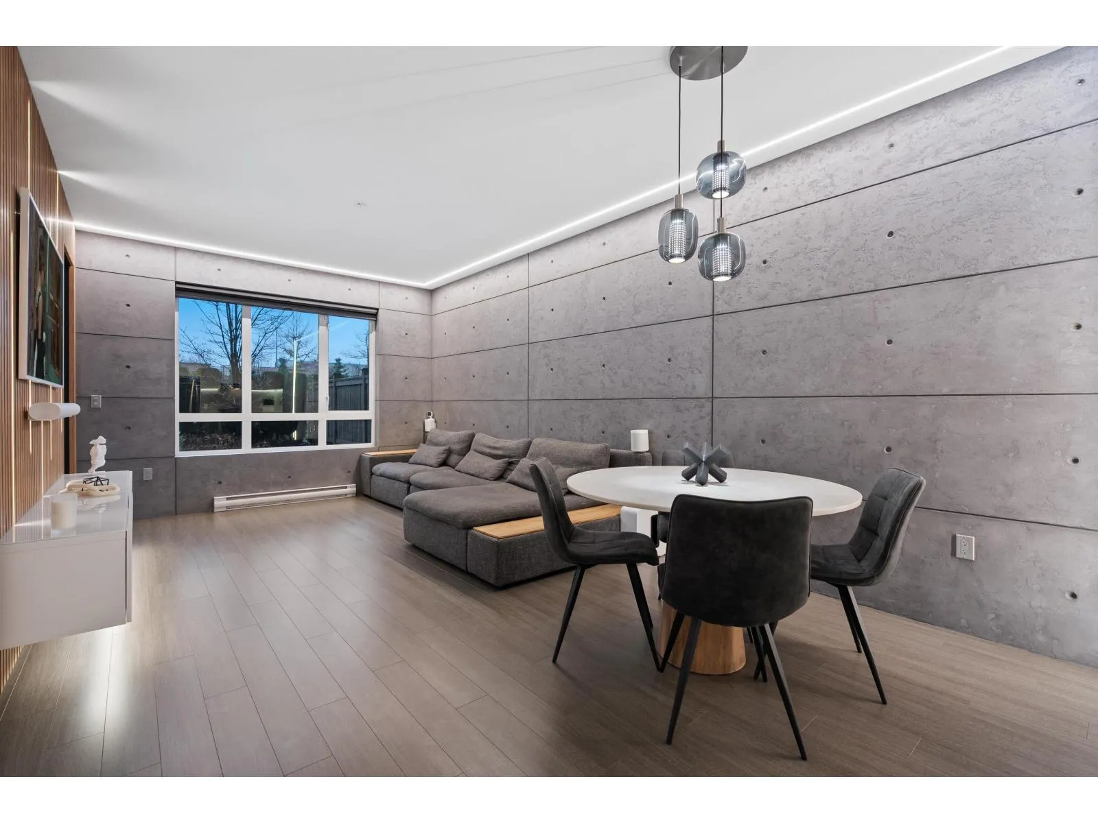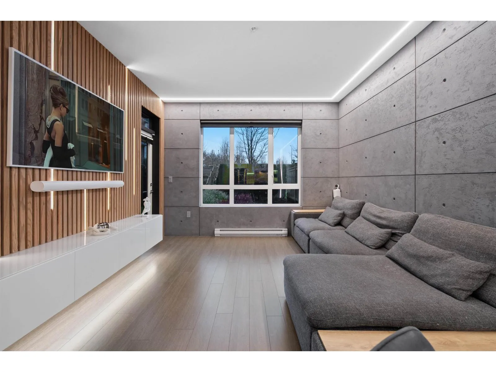 One of the finest condos Abbotsford has to offer. 2 bed 2 bath. This modern & unique ground floor unit has been extensively upgraded & finished to a level worthy of an architectural magazine feature. Showcasing spectacular details including a custom wood-slat living room feature wall, microcement accents, LED lighting throughout the living & kitchen areas, premium blinds, sleek wall mounted cabinetry and more. The private, south facing patio is perfect for summer entertaining and seamless indoor-outdoor living. Located in Elmstone by Polygon, built in 2021, a community renowned for quality construction & thoughtful design. Residents enjoy Club West's Resort Style amenities: outdoor pool, hot tub, party room, fitness centre, guest suite, theatre, hockey room etc. Open house Sat & Sun, 2-4m (id:27476)