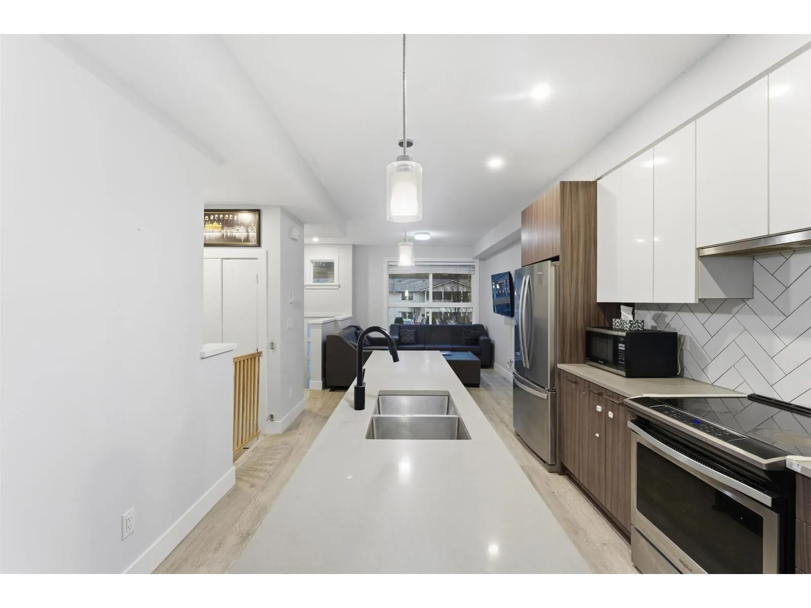 ** Best Value in Abbotsford ** Well - Priced rare find near Mill Lake . This well-kept modern rooftop townhouse features 2 bedrooms and 2 bathrooms with a bright open-concept layout, quartz countertops, a large island, stainless steel appliances, and air conditioning. The rare, generously sized private rooftop patio is perfect for entertaining or relaxing with views toward the lake. Includes garage and carport, ample storage, and a highly walkable setting close to Seven Oaks, schools, parks, and transit-an ideal opportunity for first-time buyers, professionals, or downsizers seeking low-maintenance living. Don't miss this great deal. (id:27476)