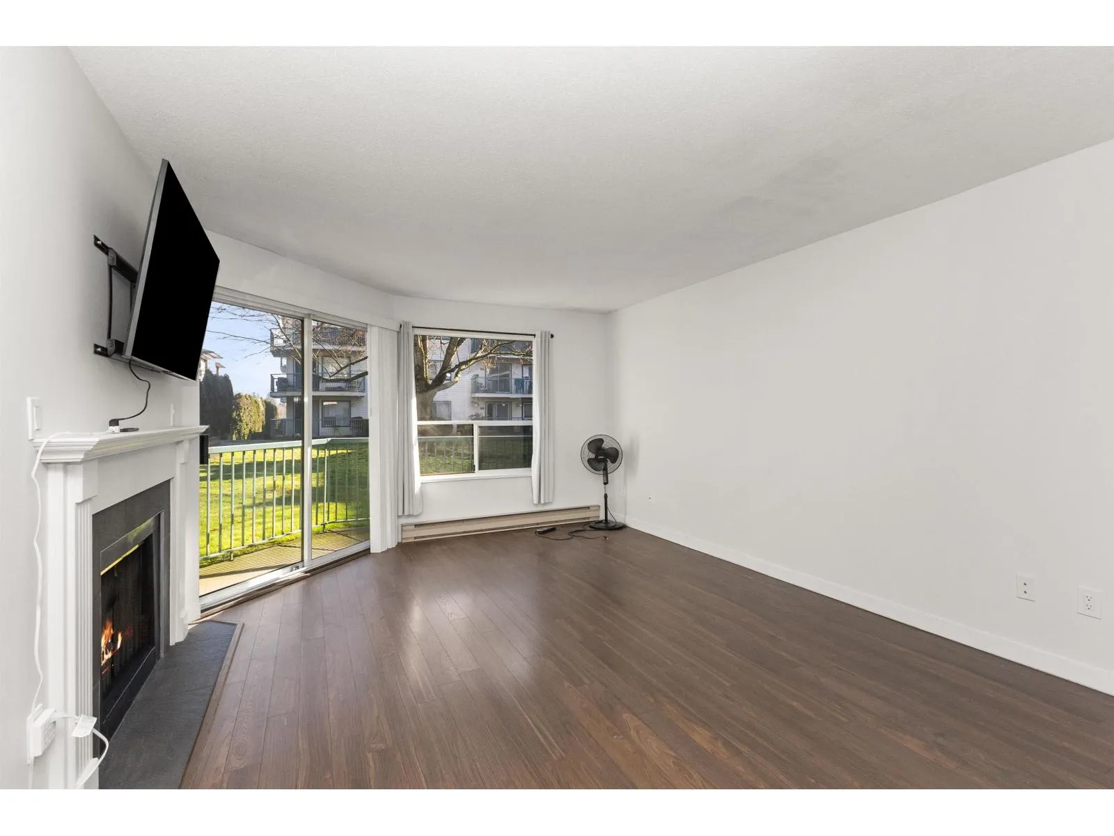 Immaculately updated and shows like new. Freshly painted, modern laminate flooring, and bright white kitchen cabinets make this move-in-ready. 2-bedrooms, 1-bathroom, ground-floor yard. A unique corner layout offers a spacious kitchen open to the eating area, a large living room with gas fireplace, and patio doors leading to a huge level backyard. Under ground parking. Well-maintained, professionally managed building. Family- and pet-friendly, located on a cul-de-sac. Walk to the university, restaurants, sports facilities, and an easy freeway access. A fantastic place to call home or great rental opportunity for the university. Central location. (id:27476)