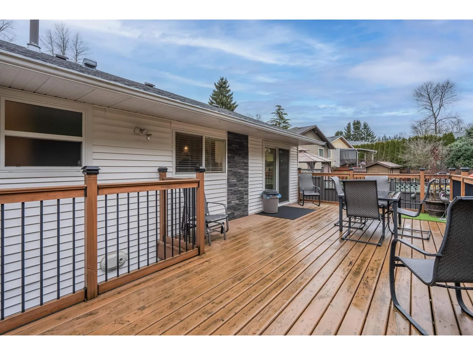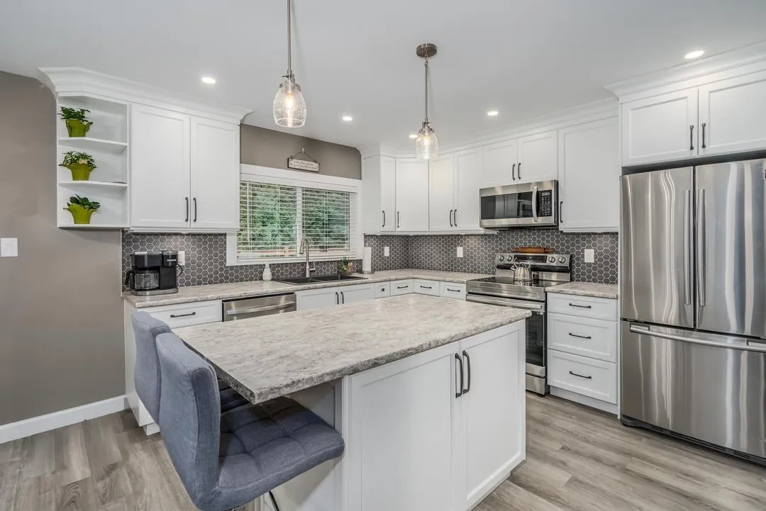 Beautifully renovated 5 bed, 3 bath rancher with basement offering 2,391 sq ft on a landscaped, fully fenced corner lot in a desirable family-friendly neighbourhood. Updated kitchen, renovated bathrooms, new flooring, and fresh paint throughout. Spacious deck overlooks large private yard-ideal for entertaining and outdoor living. Basement includes separate entrance and second kitchen, perfect for extended family or potential rental. Walking distance to Sandy Hill Elementary, Clayburn Middle, Robert Bateman Secondary & Abbotsford Christian Schools. Coach house potential (subject to City approval). Move-in ready. (id:27476)