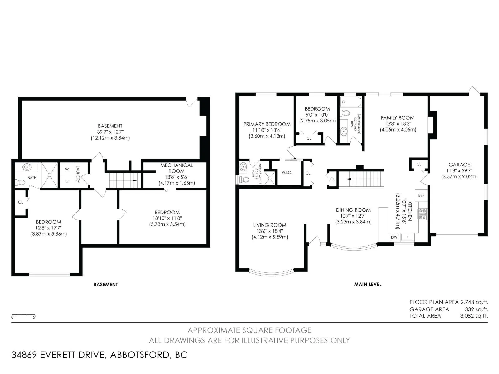 Beautiful family home in the highly desirable Everett Estates neighbourhood of East Abbotsford. This rancher w/ basement offers 4 bedrooms + flex and 3 full baths, with a bright and spacious main floor featuring separate living and family rooms, updated kitchen area, and direct access to the large 450 sq ft patio and private backyard. Basement includes bedroom, rec room, flex room and 600+ sq ft of unfinished space ready for your ideas. Updates include newer roof (2019), hot water tank (2024), exterior paint and cozy wood fireplace. Close to all levels of school, shopping, recreation and parks. Measurements approx, buyer to verify if important. (id:27476)