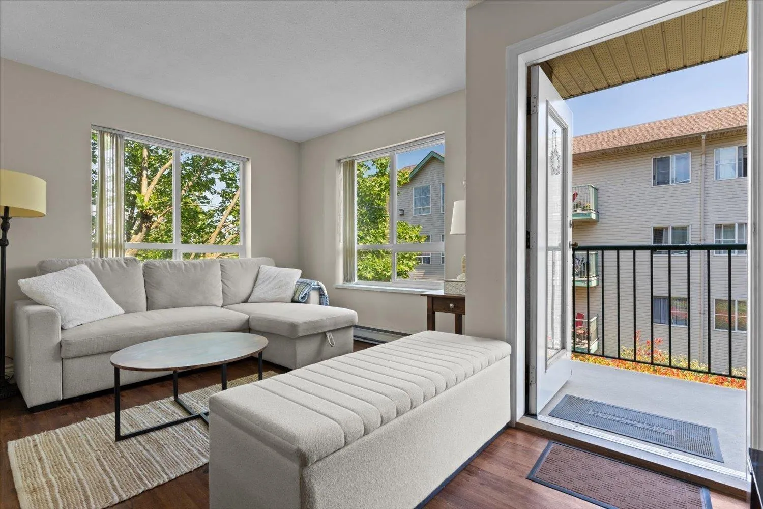 Welcome to this well-maintained 2 Bed, 2 Bath corner unit offering a bright, functional layout in the heart of Abbotsford. Filled with natural light, the open-concept living and dining area creates an inviting space for both everyday living and entertaining. The kitchen provides ample cabinetry and workspace, flowing seamlessly into the main living area. Step out to your sunny private balcony-perfect for morning coffee or relaxing evenings. The spacious primary bedroom features generous closet space and a private ensuite, while the second bedroom and full bath offer flexibility for guests, family, or a home office. A fantastic opportunity for first-time buyers, downsizers, or investors seeking a centrally located home in a desirable community. (id:27476)