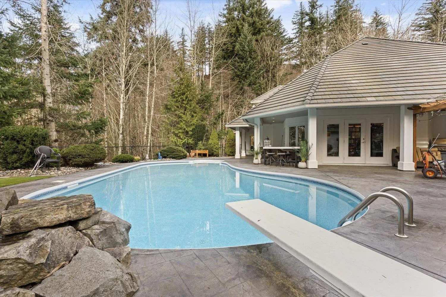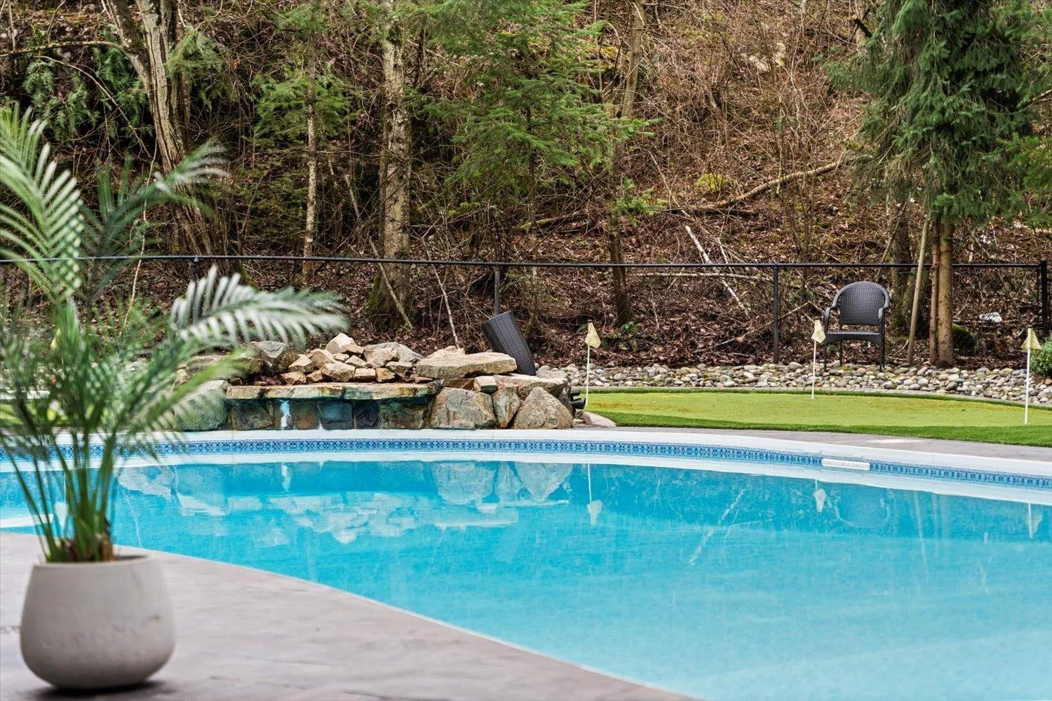 Welcome to 6700 sq ft of exceptional Eagle Mountain living on a serene 0.53-acre estate backing onto greenbelt. This stunning 6 bed, 6 bath home features vaulted ceilings, a gorgeous spiral staircase, walnut hardwood floors, & expansive windows that flood the home with natural light while showcasing your backyard oasis complete with in-ground pool, waterfall, pool house with 2 piece bath & putting green. The gourmet kitchen is a chef's dream with professional grade appliances & a butler's pantry that makes entertaining effortless. Your main floor primary suite offers a spa-inspired sanctuary. Upstairs discover 3 generous bedrooms plus a versatile loft perfect for office or play space. The finished basement truly shines with 9 ft ceilings, 2 additional bedrooms, a media room for movie nights, & a massive flex room ideal for home gym or recreation. Modern upgrades include new furnace, hot water tank & newer A/C. Steps to top schools, parks, and recreation yet perfectly private. Schedule your showing today! (id:27476)