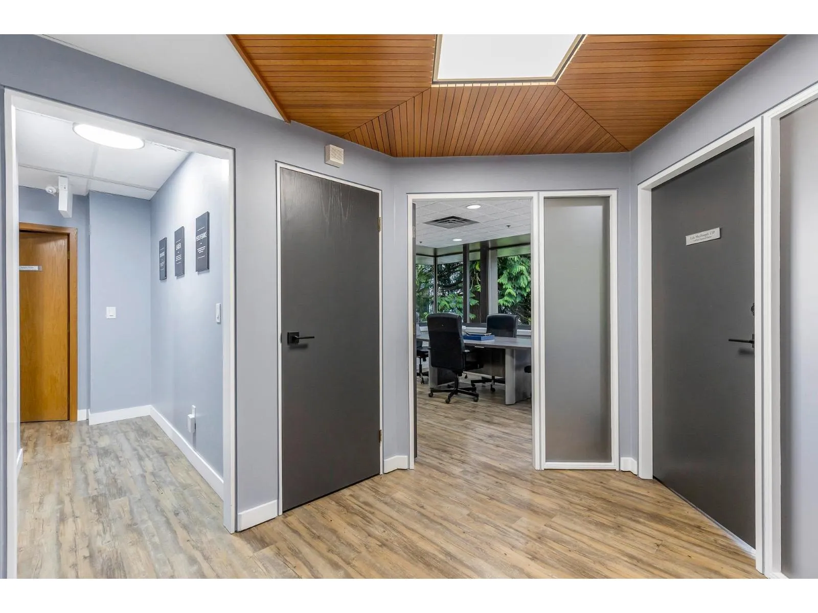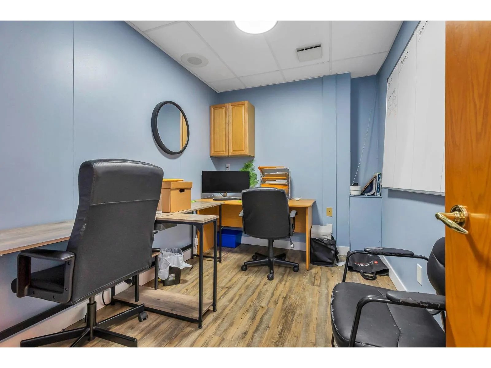 Enjoy this office building's central location in Abbotsford's coveted medical and professional corridor on McCallum Road, with excellent access to Trans-Canada Highway 1 and proximity to the Abbotsford Regional Hospital and Cancer Centre. This office unit is available June 1, 2026 and located on the 2nd floor - walk up only, NO elevator - of this well established building. Inside, large windows provide ample natural light to the boardroom and office on the back of the building, with an updated blue/white color scheme through out and new vinyl plank flooring. In total there are 3 individual offices, very large boardroom, storage room, welcoming reception area and a kitchenette plus single washroom (not handicapped). This location is ideal for a variety of medical, legal, accounting, or other professional services! Size: 1,288 SF Base Rent: $22.00/SF Additional Rent: $13.80/SF (id:27476)