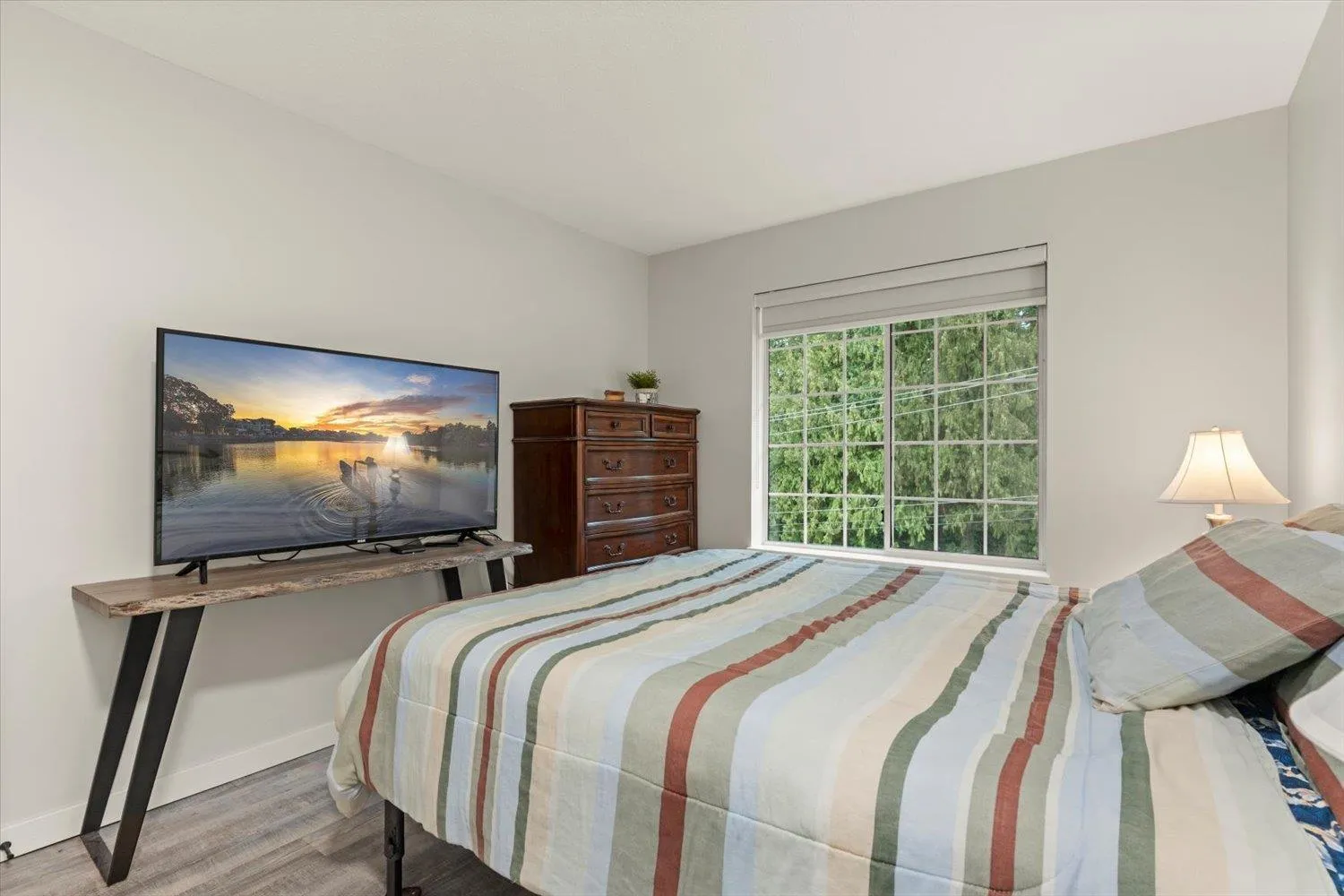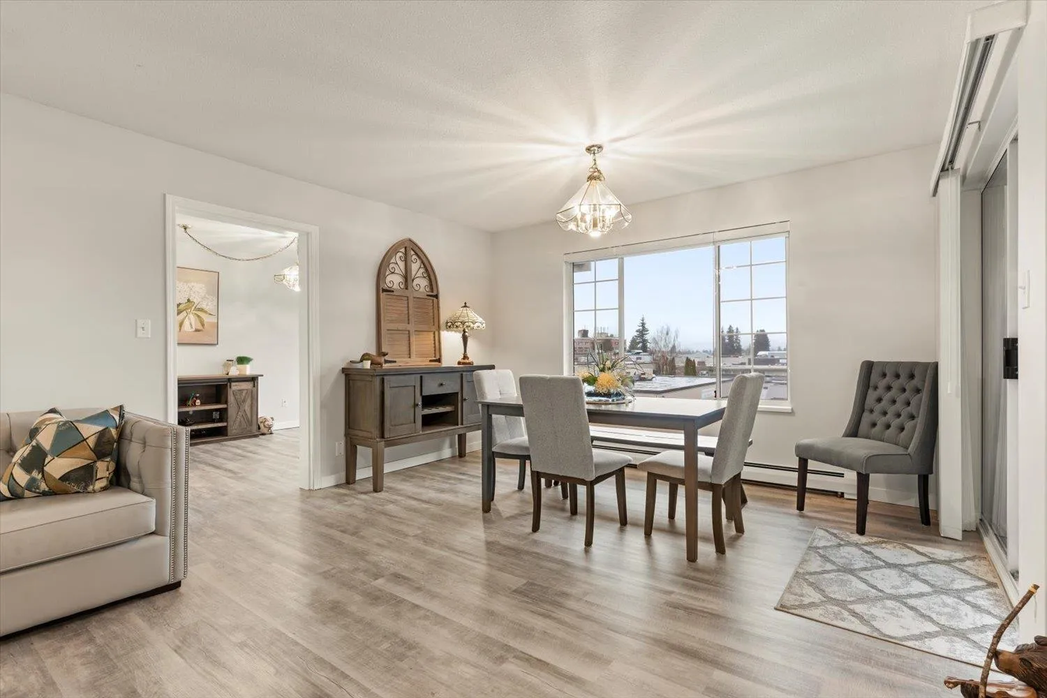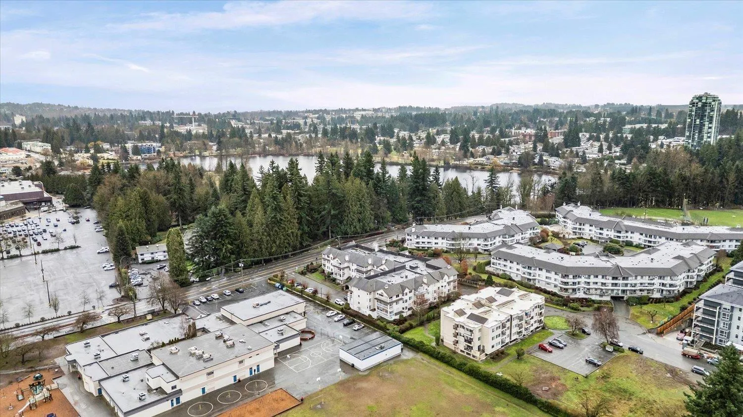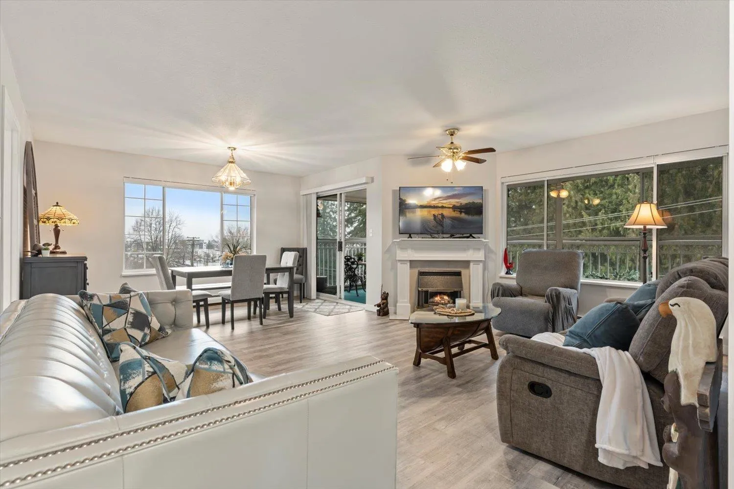 Lakewood Gardens, an unbeatable 55+ location right across from the Seven oaks mall and the lake. This very bright, top floor end unit offers 1,251 sq ft of spacious living with beautiful park and mountain views from every room, and the enclosed deck. Featuring 2 bedrooms and 2 bathrooms, the layout is open and inviting with neutral paint throughout and tasteful renovations that make it move-in ready. The generously sized laundry room even has space for an extra fridge or freezer. Great sized storage locker on the same floor. Set in a well managed complex with plenty of visitor parking and exceptional amenities: a workshop, clubhouse with kitchen, library, gym, exercise area, and guest suite. Everything you need, both inside your home and within the community. (id:27476)