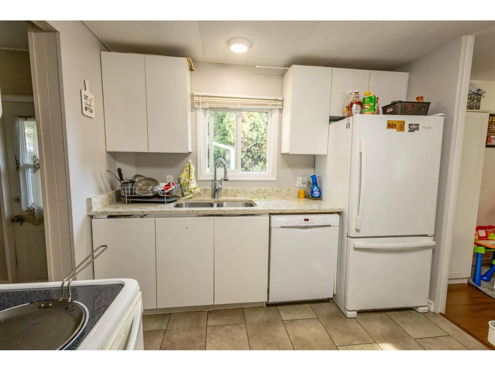 First-time buyers, downsizers, or investors-don't miss this updated 3 bed, 2 bath mobile home on its own FREEHOLD lot in Abbotsford, surrounded by detached single-family homes. Bright open layout with a white kitchen, newer appliances, plenty of storage, primary with ensuite + 4pc main bath. Enjoy a fenced yard with gazebo, mature landscaping, and 2 sheds. Minutes to shopping, dining, parks, and recreation. Future potential: buyer to verify zoning, permits, and any redevelopment/build options with the City of Abbotsford. (id:27476)